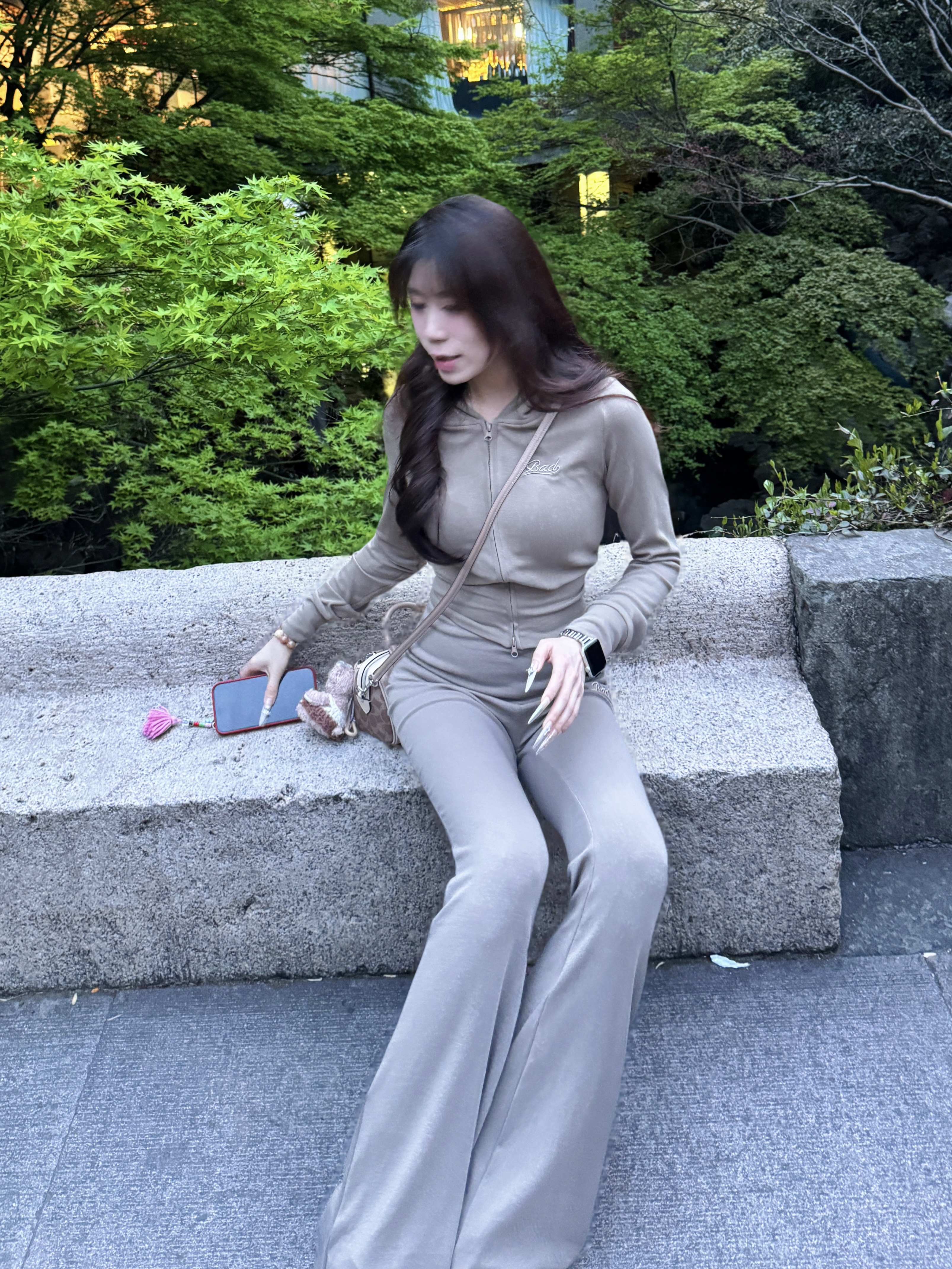 不费力穿搭!! 这套卡其休闲套装 就是最好的证明 简约的设计 高级的质感 修身短上衣+高腰喇叭裤 黄金比例穿搭公式 谁穿谁好看 同色系搭配 干净又显气质 不管什么身材都能轻松驾驭 连帽设计 增加休闲感 拉链开合 穿脱方便还能调节风格 搭配银色耳饰 斜挎小包 细节感满满 精致度拉满 在绿意盎然的户外 整个人都透着松弛又随性的美 不用刻意摆拍 每一张都很出片 这就是穿搭的最高境界 舒适 好看 又有氛围...