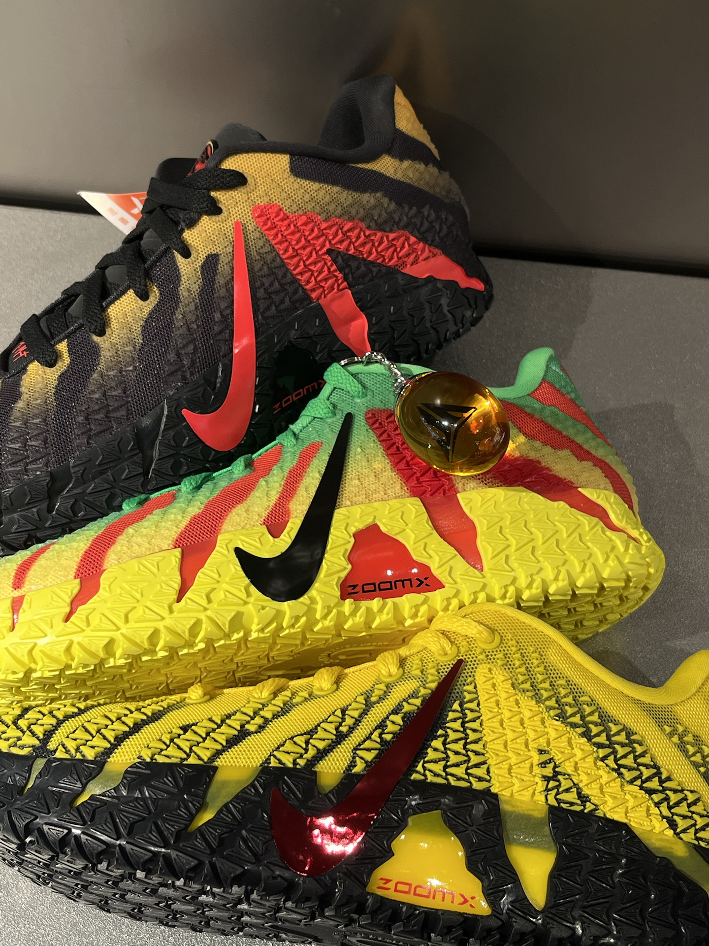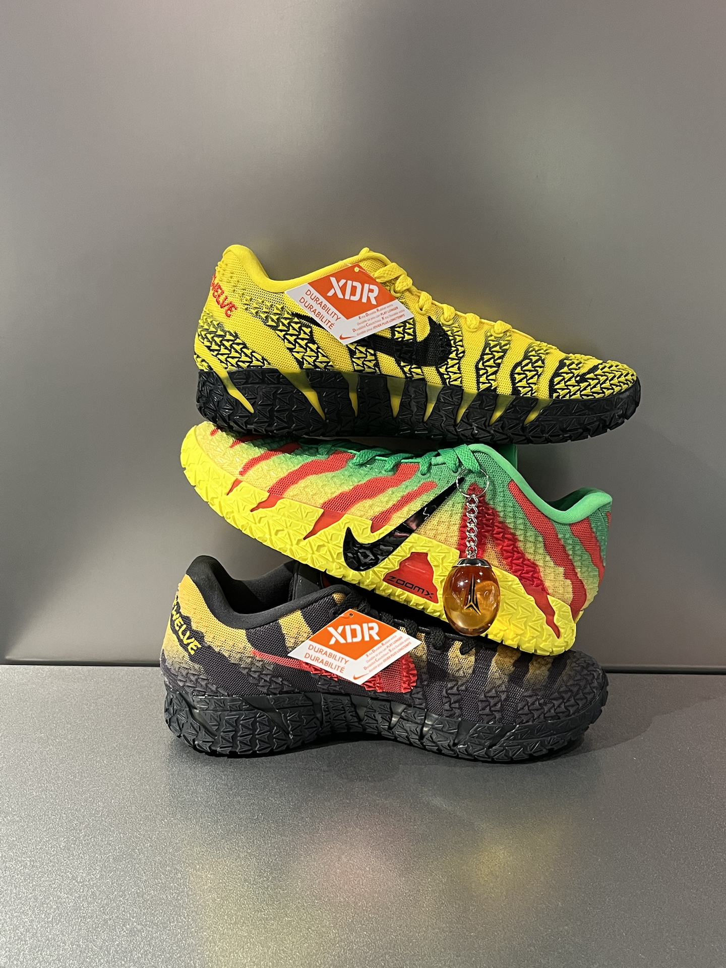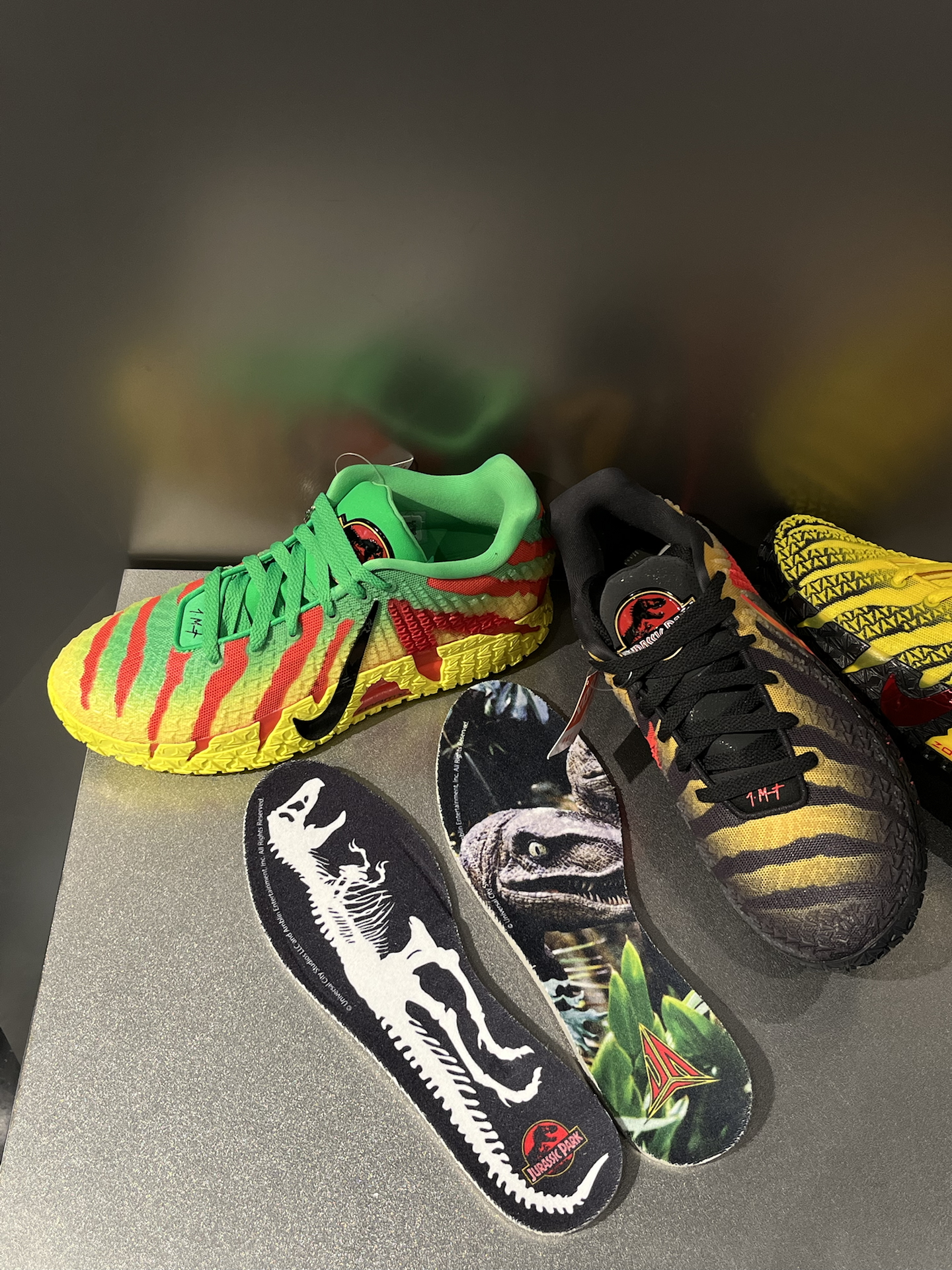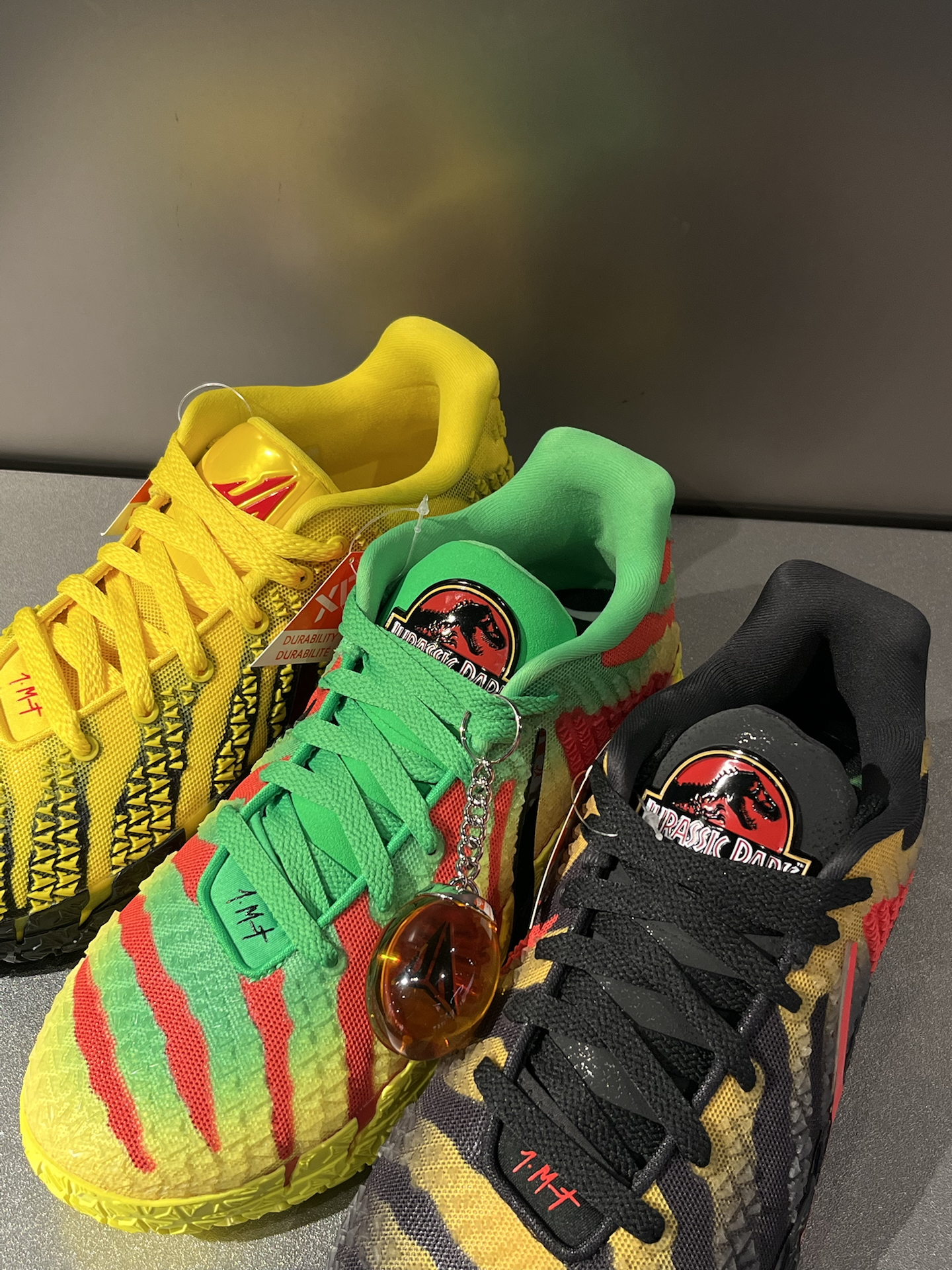 ja3都要收官了,居然还更了四个配色,一下子把夏日多巴胺拉满 3双侏罗纪公园联名,黑黄、黄绿渐变自带亮眼多巴胺感,鞋舌鞋垫全是恐龙细节,还有个“万恶之源”小琥珀挂件,影迷细节控狂喜 李小龙配色更是很香,亮黄色超吸睛,抓痕设计,又酷又有辨识度 重点这三双球鞋,都用了XDR橡胶底,学生党打外场也很耐造,颜值、实战双在线