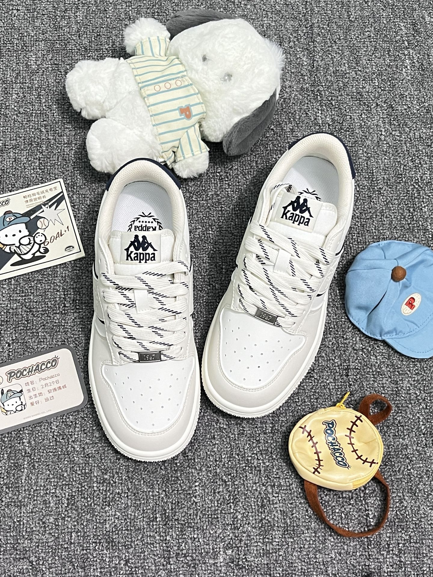 挖到Kappa这双奶油米白+藏青撞色板鞋真的美哭😭 温柔到骨子里的燕麦奶白调,完全不挑皮,鞋后跟藏青小细节超有韩系氛围感 软乎乎的皮质超好打理,脏了擦一擦就干净,日常穿巨舒服 厚底悄悄增高还不显笨重,搭牛仔裤、卫裤、小裙子都巨百搭,学生党通勤党闭眼冲!