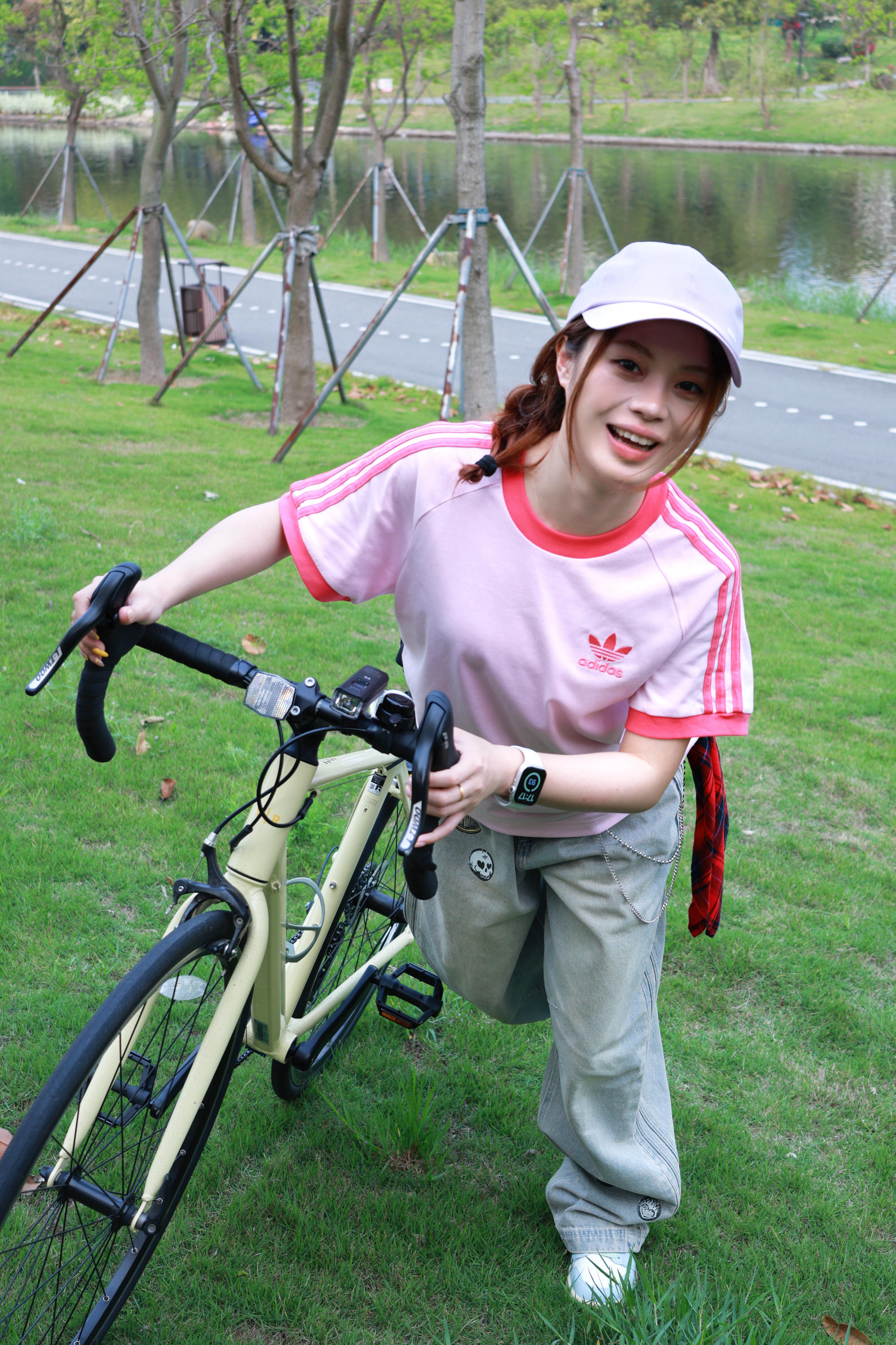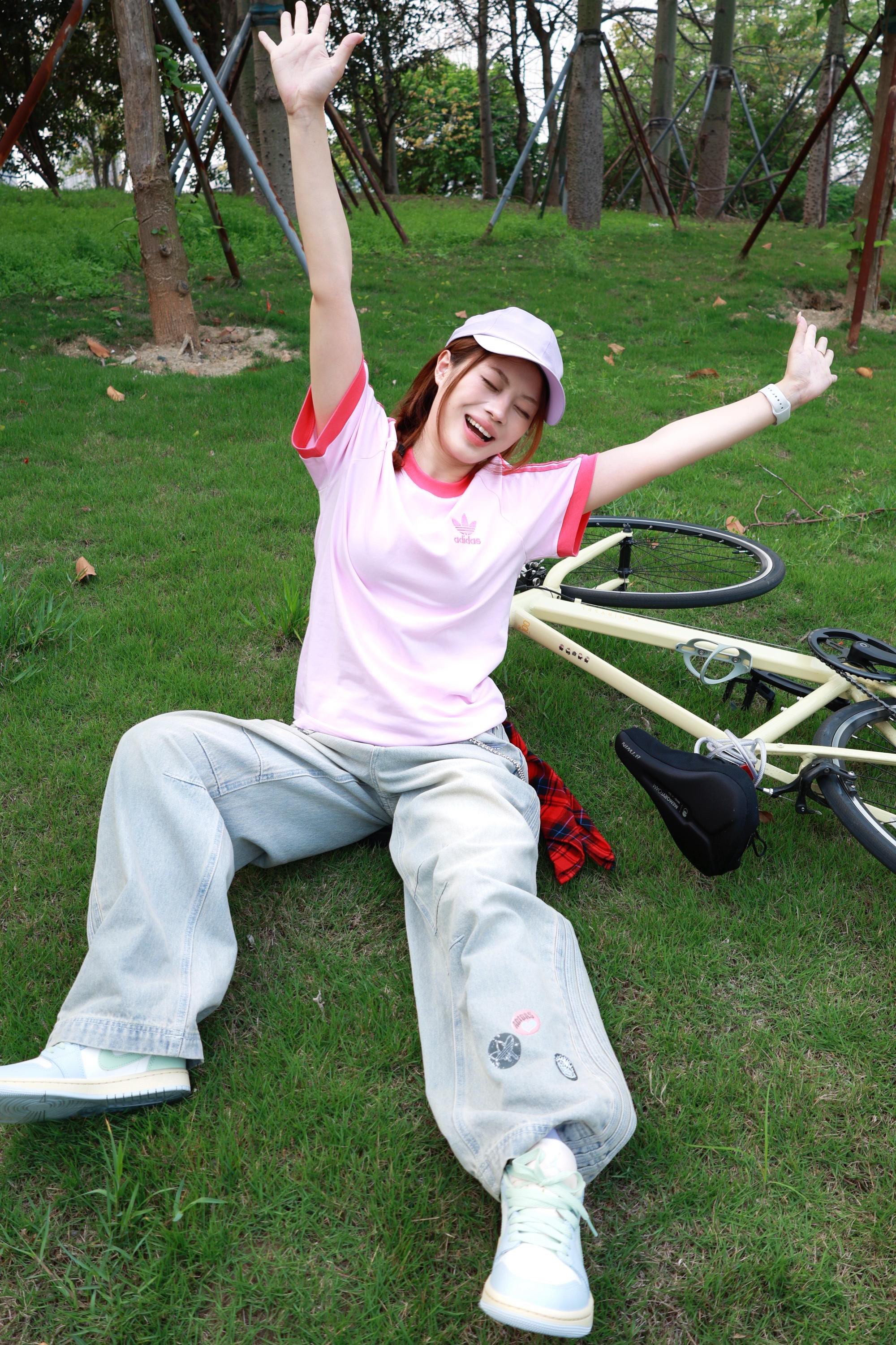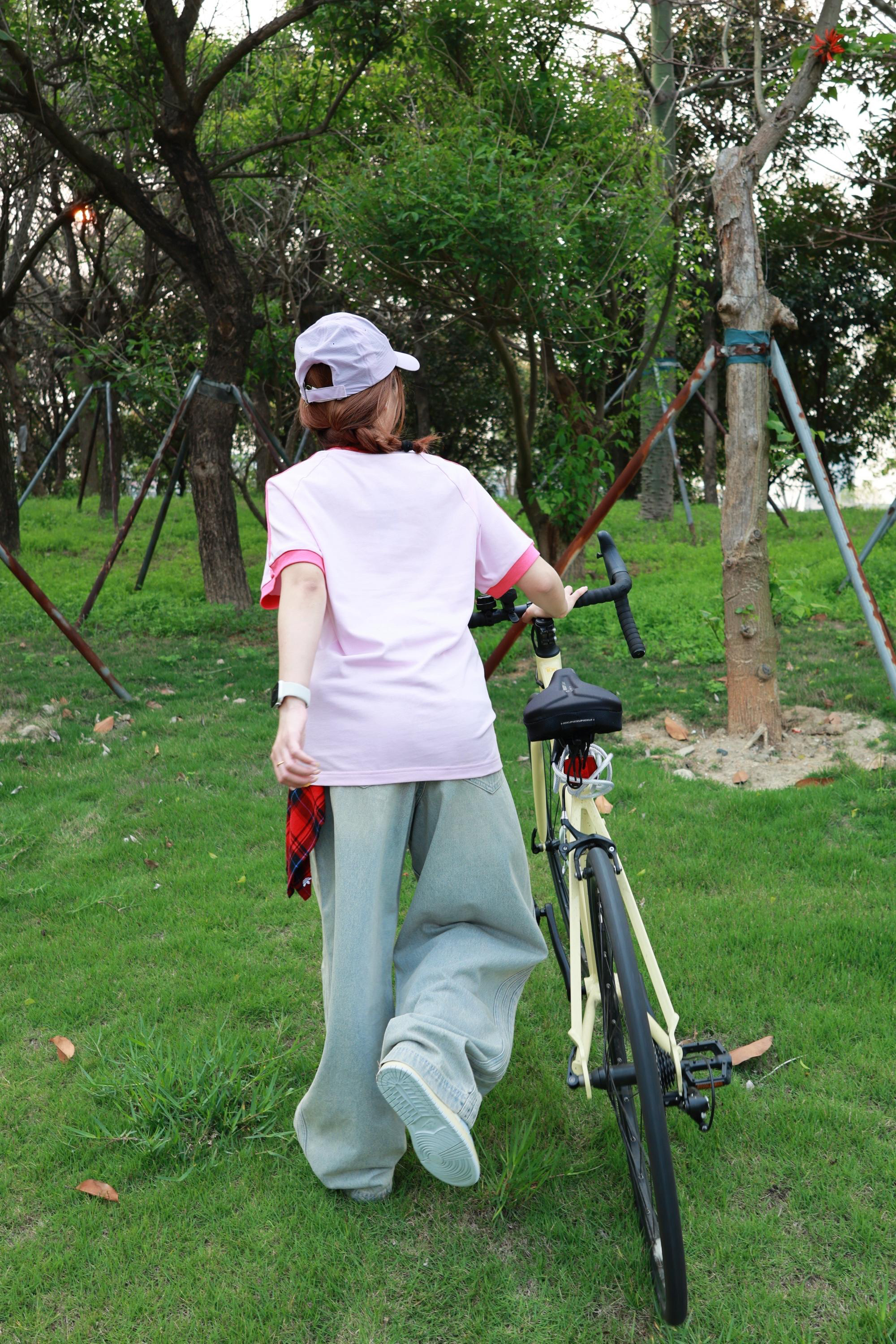 哇塞 哇塞 春天原来真的是香甜味的诶 谁会拒绝一套充满活力又甜美的骑行穿搭 🍓上衣:草莓粉宽松T恤 嫩嘟嘟的粉色底真的不要太显嫩噜 玫红色三条杠条纹设计元气值直接拉满 🍓裤子:阔腿拖地牛仔裤 看似肥大的裤子 一上身就像魔法一样 瞬间让腿变得又直又长 垂感巨好 完全不影响骑行速度~ 🍓鞋子:多巴胺板鞋 薄荷绿拼接板鞋完全是为夏天而生 充满生命力又百搭的颜色 搭配甜酷上衣 慵懒随性又不刻意的美