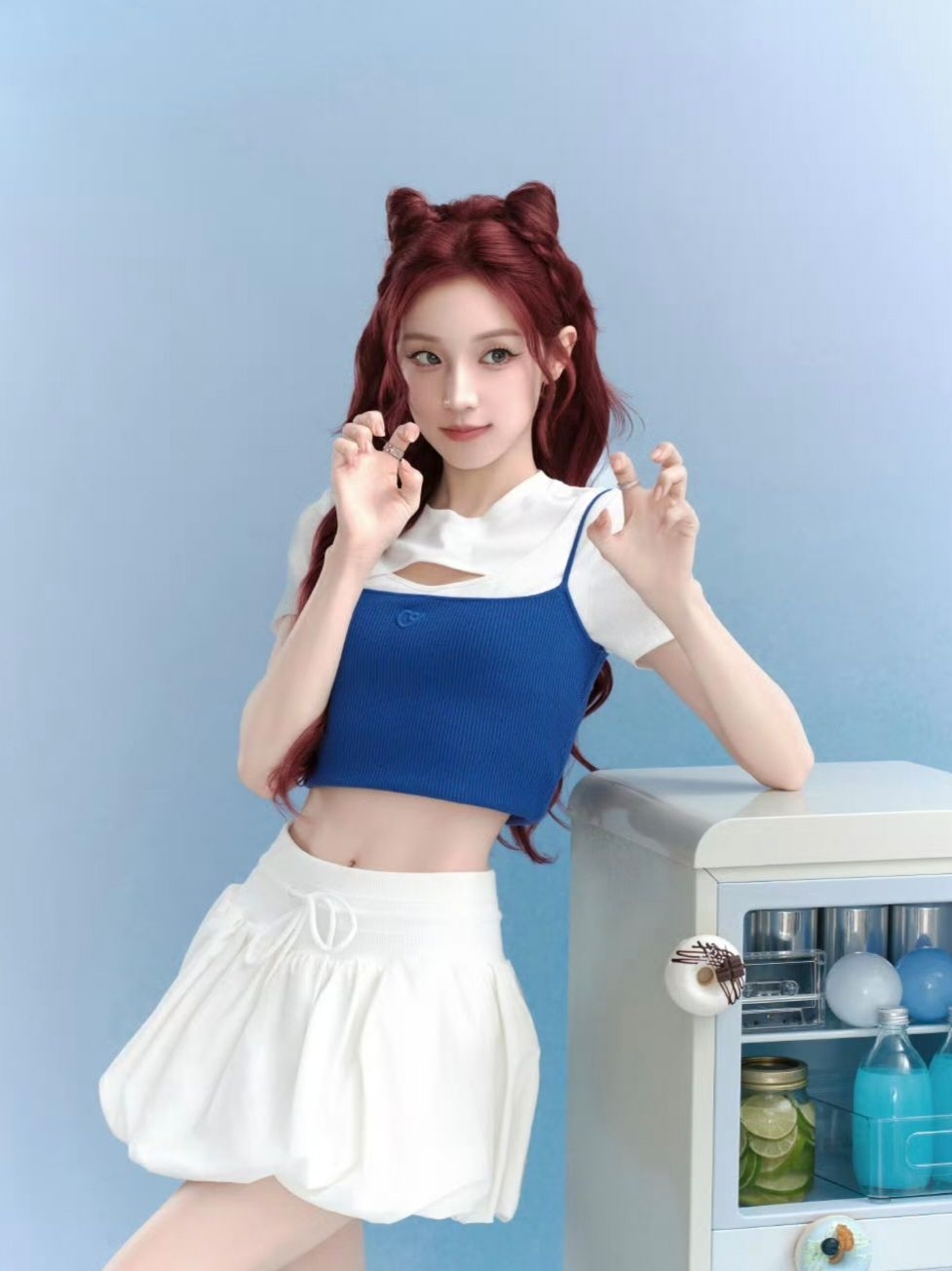 今日份OOTD:克莱因蓝吊带小白裙。 清爽、灵动、自带高光✨ 蓝白撞色是永远的神! 灵动卷发搭配清爽造型, 这波颜值直接把我拿捏住了~