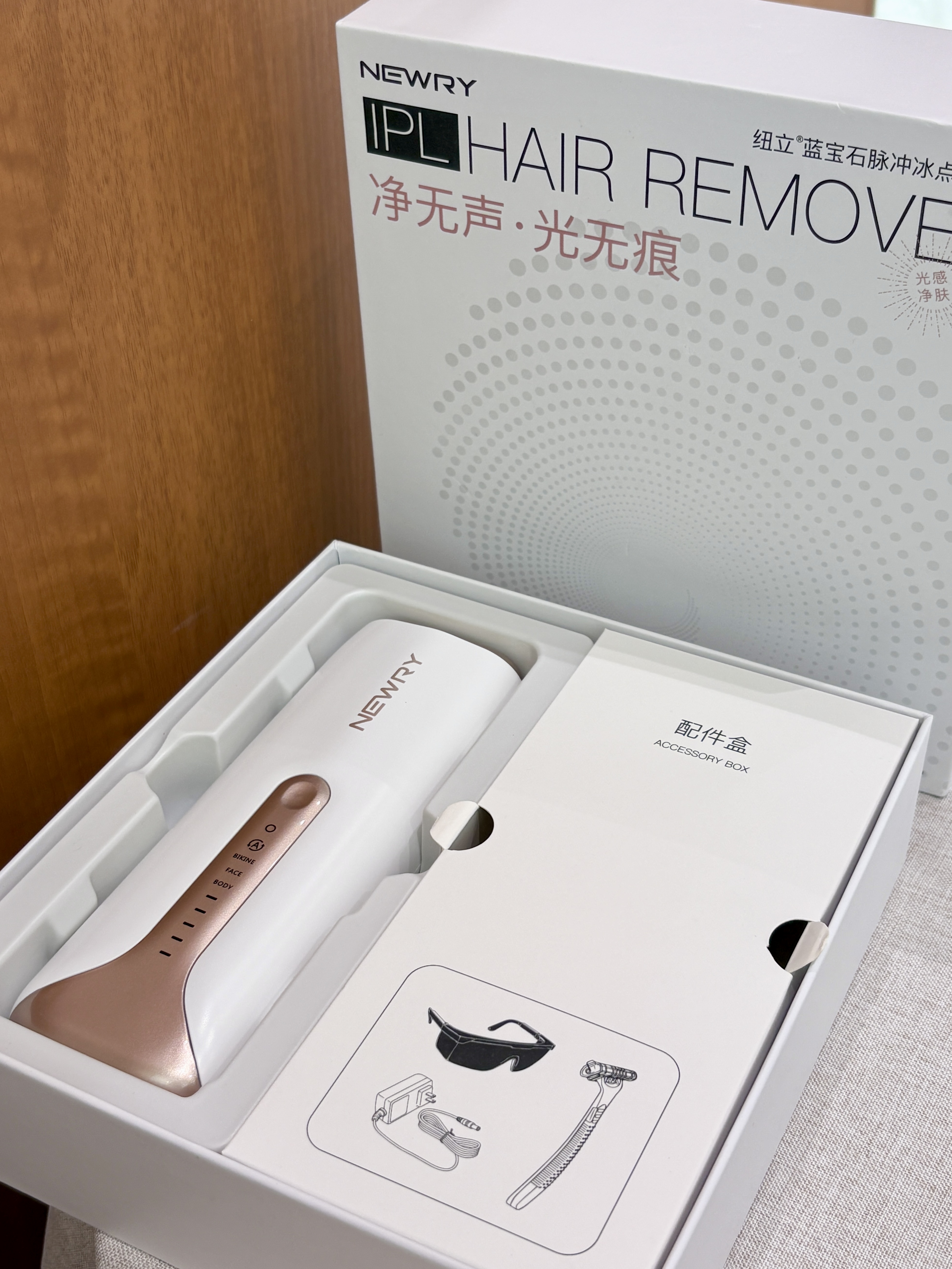 马上又到了露胳膊露腿的季节了 精致女孩也要做好身体管理呀 我用的是纽立家的蓝宝石冰点脱毛仪啦 有多个模式可以按需调节 就很方便✨ 蓝宝石冰点的 脱毛时冰冰凉凉的对皮肤友好 脱的很干净 脱完也没有不适感~ 弄完之后,整个皮肤都光滑了 春天真的少不了这样实用的礼物啊!🥰