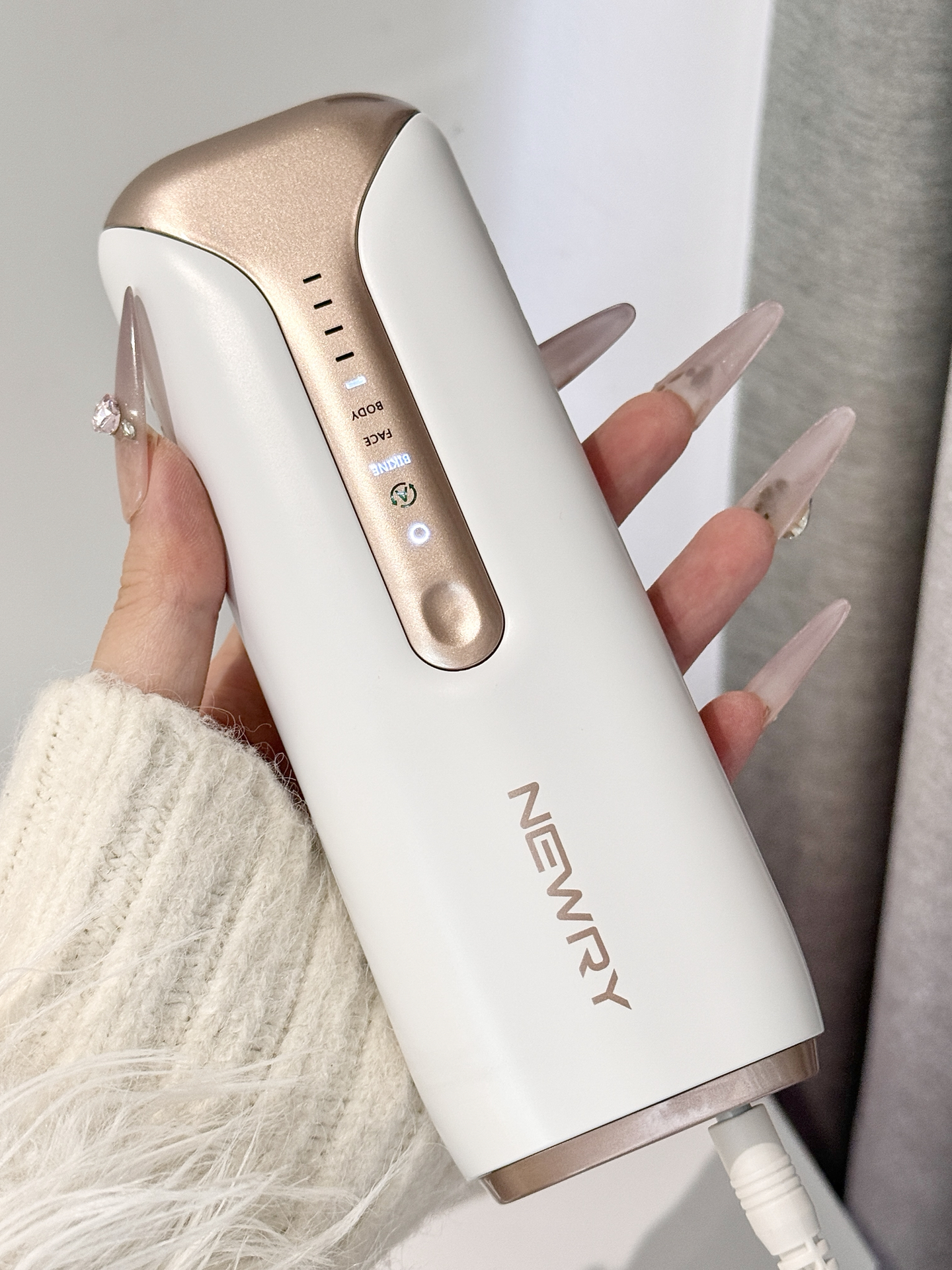 我发现这个春日刚需好物啦,颜值简约大气,拿在手里质感不错。我试了试,有五个档位调节,还分不同身体部位模式,贴在皮肤上冰冰凉凉的没痛感,用完皮肤摸着光滑不少。就是必须插电用,没法随身带着,用的时候得记得戴上配套墨镜,挺适合送给闺蜜当开春礼物的🥰