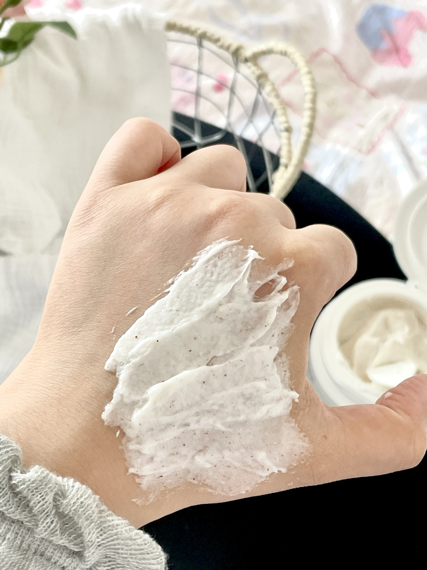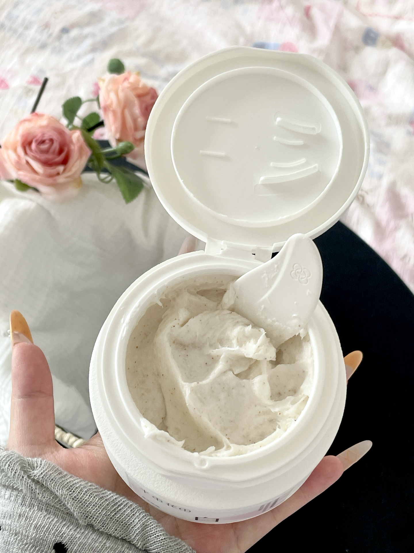 为了夏天的小裙子入的磨砂膏🥰,质地像冰淇淋一样软fufu,含4%烟酰胺,搭配沐浴刷用,角质都被带走了,洗完皮肤嫩嫩的还有淡香🥀,不过用量得控制不然有点费,坚持用真的透亮不少!