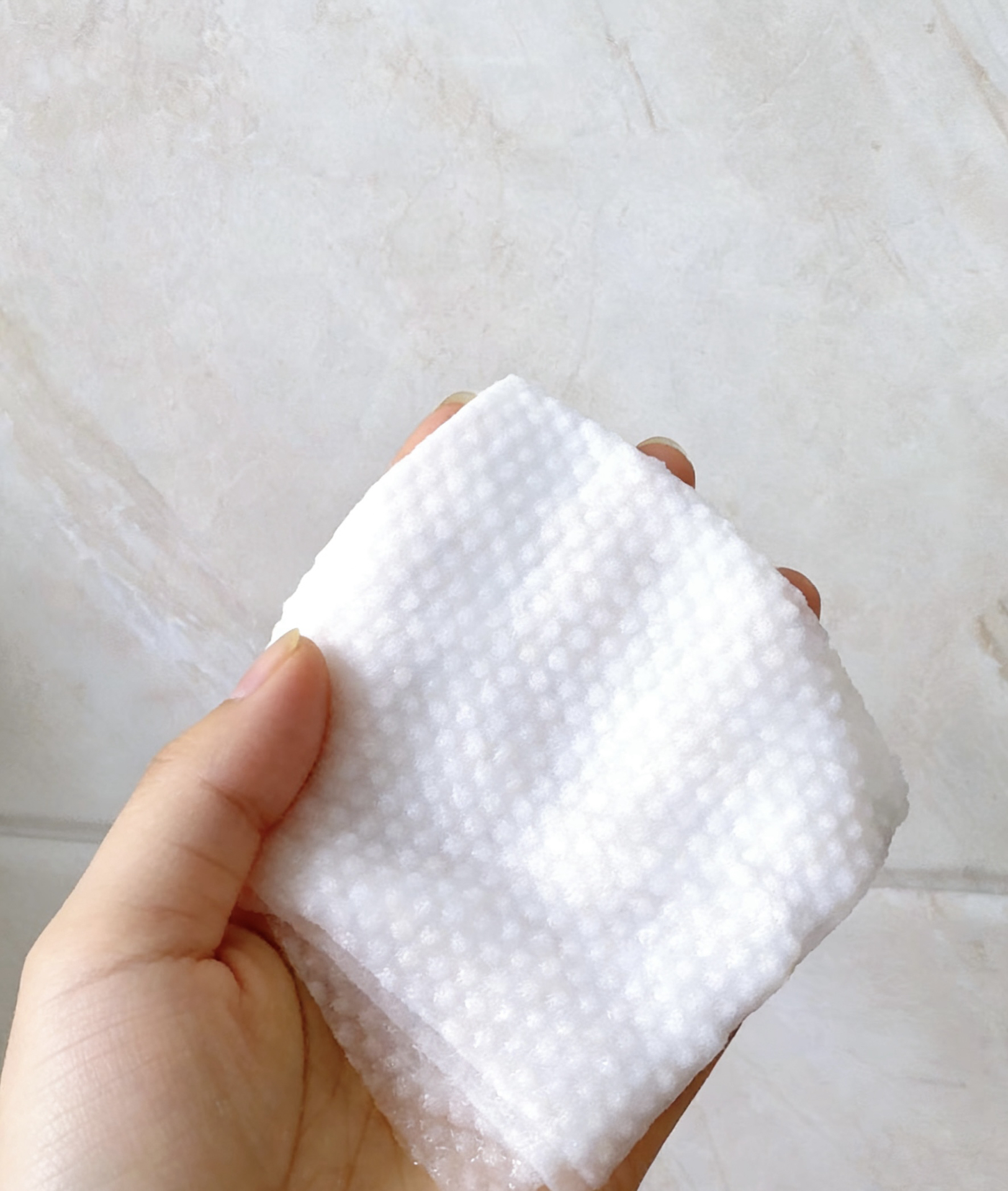 我把它挂在浴室,洗完脸随手抽一张,20×20cm够大,一张就能包住全脸,水珠秒吸干。珍珠纹软乎乎的但带点摩擦力,擦T区出油多的地方也不泛红。我总剪成两半,一半擦脸一半擦洗手台,完全不掉絮不留屑。200抽一袋,家里俩娃每天洗洗涮涮,能撑一个半月,性价比真的看得见!就是包装有点大,小浴室挂着稍占地方😅