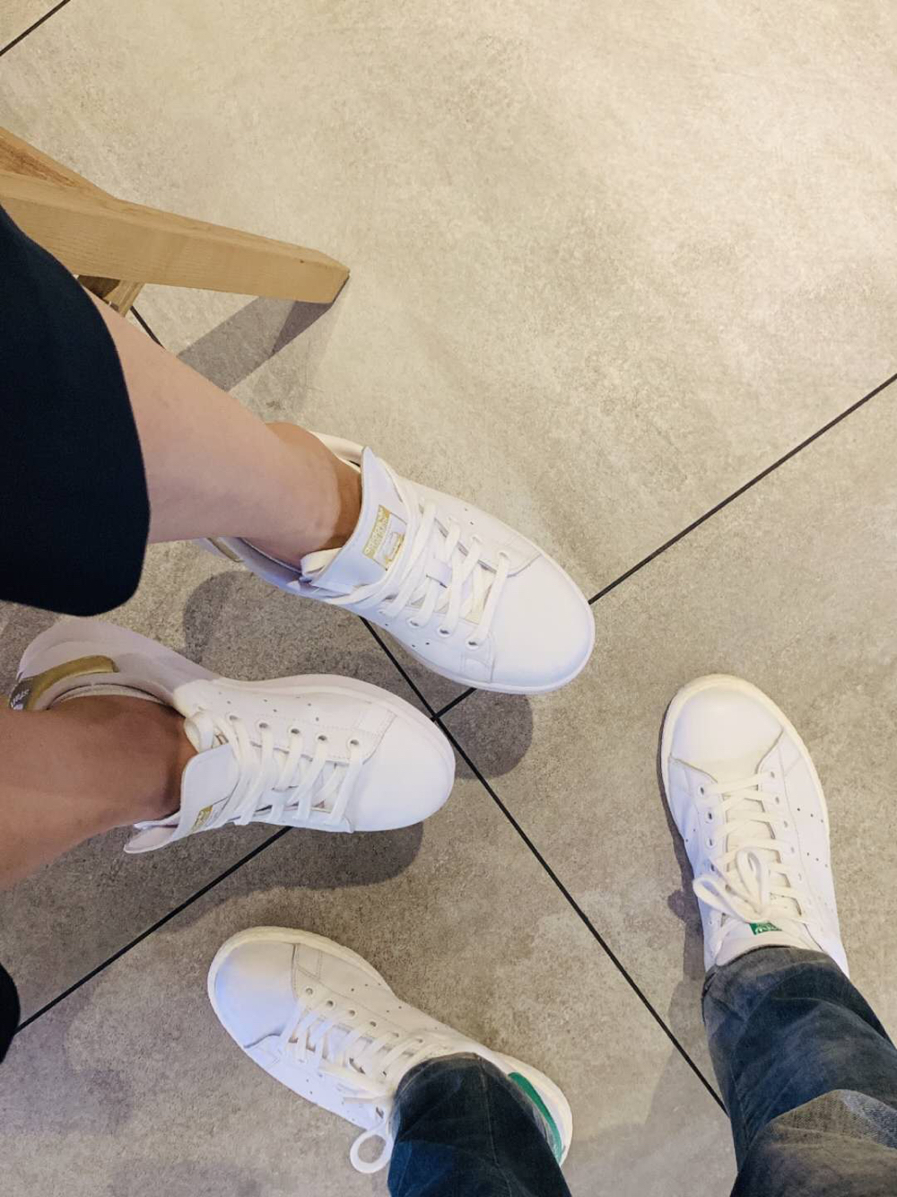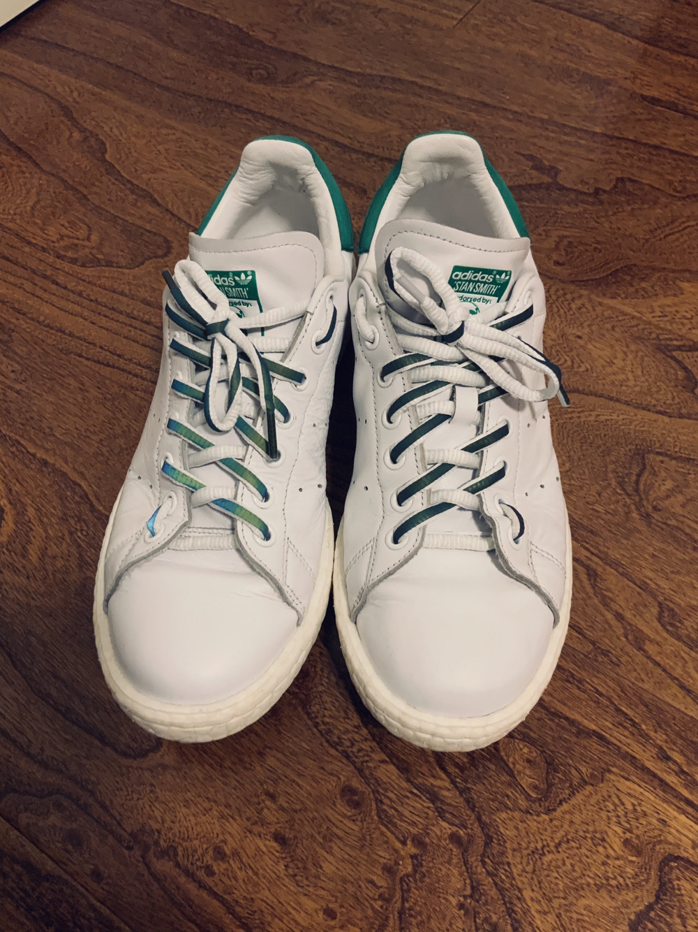 这双是boost底的,比常规软很多,走路脚掌弯曲很舒服,附上一张前女友的金标史密斯。