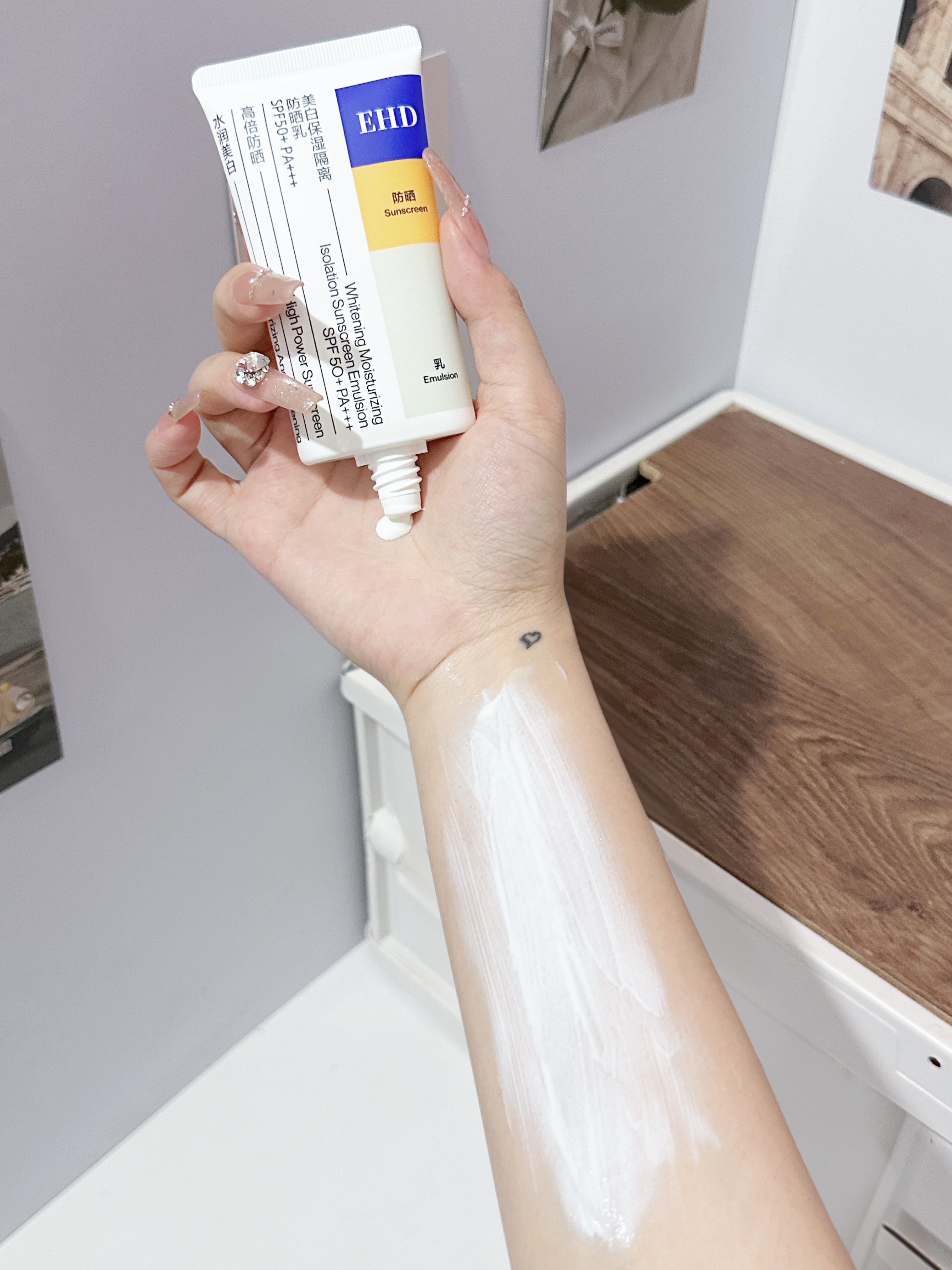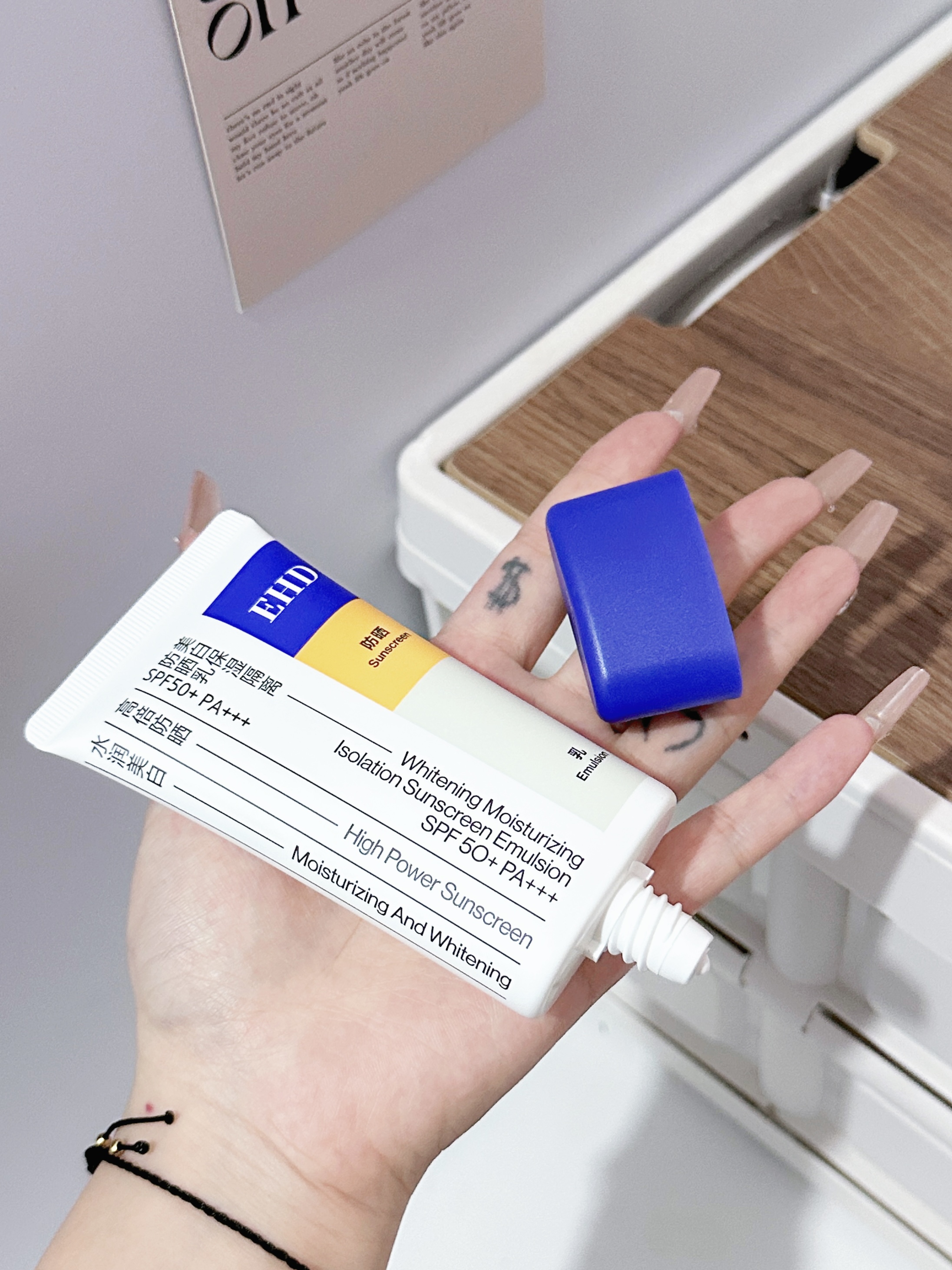 谁懂夏天紫外线强的痛苦 一天下来脸部不仅晒黑 还容易晒红晒伤整张脸火辣辣的疼 于是我换了这款EHD防晒乳 它的质地像乳液一样水润 延展性很好 上脸成膜快清爽又轻薄 作为油痘肌的我来说用起来也不粘腻 夏天来用也不会闷痘难受 肤感真的👍 而且也不会假白 这款上脸是那种微微提亮的自然感 素颜单涂它都会显得气色很好 SPF50+ PA+++高倍防晒 日常通勤 出去旅游使用都够够的 像紫外线强的海边城市用也...