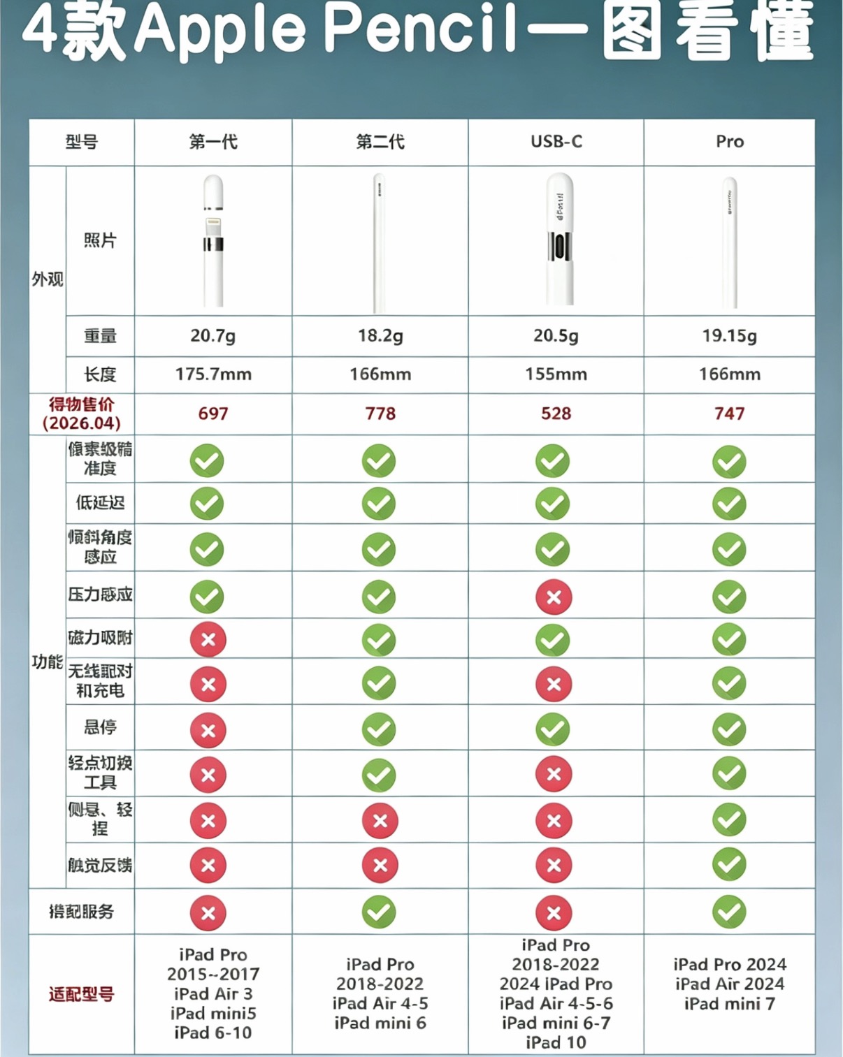 【Apple Pencil怎么选❓一图看懂4款对比】,由用户 Su_1023_ 分享,来自安徽。这是一篇来自识货社区的真实用户分享笔记。