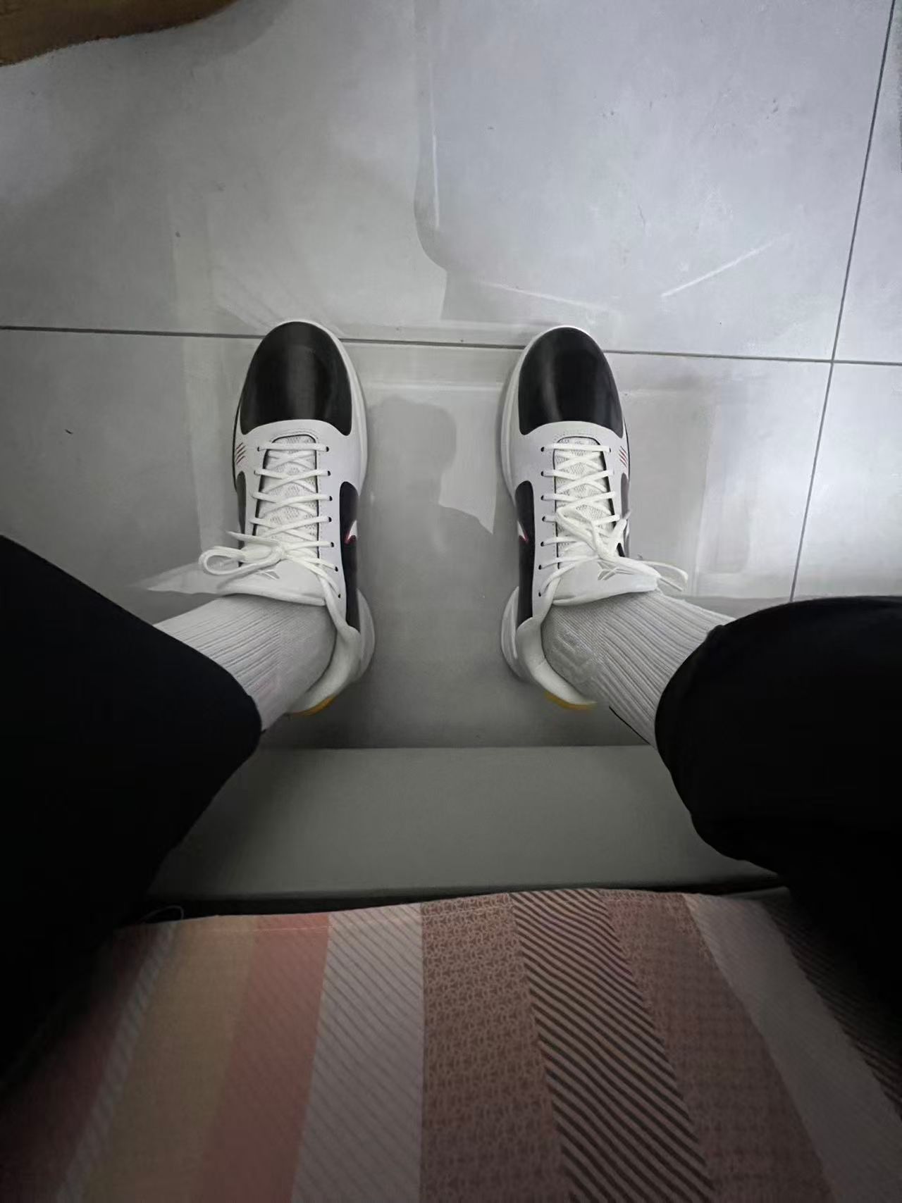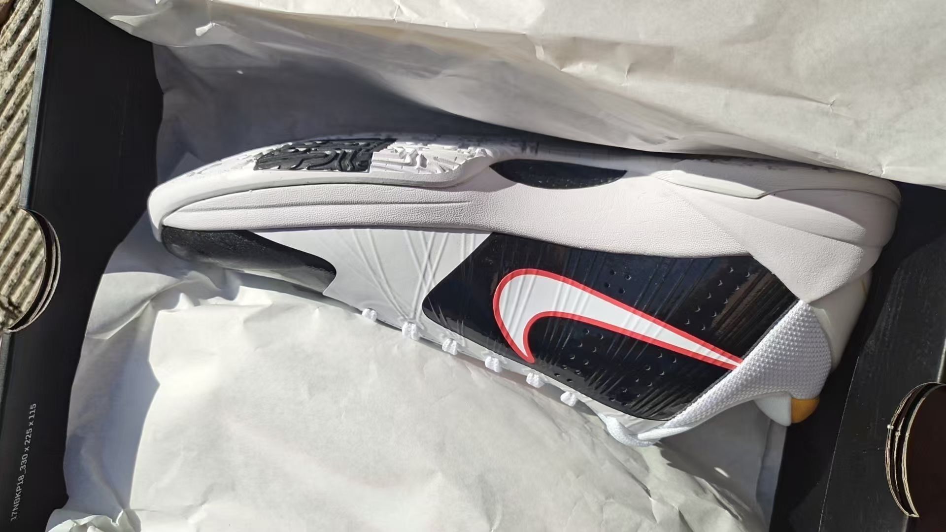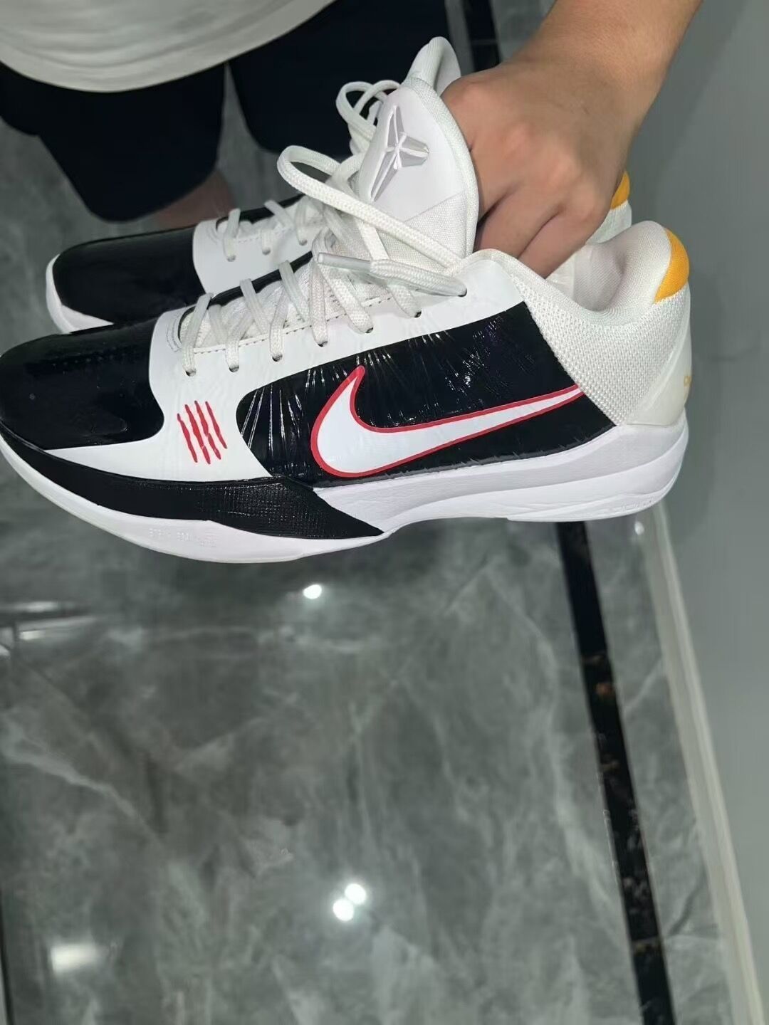 这双Kobe 5 Protro李小龙Alt黑白配色,真的是颜值与实力兼备。黑白配色经典低调,鞋身的红色龙爪痕设计辨识度拉满,日常搭配牛仔裤、运动裤都很百搭。上脚非常轻,低帮设计灵活不束缚。鞋面包裹性极强,系紧鞋带后完全贴合脚面,变向时支撑感拉满。前掌Zoom气垫反馈很足,起跳落地缓震舒适,搭配碳板抗扭转,突破急停都稳如泰山。鞋底人字纹抓地力出色,室内外场均不打滑 。唯一小缺点是新鞋鞋面偏硬,需要几...