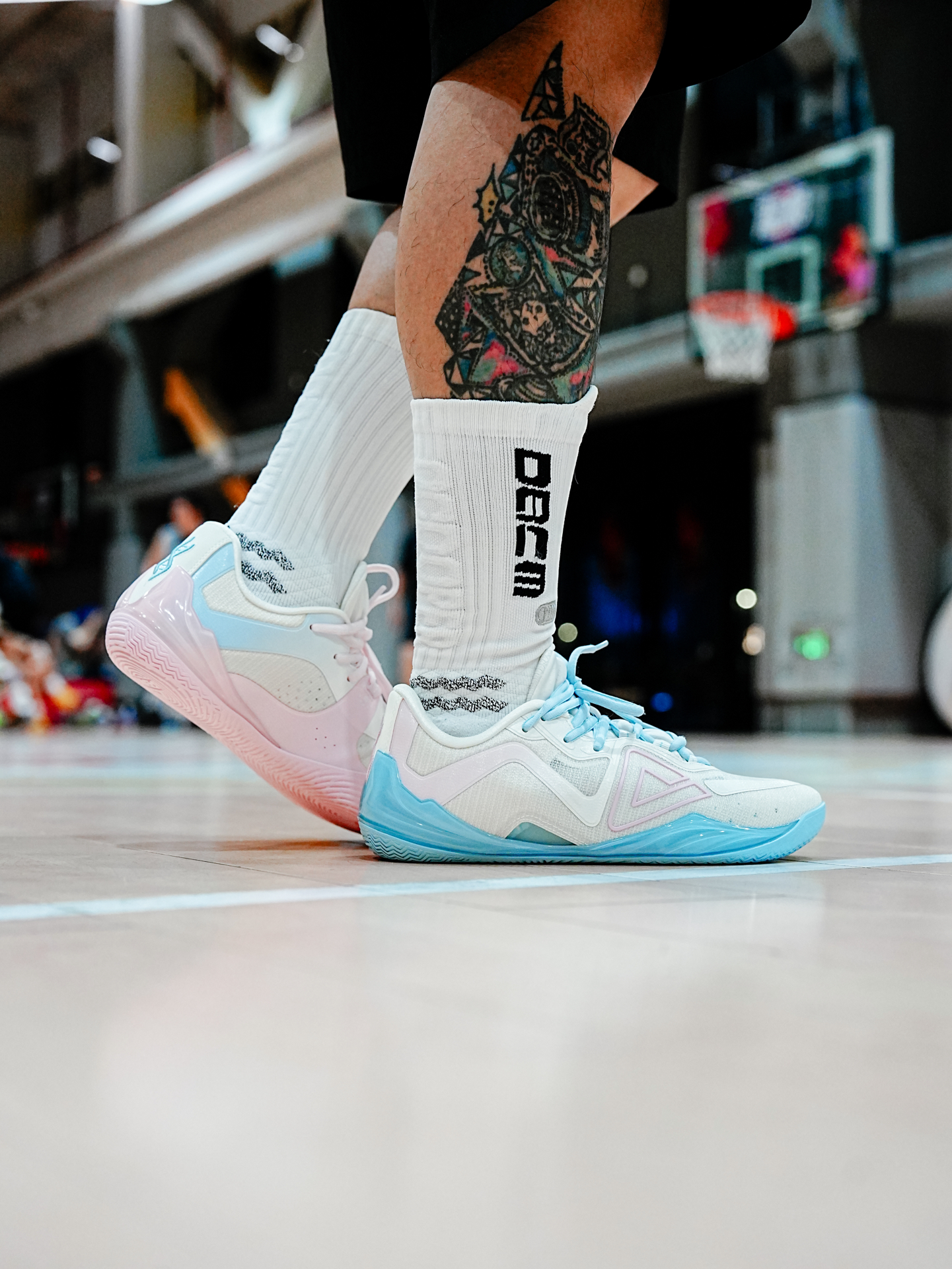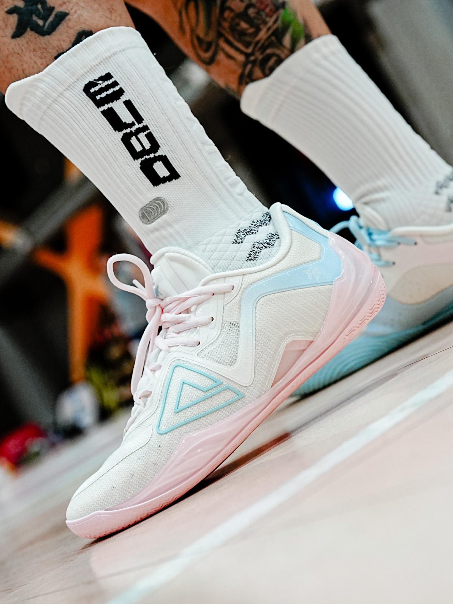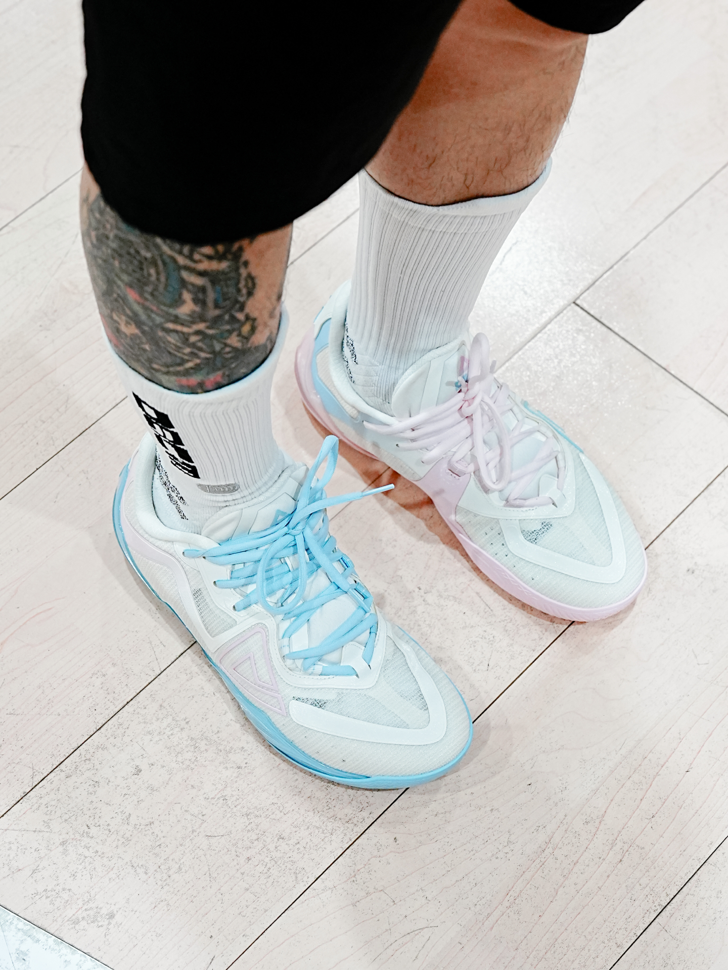 匹克无双是我觉得近年少有的宽脚薄底快靴代表,最近又有一个全新的蓝粉鸳鸯配色推出,上脚真的特别骚气,撞色的设计也很有辨识度。 这个鞋型我也穿着实战很多次了,抽拉式鞋垫中底,贴合度很高,缓震极限也算不错,穿起来就很想突破,是一双凌厉的突破好鞋。 码数方面,按照匹克正常码数入,其他牌子穿什么码这个买小半码到一码