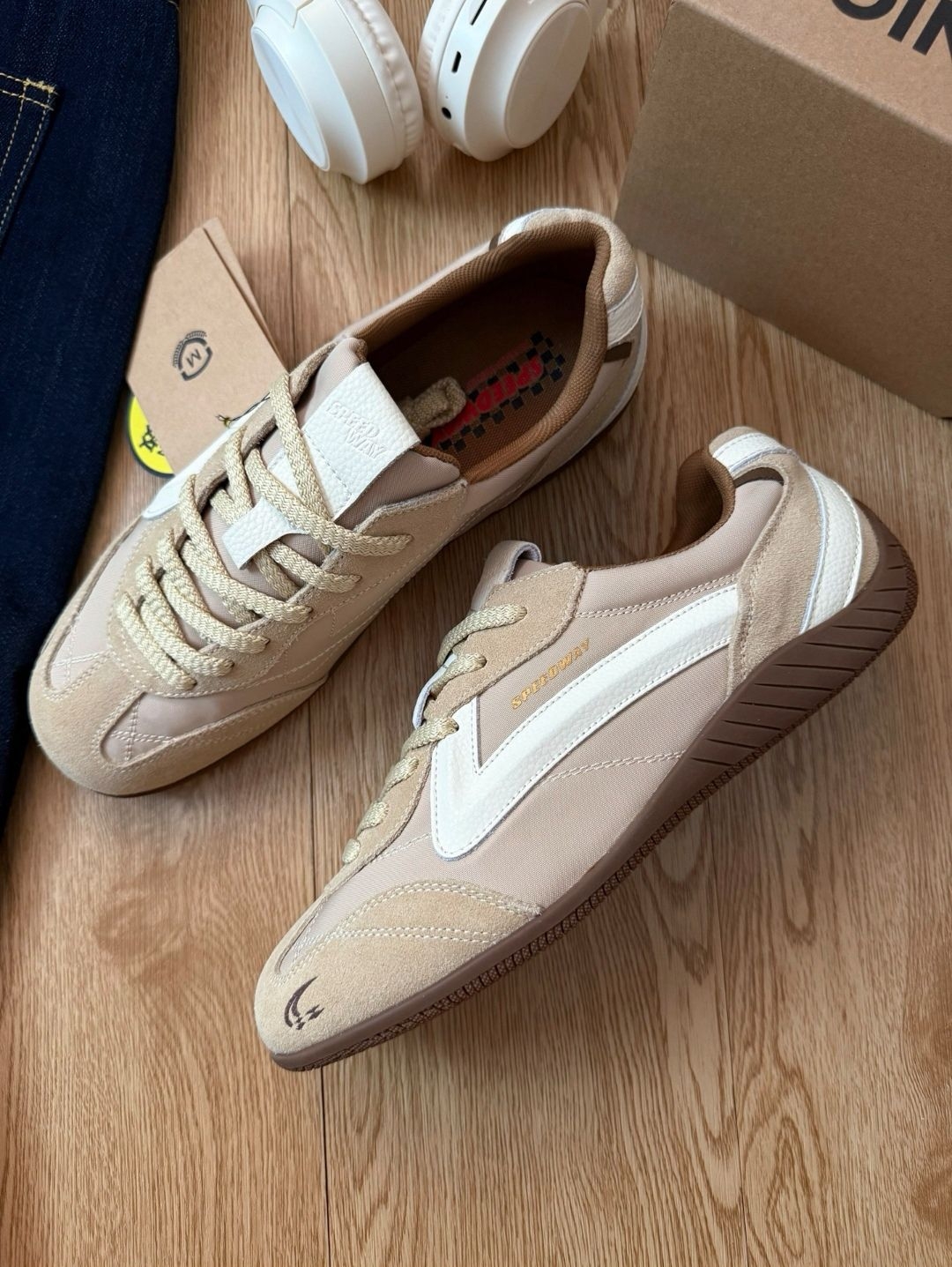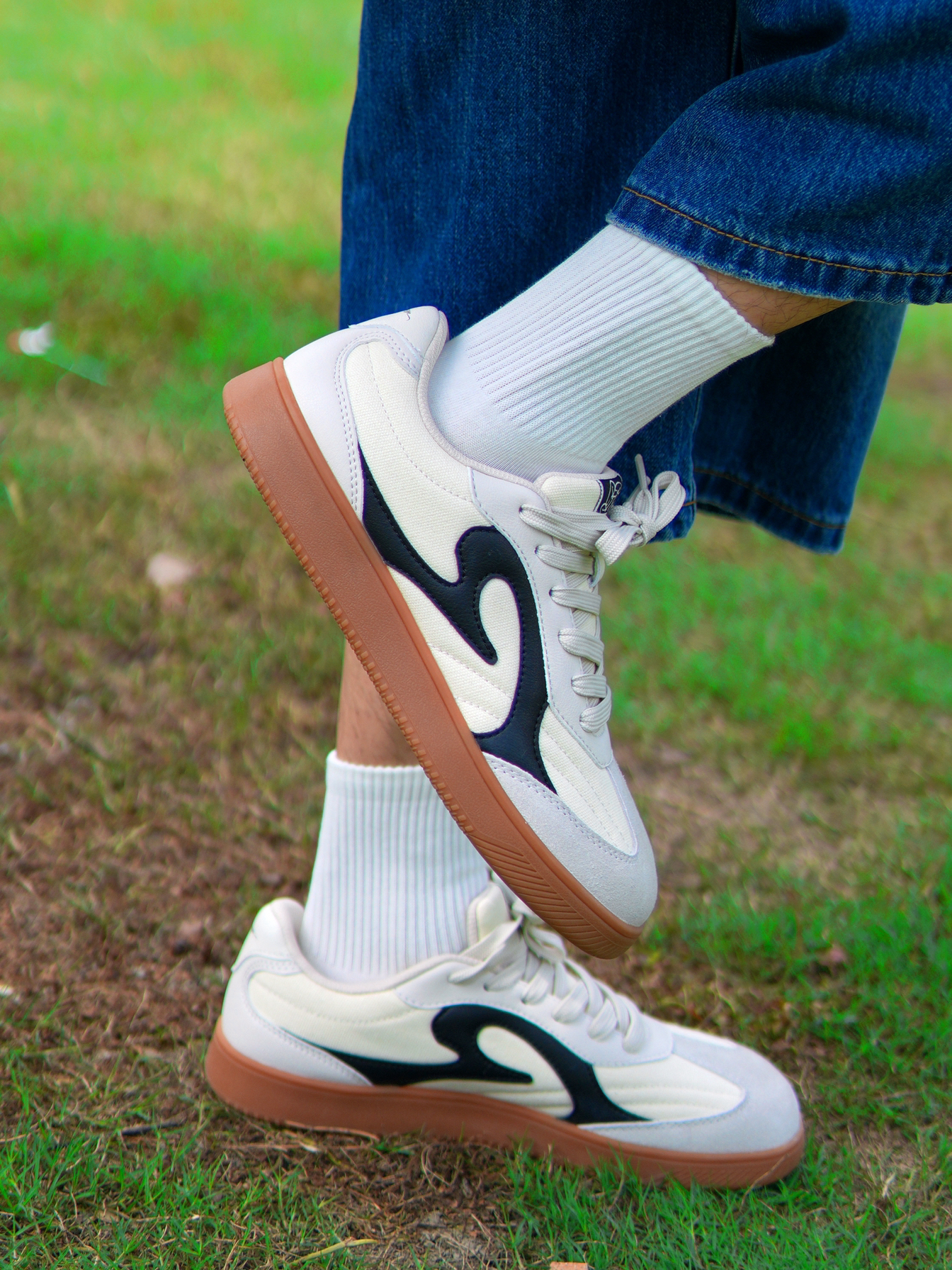 春天的穿搭灵魂,全靠这双德训鞋给的✨ 米白拼黑的配色真的太戳我了! 复古感拉满,麂皮+帆布的材质,质感绝绝子 生胶大底软乎乎的,上脚巨显腿细, 搭什么风格都不违和,真·百搭王者! 今天这套复古街头风直接被它盘活了 红白条外套+迷彩七分裤,再配白袜子 一整个美式复古那味儿就出来了😭 走路完全不磨脚,暴走一天都不累 日常通勤、出街玩、拍照都巨上镜 真的是鞋柜里永远不会闲置的神仙鞋子! #春日鞋柜c...