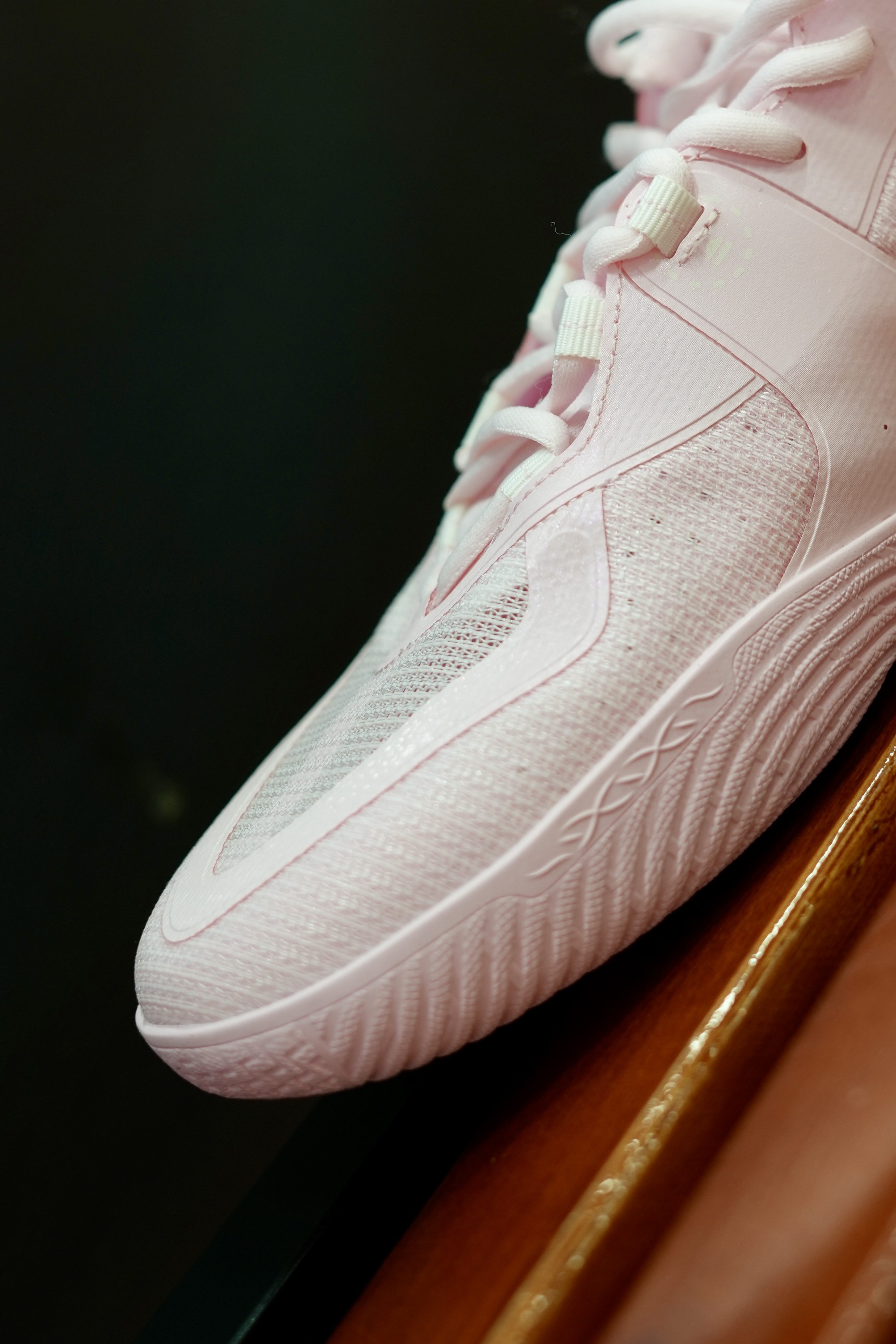 这双小清新配色的匹克态极无双「樱雄」 樱粉配色温柔又有活力 上脚瞬间解锁多巴胺穿搭 薄底贴地设计,重心稳,前掌发力利落 后卫突破、锋线对抗都能轻松驾驭!