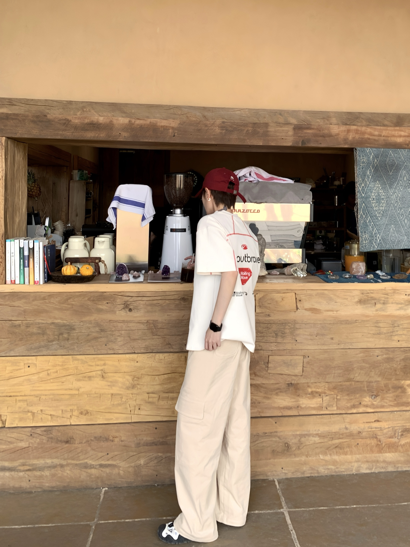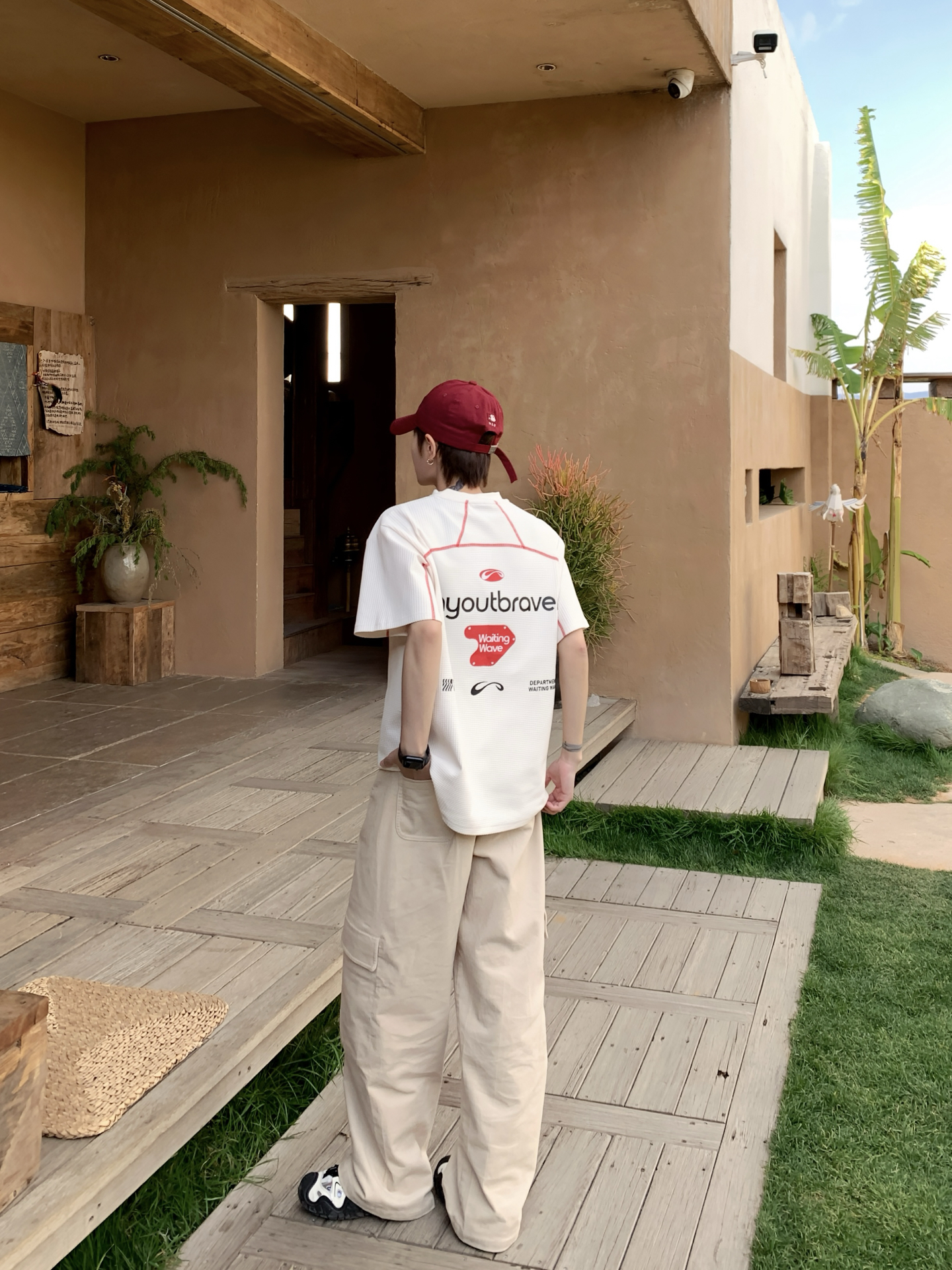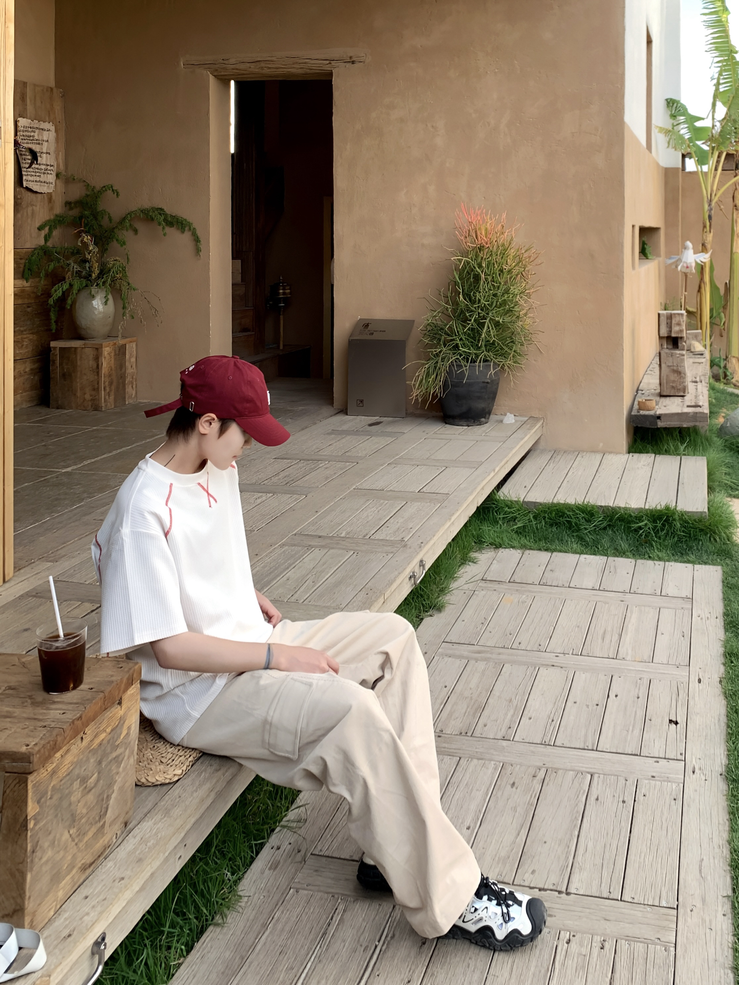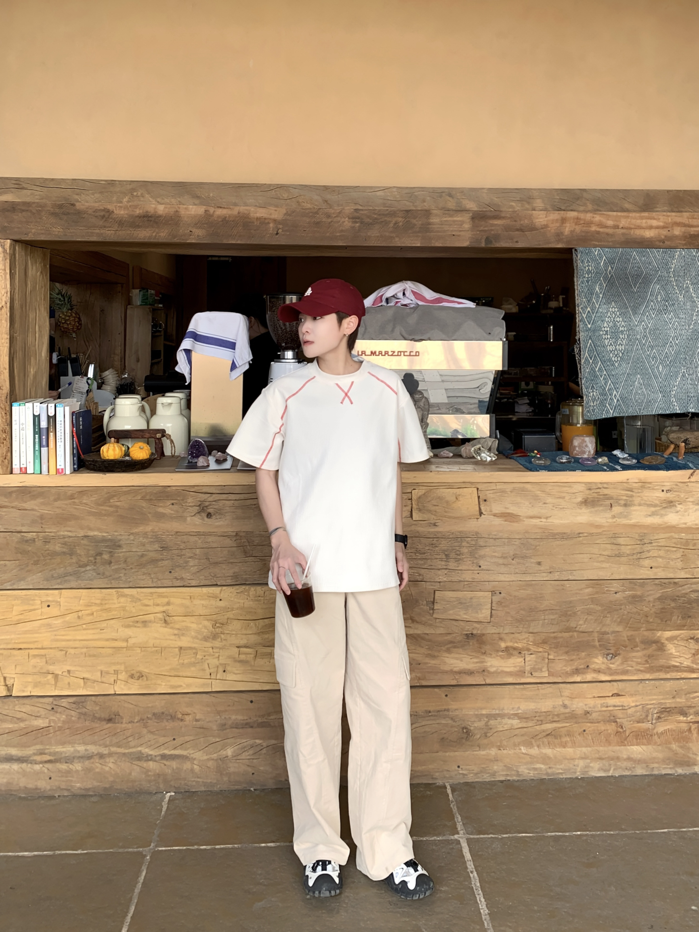 163 48 👔 华夫格户外速干短袖 正肩版型比较有轮廓感 肩窄的小个子也能驾驭住 后背的刺绣设计运动感十足 日常喜欢户外运动的也非常合适 搭配一条卡其色工装裤 日常通勤约会两不误 👟