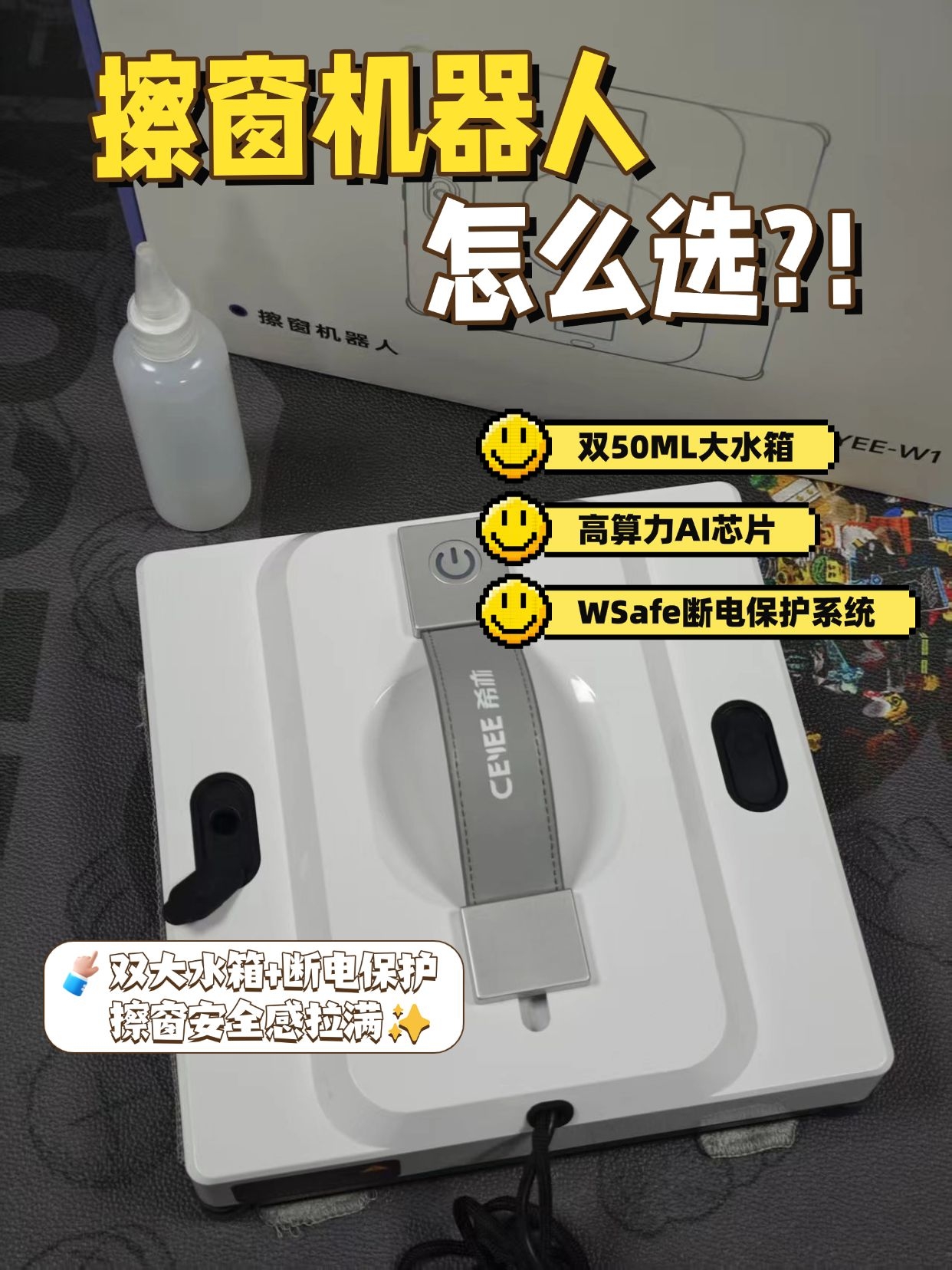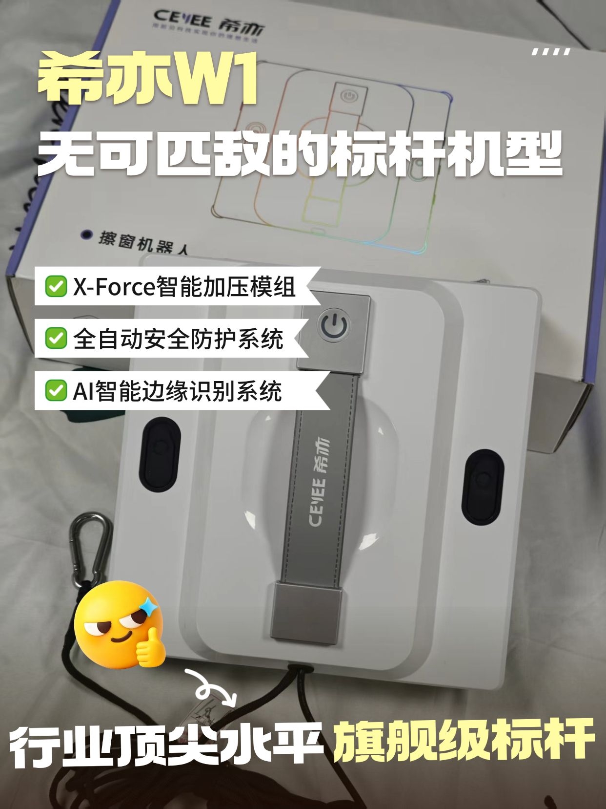 谁懂啊!家里窗户多就算了,还是高层,每次擦窗都要费半天劲,外窗根本不敢擦,找保洁又贵又不频繁,做了好久功课入了希亦W1,直接打开新世界大门! 机身小巧不笨重,女生单手就能操作,吸力真的很稳,牢牢吸在玻璃上不会掉,搭配安全绳,高层使用安全感拉满。全程自动规划清洁路线,不用手动干预,一键启动就能去忙别的事,双向六喷头雾化喷水+ NanoTex 纳米疏水纤维布,擦完的玻璃透亮无水印,连顽固灰尘、指纹...