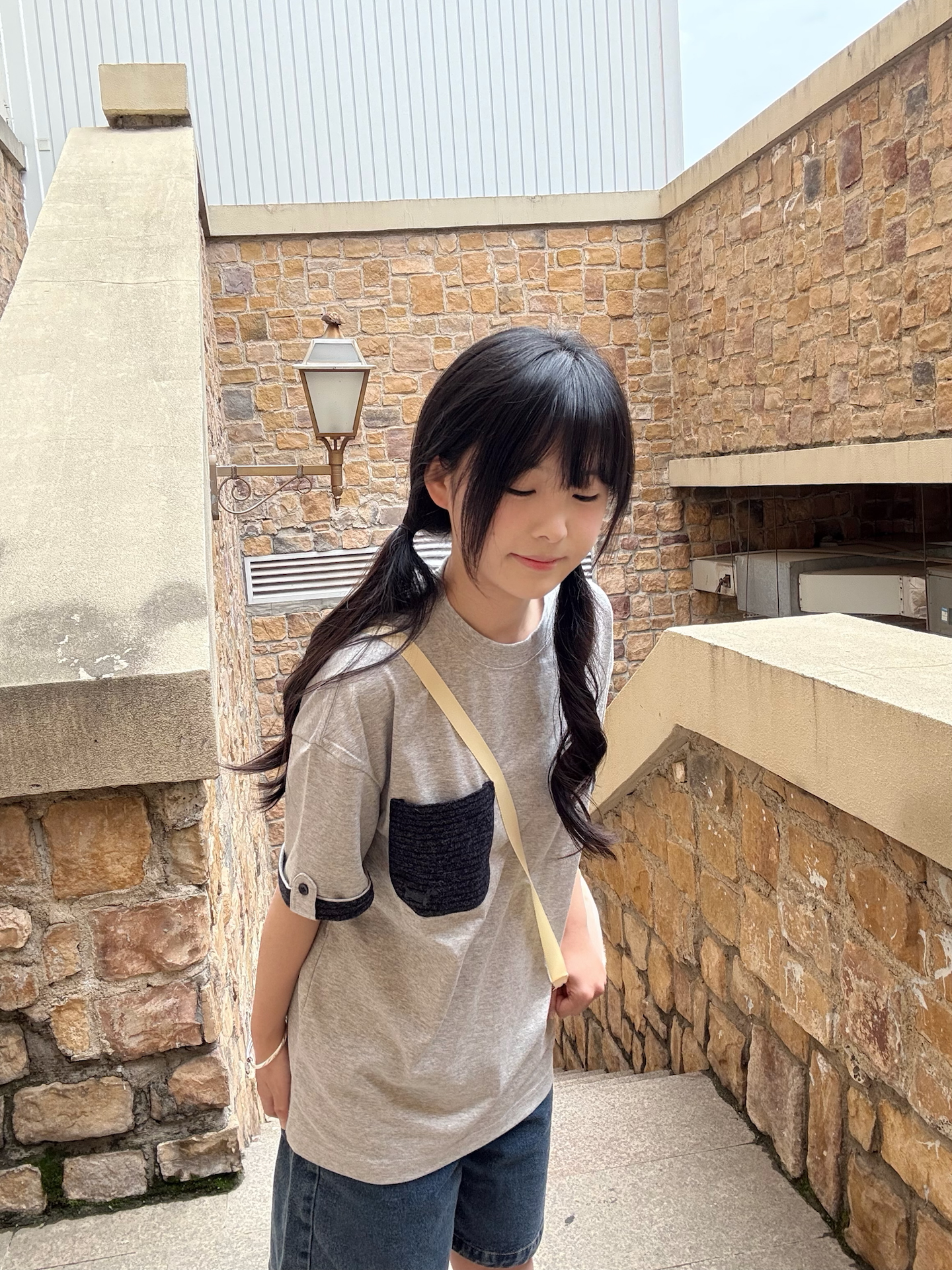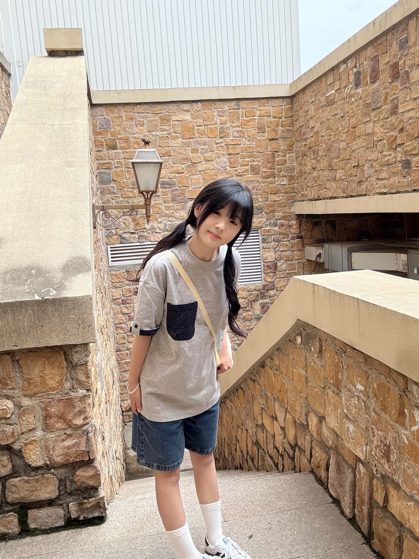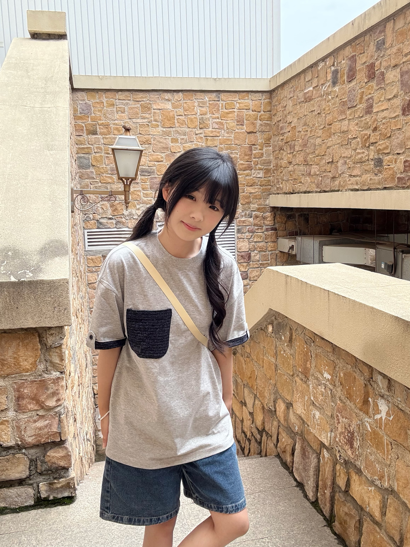 低饱和灰真的很香 胸口滴撞色口袋好高级!! 上身版型松弛不贴身 简约又很有质感~ 面料软乎乎滴 夏日出汗也不闷 随便配条牛仔短裤 青春活力味直接拉满 ! 少年感轻松拿捏😌