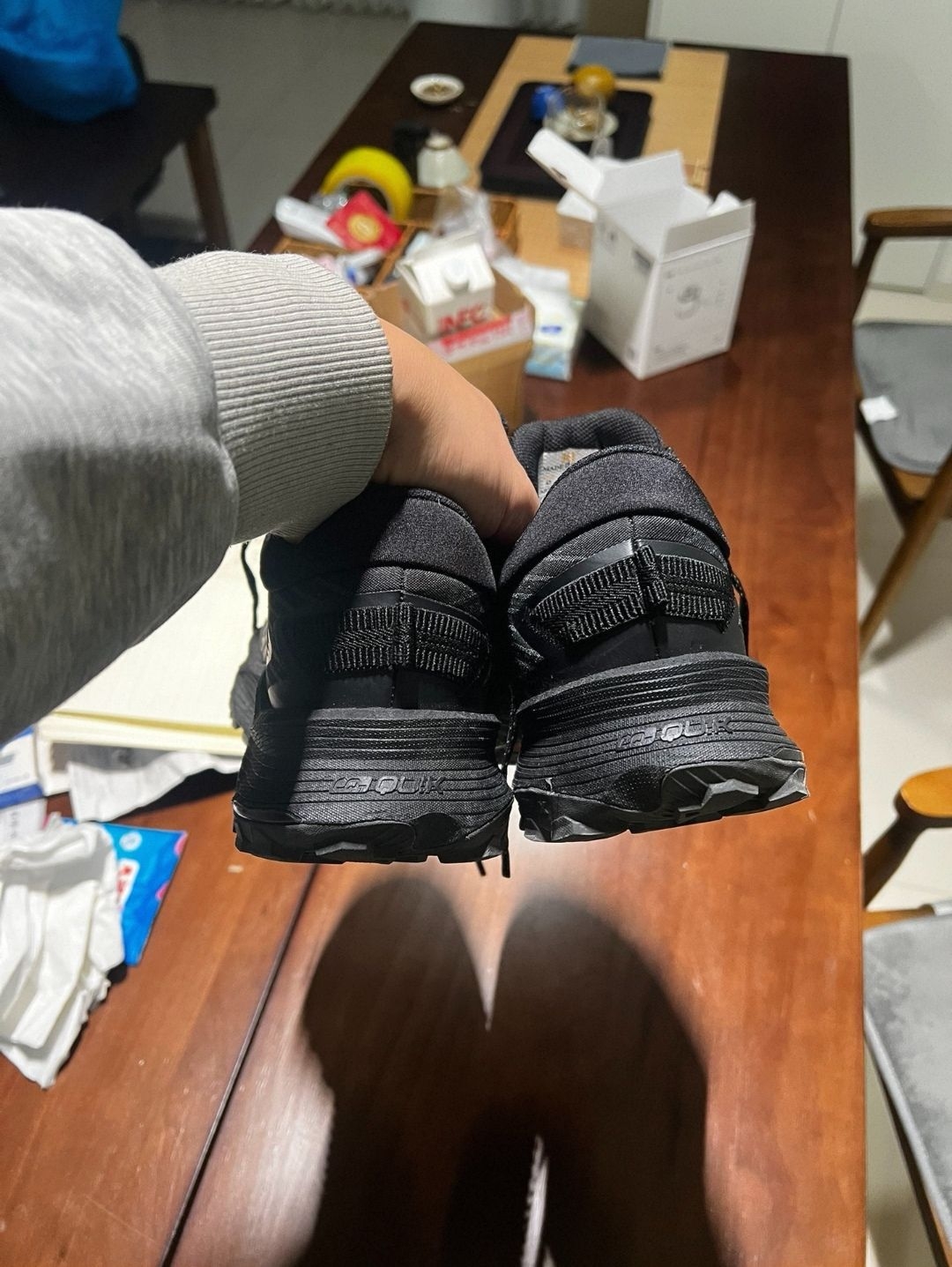 整体厚重,鞋底厚软,保护防风极佳,颜色也很酷炫,比普通版更适合户外,出街,唯一不足就是大脚趾处的外底上翻有时候会顶脚趾,其他没毛病
