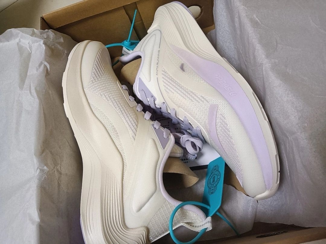 今天要给大家分享一款薰衣草紫配色的跑鞋。 这款跑鞋是安踏的一款跑鞋,整体的重量偏轻,比较适合日常通勤或者跑步。 休闲裤或者校服也能够轻松驾驭。 尺码方面我建议选择正常码。