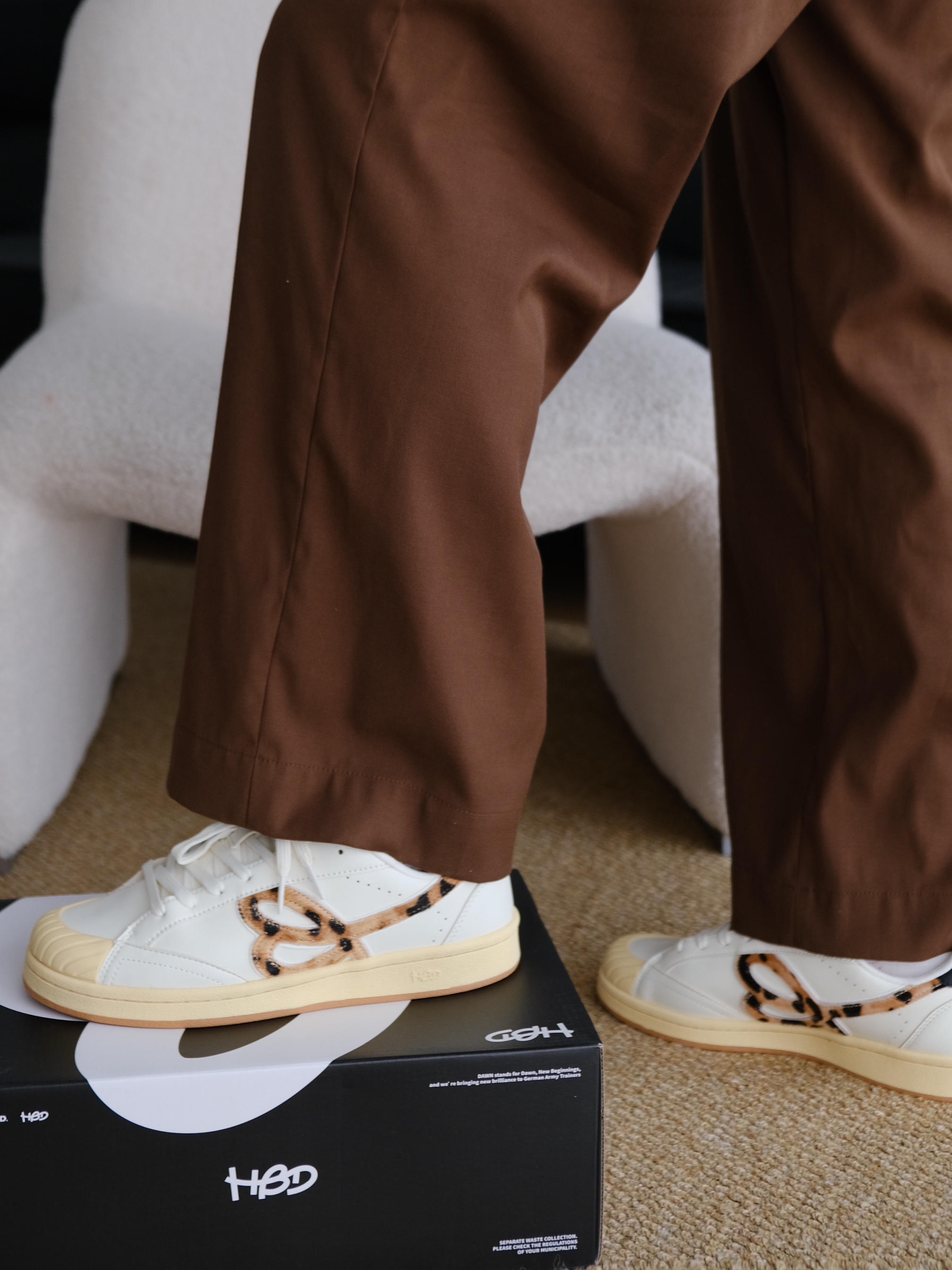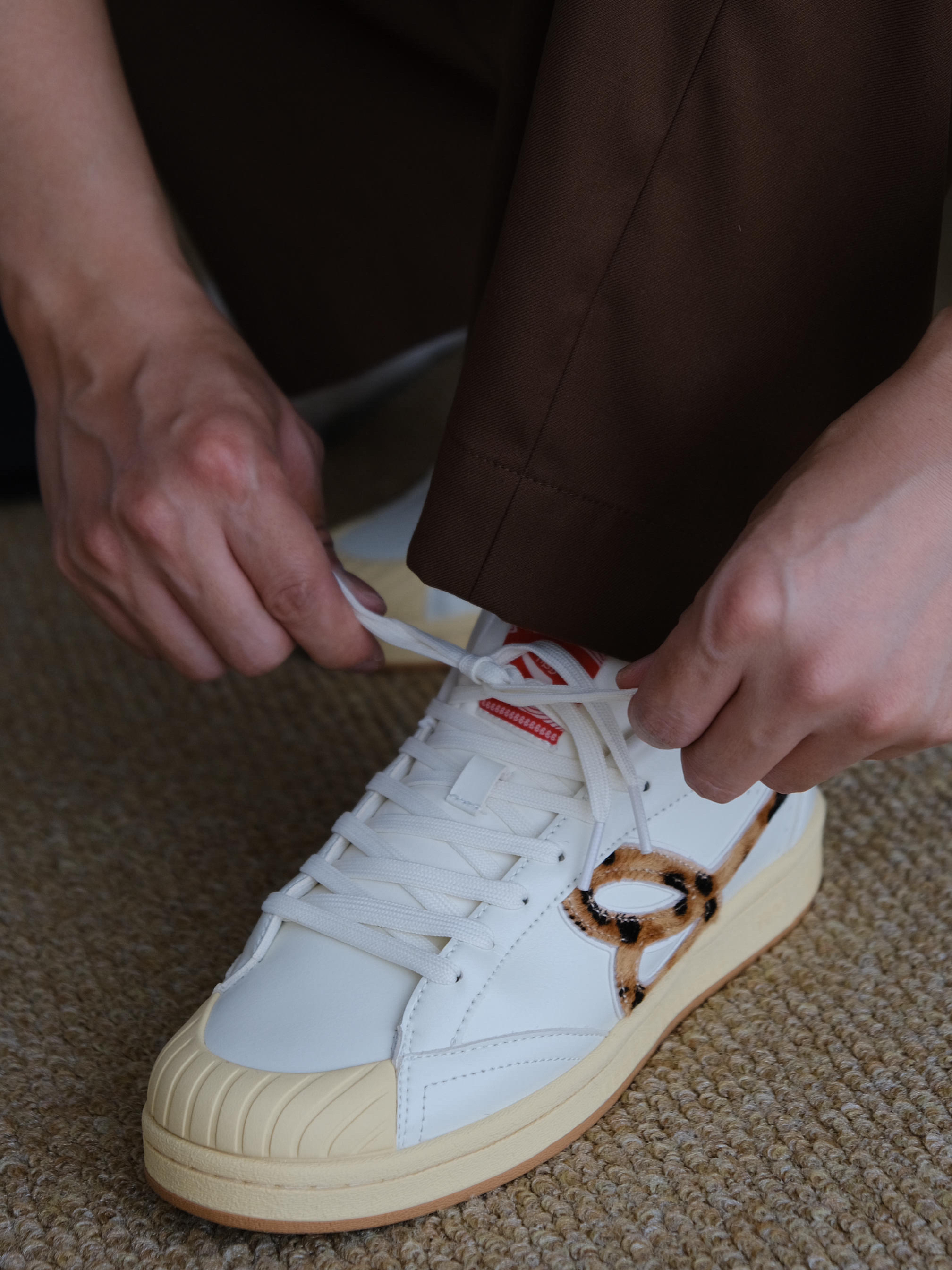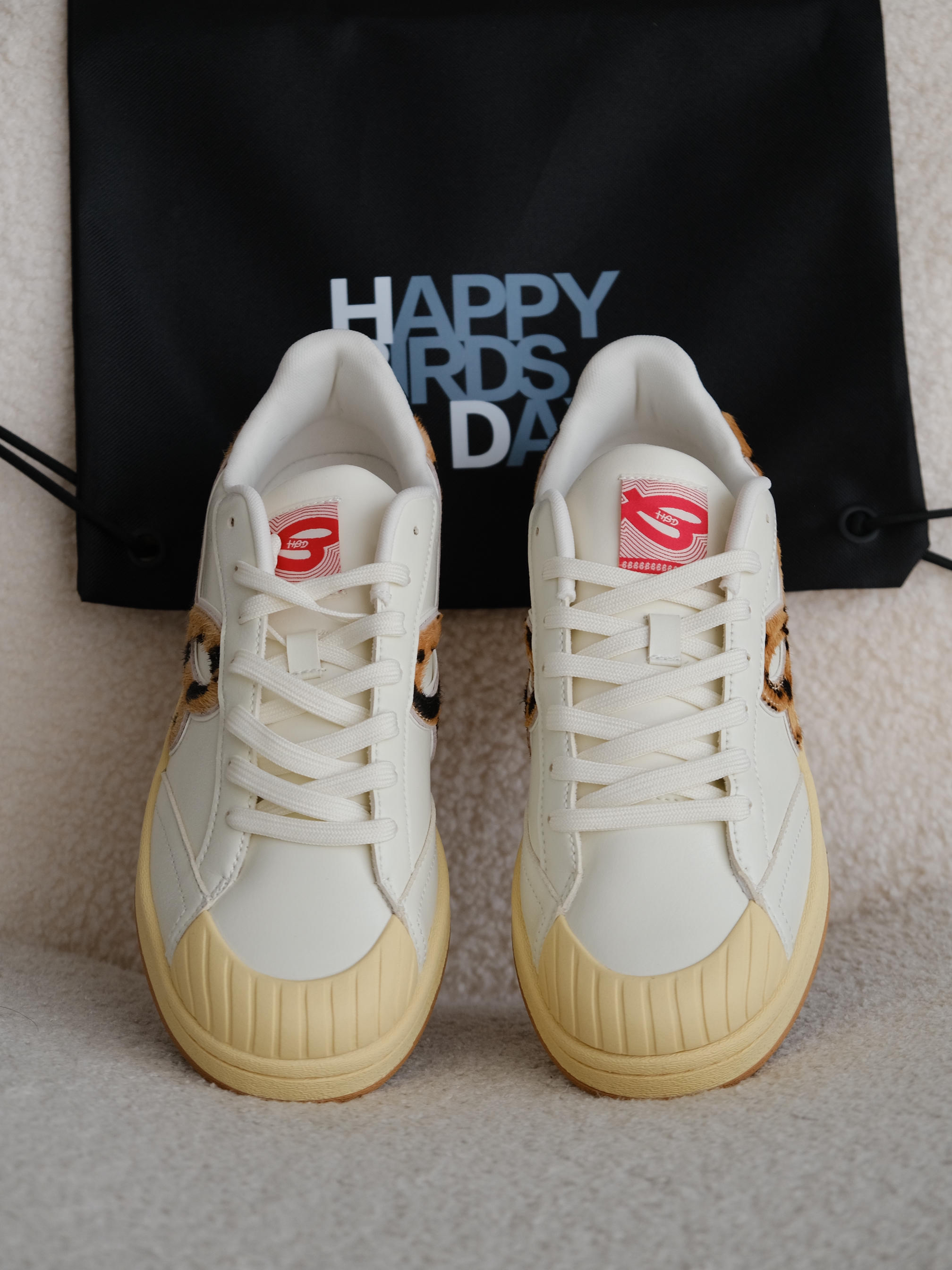 白色跟米色呈现很复古的感觉 加上毛流感的真实豹纹图案绝了 纵使现在鞋型多种多样 板鞋依然是万金油般百搭的存在
