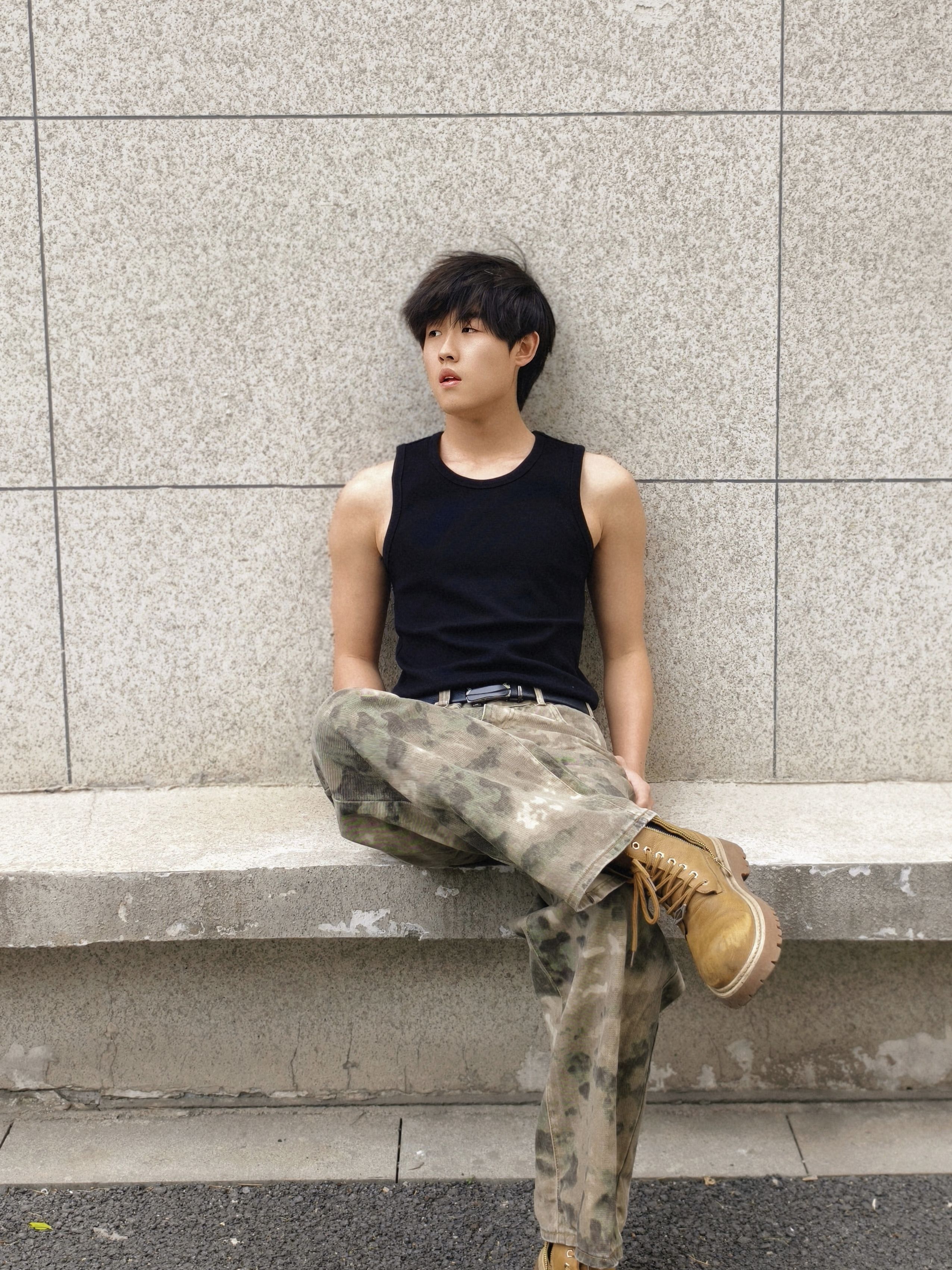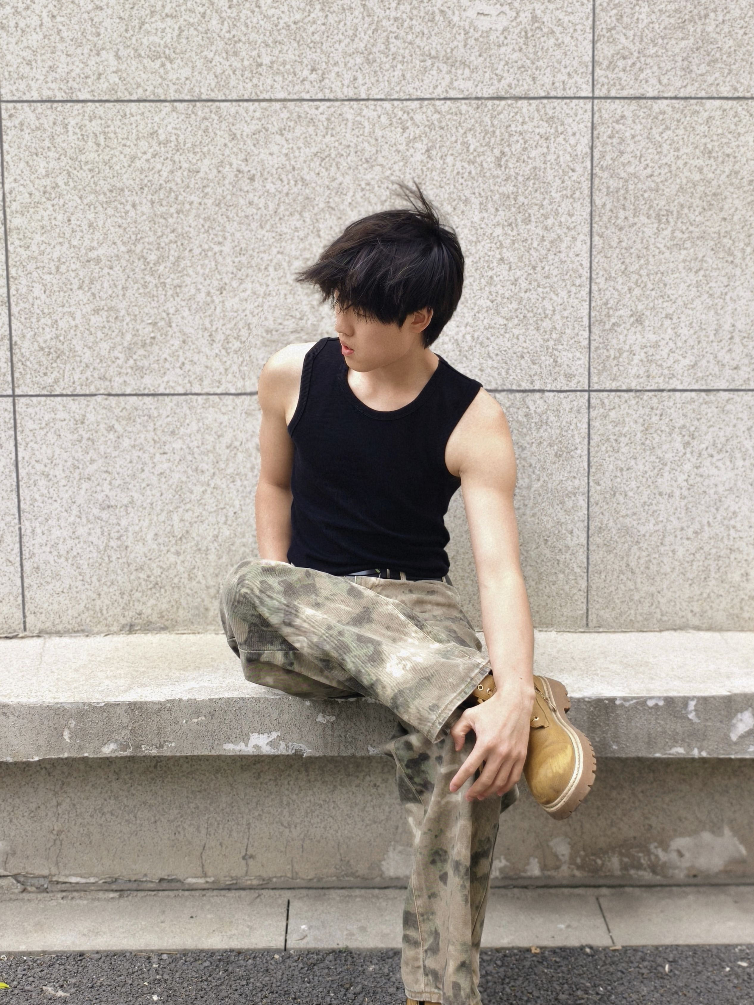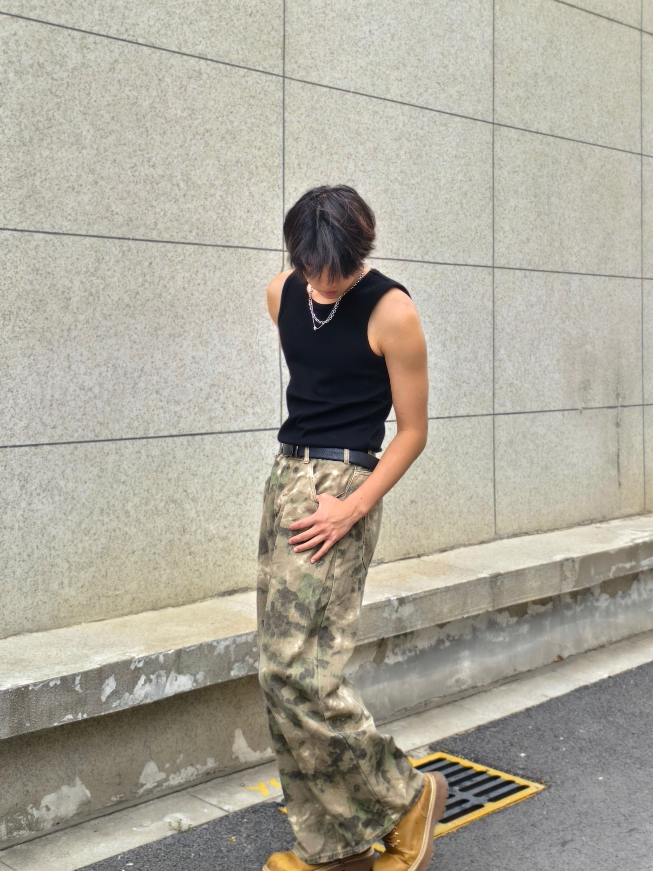 迷彩做旧,脚踩黄靴,这种自带故事感的组合,不管在城市- 不追求紧身的帅气,只追求松弛的自在。迷彩裤的做旧纹理,是夏天最耐看的高级感。街角还是山野路边,都自带气场。