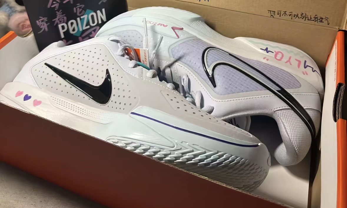 开箱真的有被惊喜到!这双鞋的涂鸦元素太有感觉了~ 鞋身干净的配色搭配随性的手写涂鸦,还有鞋盒上那句走心的小文字,每一处细节都透着那种“不被定义”的潮流感。 不管是日常出街还是球场实战,这双鞋都能穿出独属于自己的态度。把喜欢的文字、心意画在鞋上,这才是球鞋文化的精髓啊!