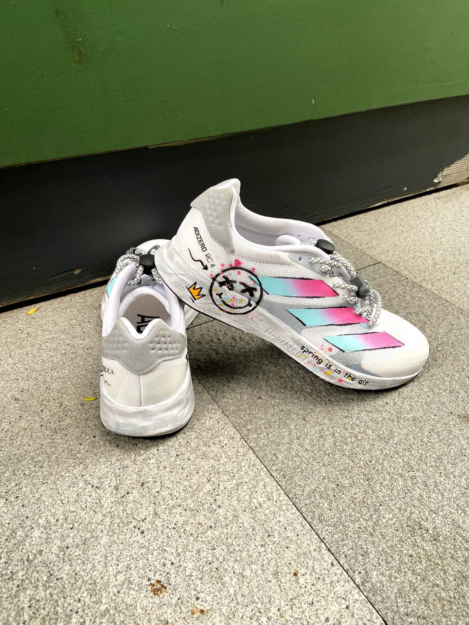 我的春日限定跑鞋改造完成白鞋+手绘涂 鸦真的太有灵气了!粉蓝渐变三道杠超吸睛,笑脸涂鸦元气满满,上脚轻盈又百搭,跑步日常穿都超合适!#宝藏鞋子阿迪达斯get#今日份阿迪新品#阿迪达斯神仙好鞋#超好看的阿迪达斯分享#阿迪达斯少女心狙击