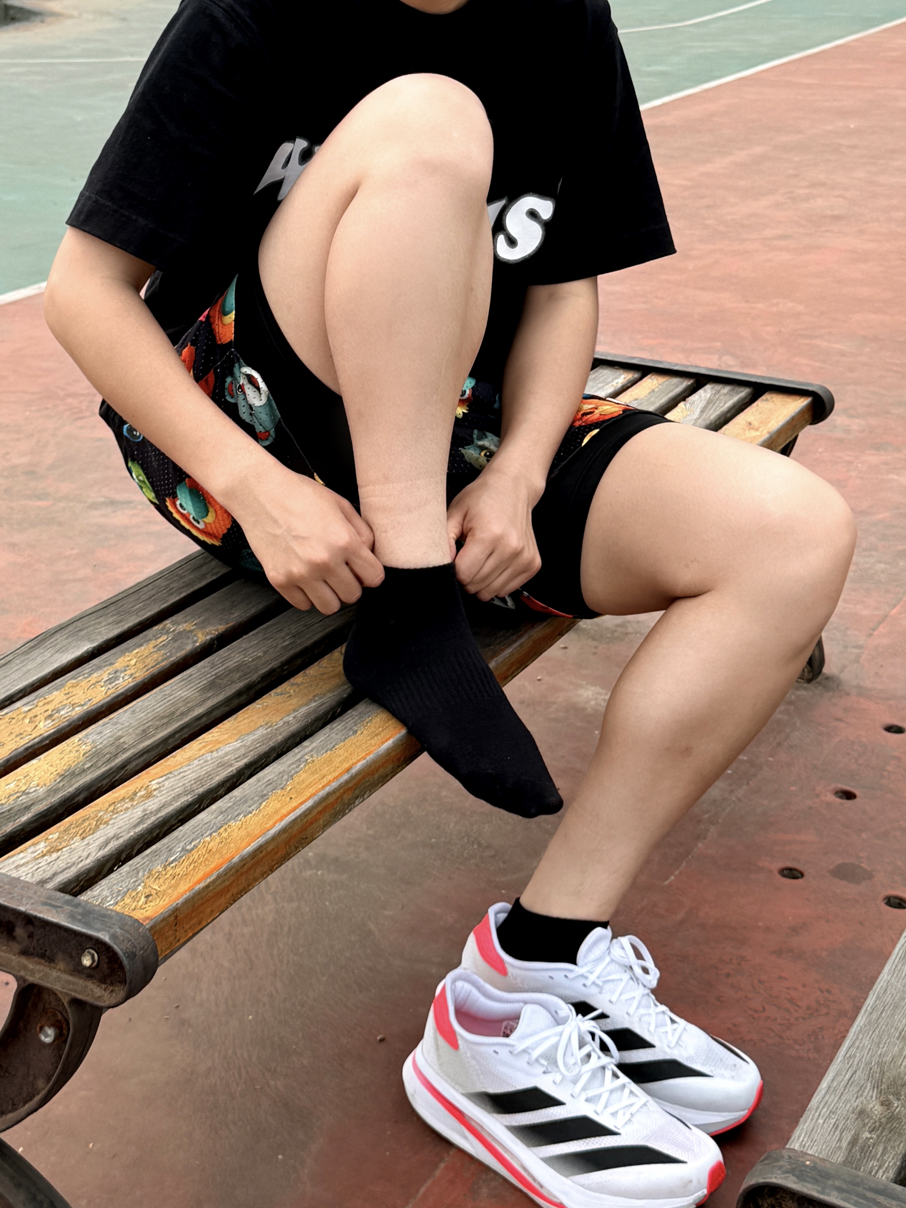 不打球的时候,看别人打球时,我都不穿运动袜,我会穿 Warrior/回力 家的这款短袜,休闲舒适,纯棉亲肤柔软。 穿上它在穿一双缓震柔软的跑鞋,慢跑也是非常舒服的,跑起来是软软的感觉,跑久了也不闷脚,也不会给脚太大的压力。穿着好看,还可以做装饰,比较适合我这种实用主义者。