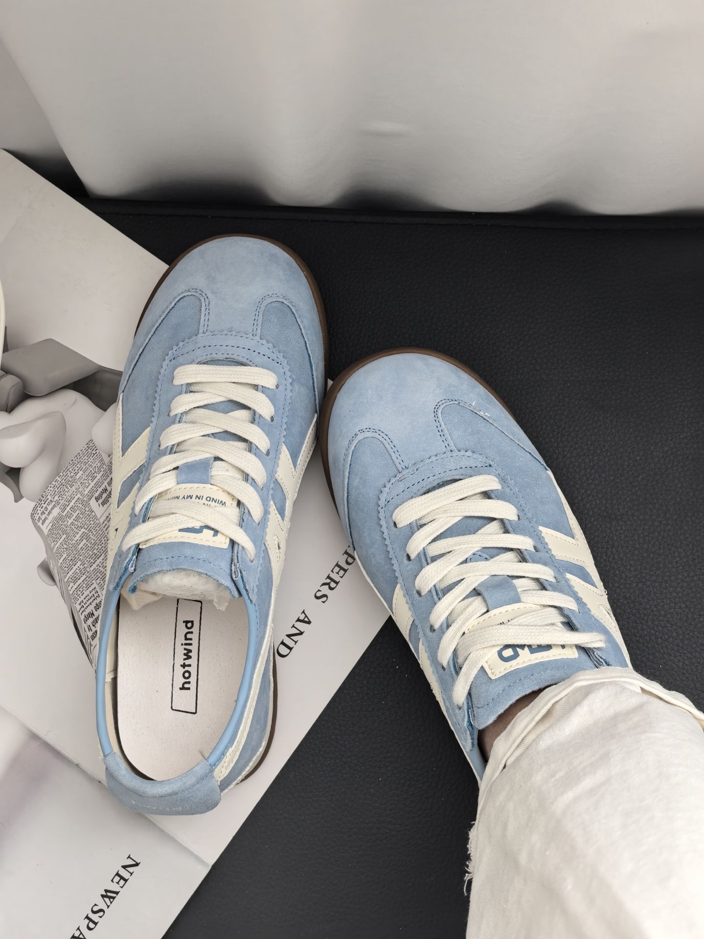 年度挖到的宝藏德训鞋|奶蓝复古款实测分享✅ 颜值&脚感双在线!经典德训鞋版型不挑脚型,男生女生都能轻松驾驭,奶蓝配色清新又高级,生胶防滑大底耐磨又稳当。 鞋面材质耐脏好打理,懒人福音!鞋垫软弹缓震,长时间走路完全不累脚,日常通勤、校园穿搭、休闲出街都适配,百元价位穿出千元质感,性价比直接拉满🔥