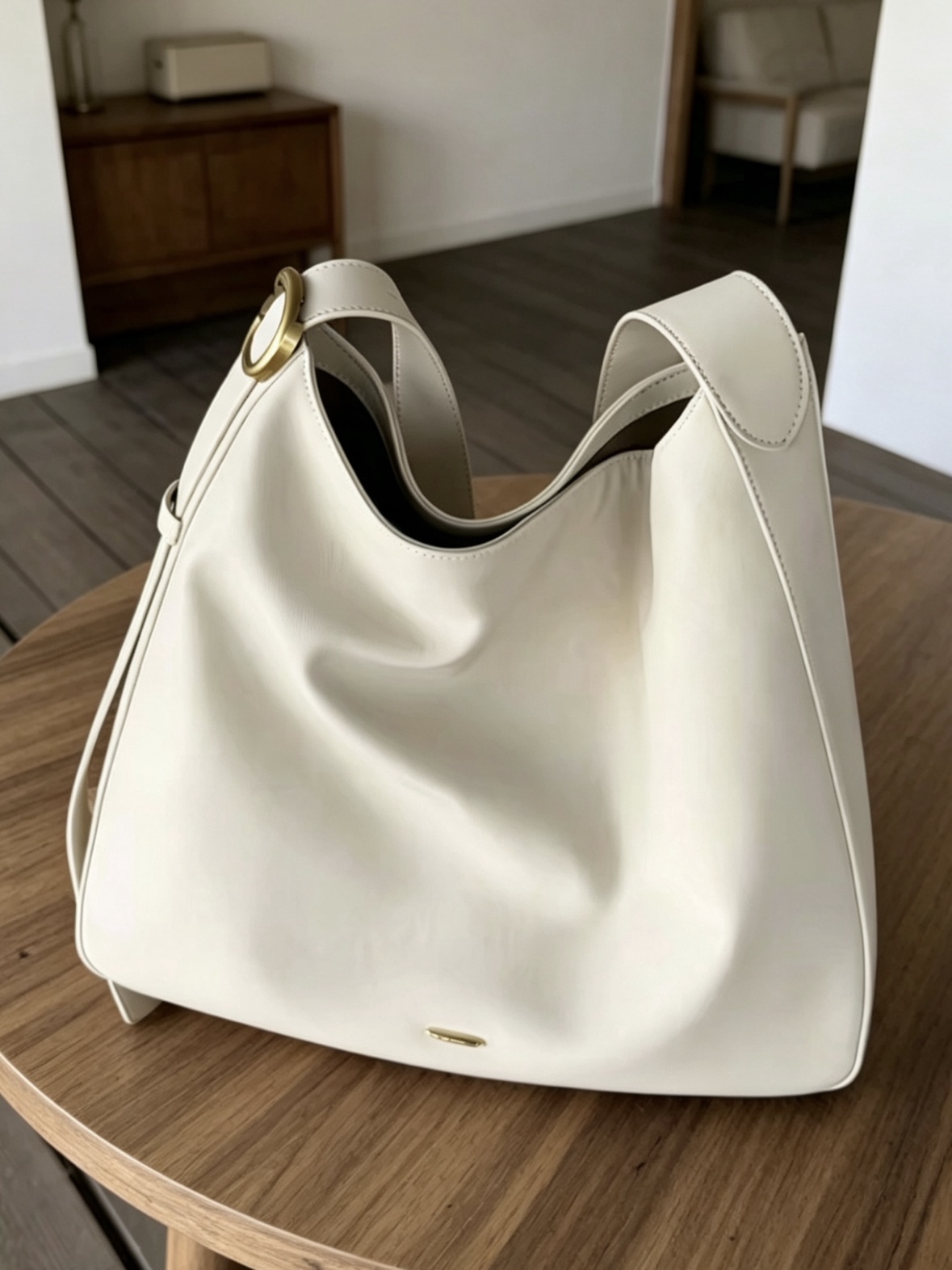 它的颜色是那种很柔和的奶油白,自带干净气质,又不会像纯白色那么亮眼。整体饱和度偏低,无论搭配什么风格的衣服,都能瞬间提升整体造型的温柔感和高级感。 整个包型是现在很流行的 hobo 款,皮质特别柔软,会随着你装的东西和背的方式自然形成一些褶皱,像一朵软糯的云朵。它不是那种硬挺有型的包,这种不经意的松弛感,反而更吸引人。