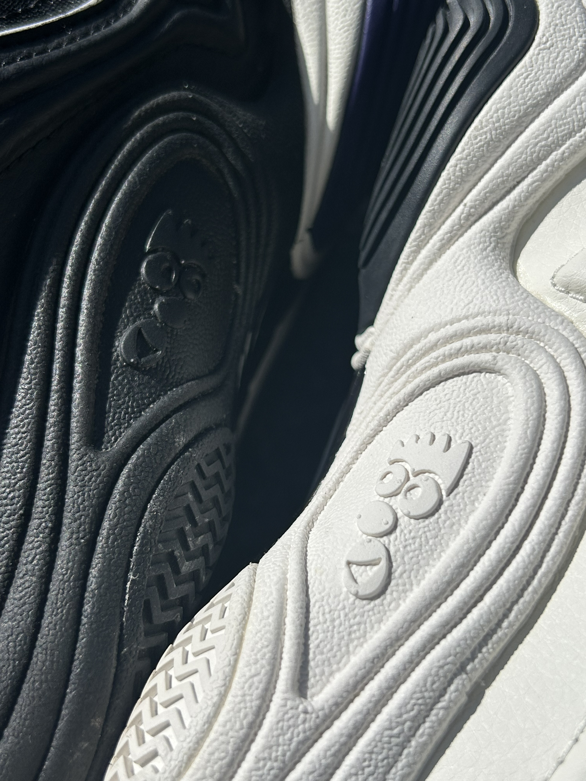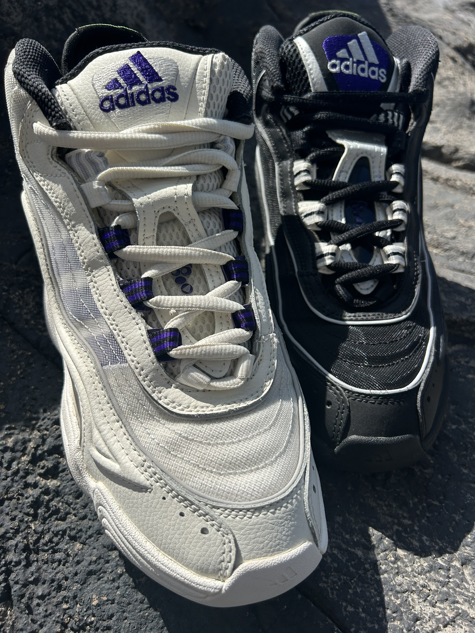 今天与大家分享的鞋款是adidas Crazy 98的白紫与黑紫两款配色,其元年款式Adidas EQT KB8 II也是科比上脚过的两款配色,这次更名为Crazy98再次登场相对比上次的Crazy2除了天足标志的回归,后跟EQUIPMENT字样也再次回归搭配阿迪缓震胶以及抗扭转系统可以说是比较有诚意的一次复刻,只是鞋型质感始终无法与元年相比不过对于喜欢天足的伙伴来说能够看到复刻也已经可以接受了。