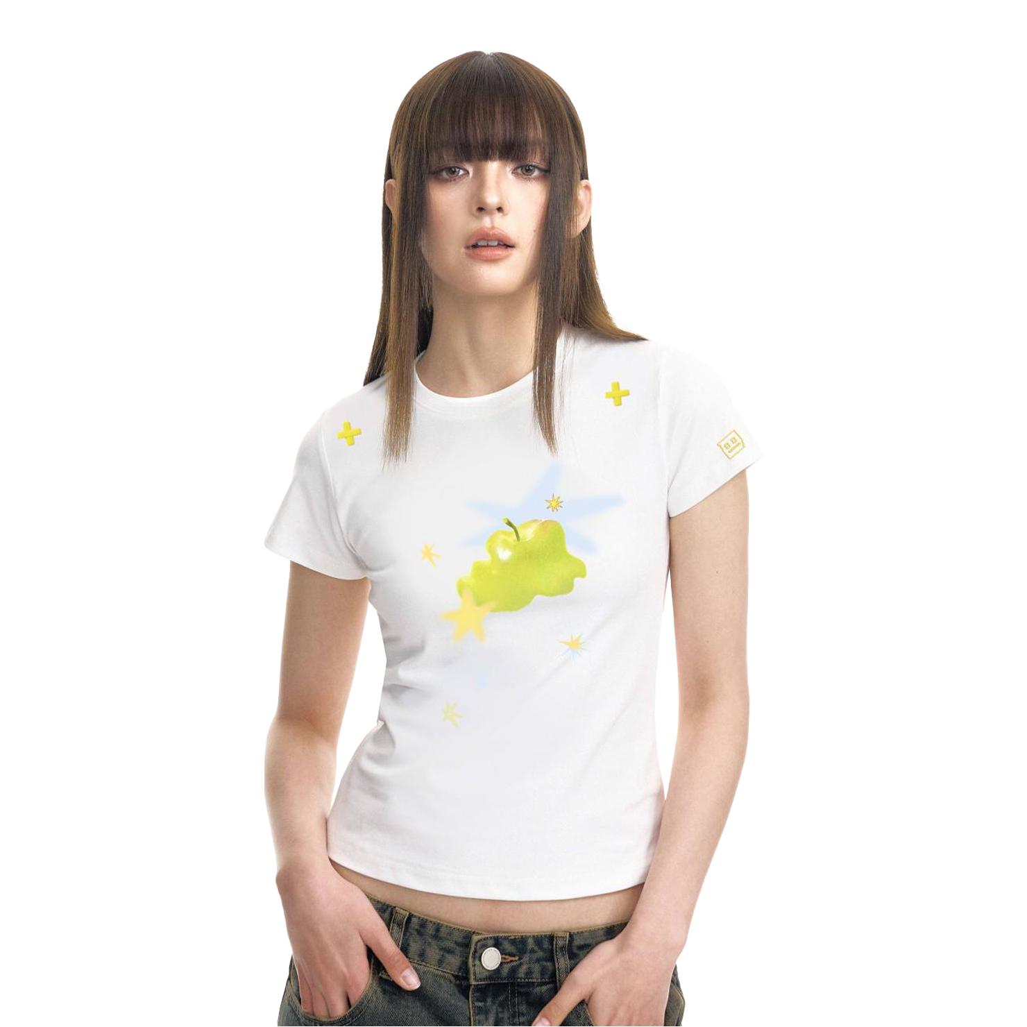 好清新的短袖 青苹果液态印花非常的夏天,感觉十分的有活力 版型很修身 显瘦 很百搭 日常通勤都合适