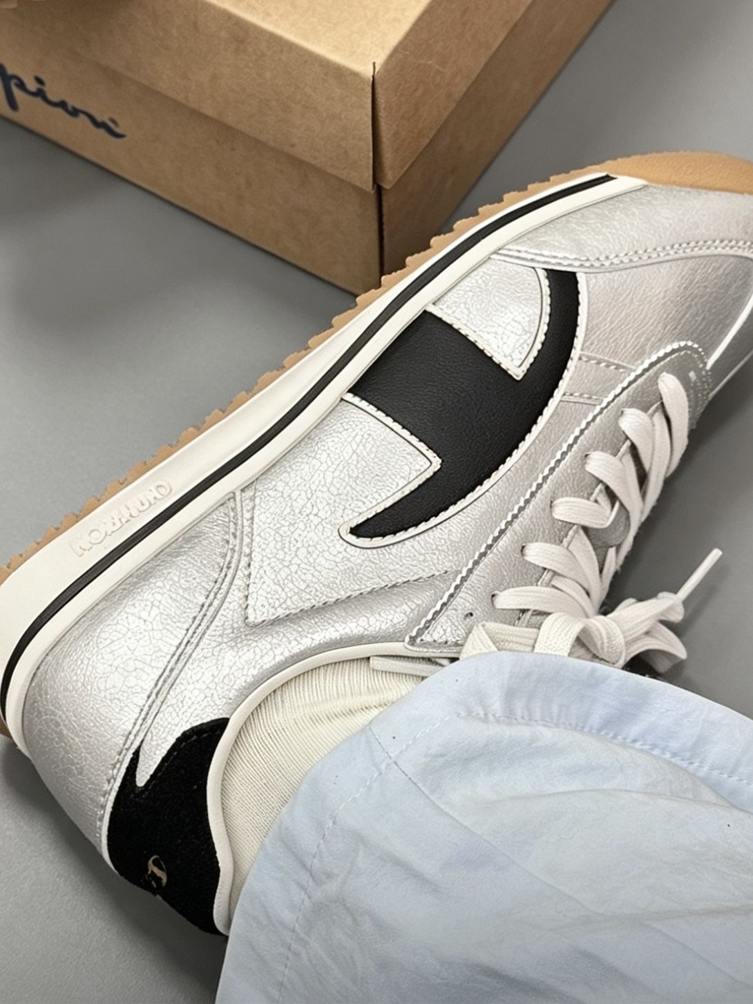 救命!Champion这双银色德训鞋直接美到心巴💿 自带未来感的银皮鞋面,搭配黑边+生胶鞋底,复古美式风拉满!阳光下微微反光,低调又吸睛,完全不挑肤色。 经典德训鞋版型超显瘦,上脚秒拉腿长,脚感软乎乎暴走不累。牛仔裤、工装裤、百褶裙随便搭,校园出街、日常通勤全hold住,小众不撞款,潮人闭眼冲!
