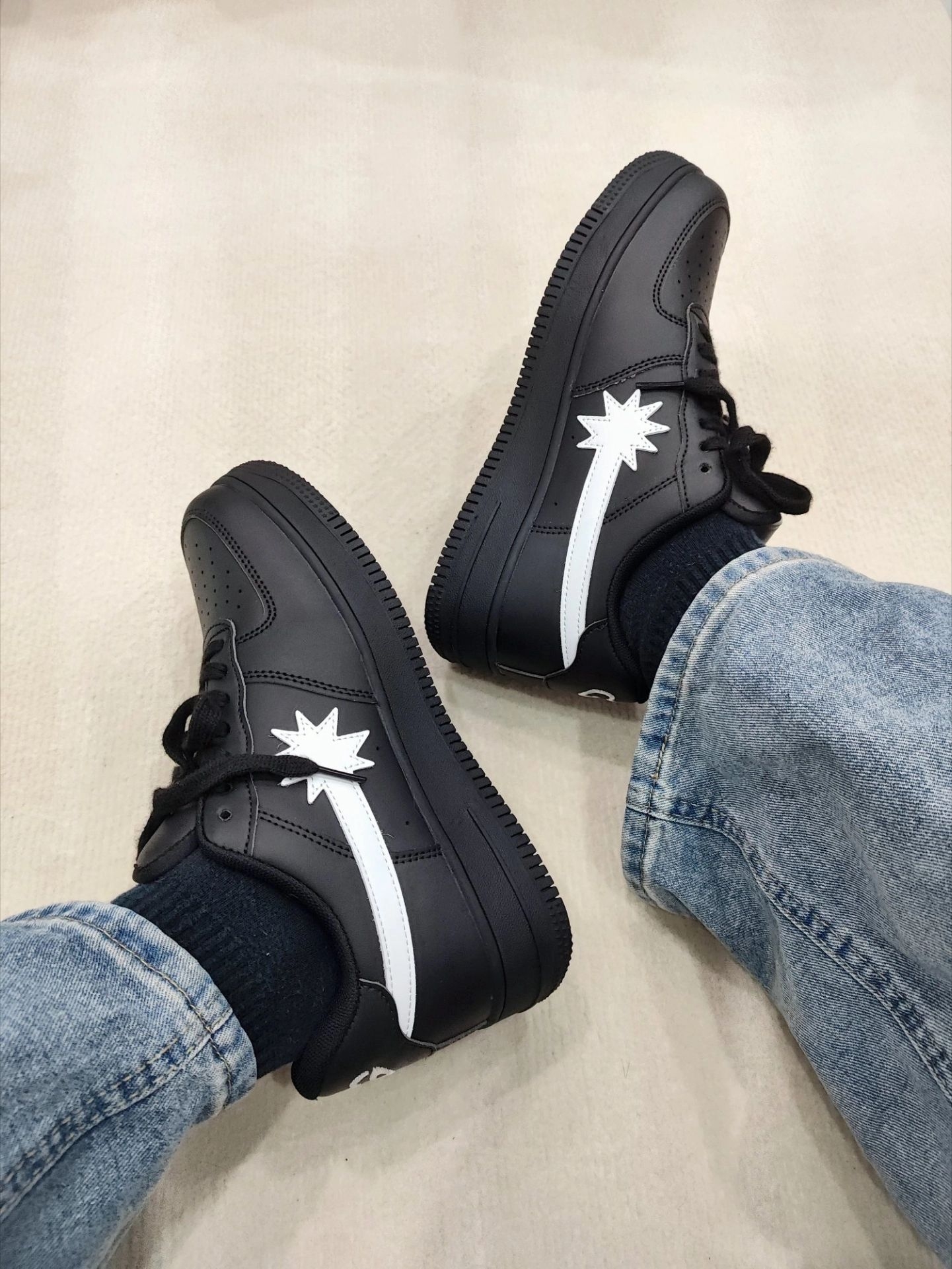 被狠狠种草!这双星芒板鞋真的美到离谱🔥 区别于烂大街的基础款,黑白撞色+星芒元素自带小众潮流感,鞋身线条利落又灵动,低调中透着个性,完全不撞款。 对各种脚型包容度超高,上脚显脚小还显瘦,不管是暗黑风、韩系松弛风还是甜酷辣妹风,它都能完美适配。搭配白袜+直筒裤秒变街头博主,日常随便穿都自带潮酷buff,已经成为我鞋柜里的常驻嘉宾,酷盖党必入!