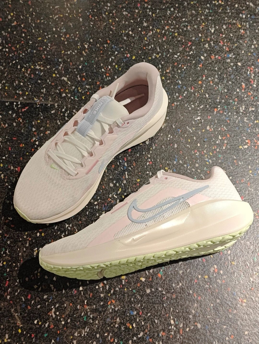 淡色系列的配色是真的好看 缺点就是不耐脏了🙈 3开性价比妥妥的高 鞋子码正 上脚轻便柔软 日常在健身房锻炼跑步机没的问题🤪 户外跑步缓震效果不错💪