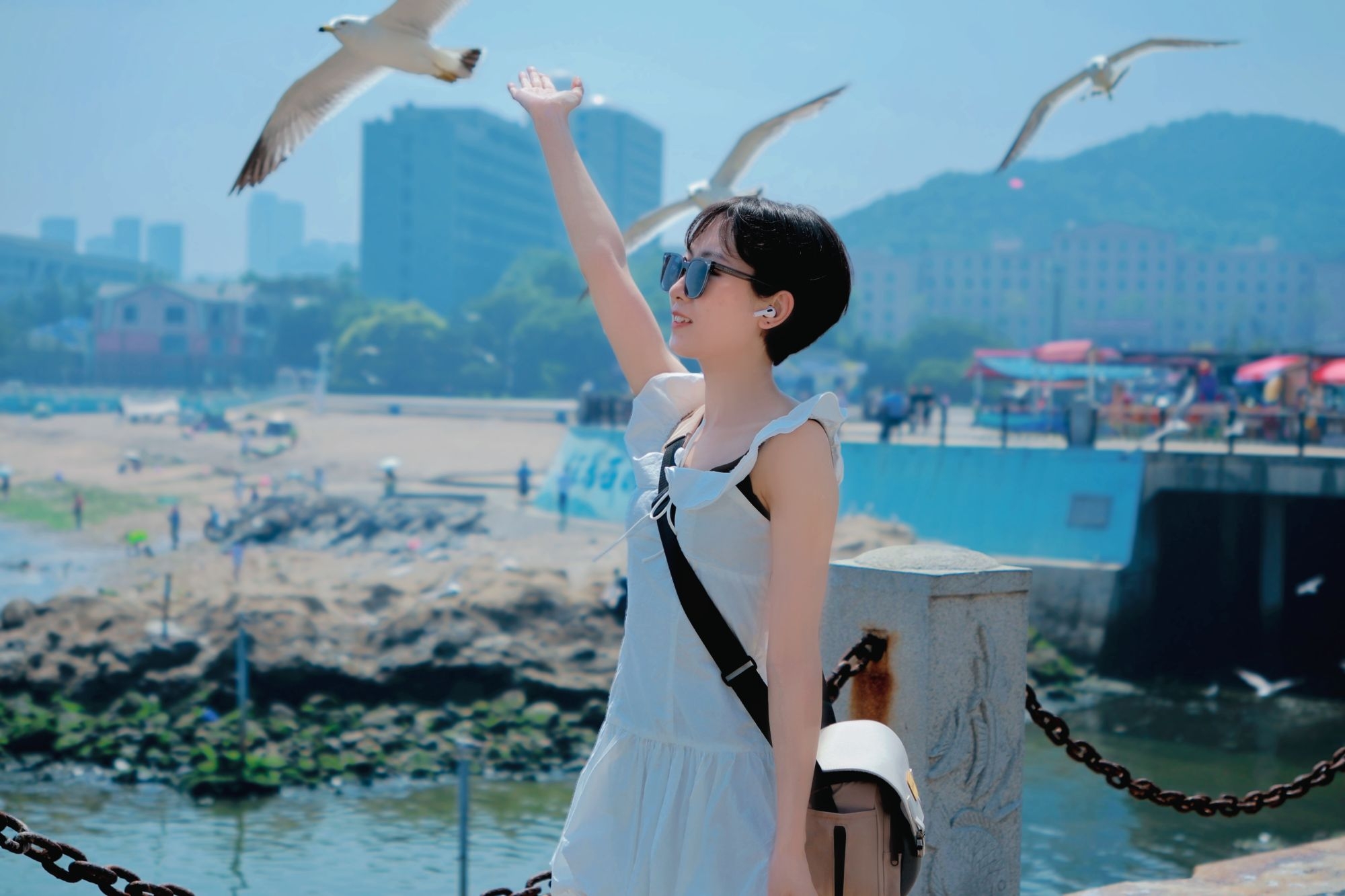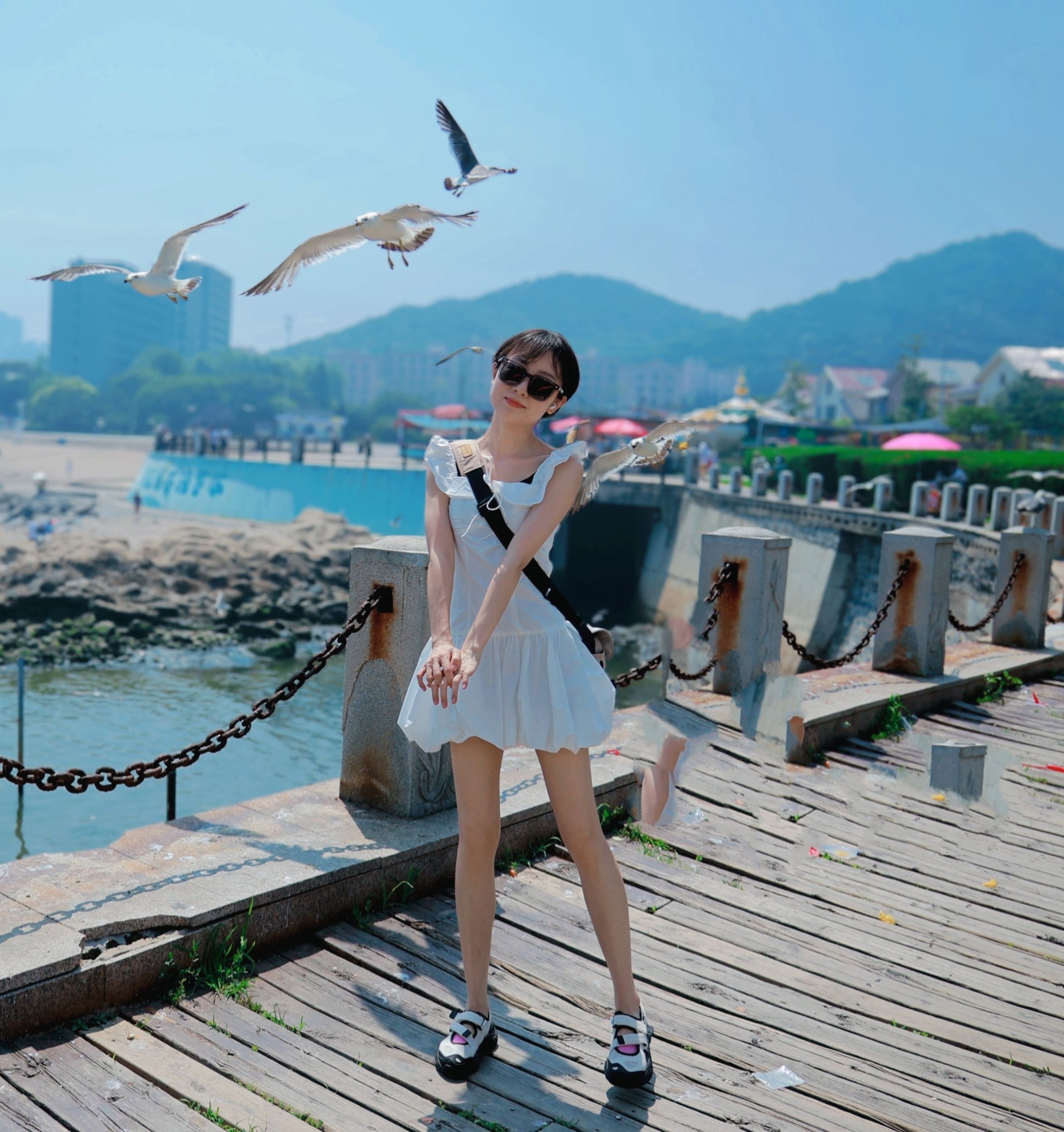 奔赴海风与落日,温柔系度假穿搭定格浪漫 小飞袖白色连衣裙轻盈又灵动,收腰剪裁优化比例 短款裙摆利落俏皮,小个子穿毫无压身感 简约干净的纯白底色,衬得黄白皮通透清爽 搭配FILA休闲凉鞋,松弛又随性 海风、栈桥与海鸥加持,轻松拍出治愈海边氛围感 日常出游、短途旅行都适配,简约穿搭也能穿出满满松弛感