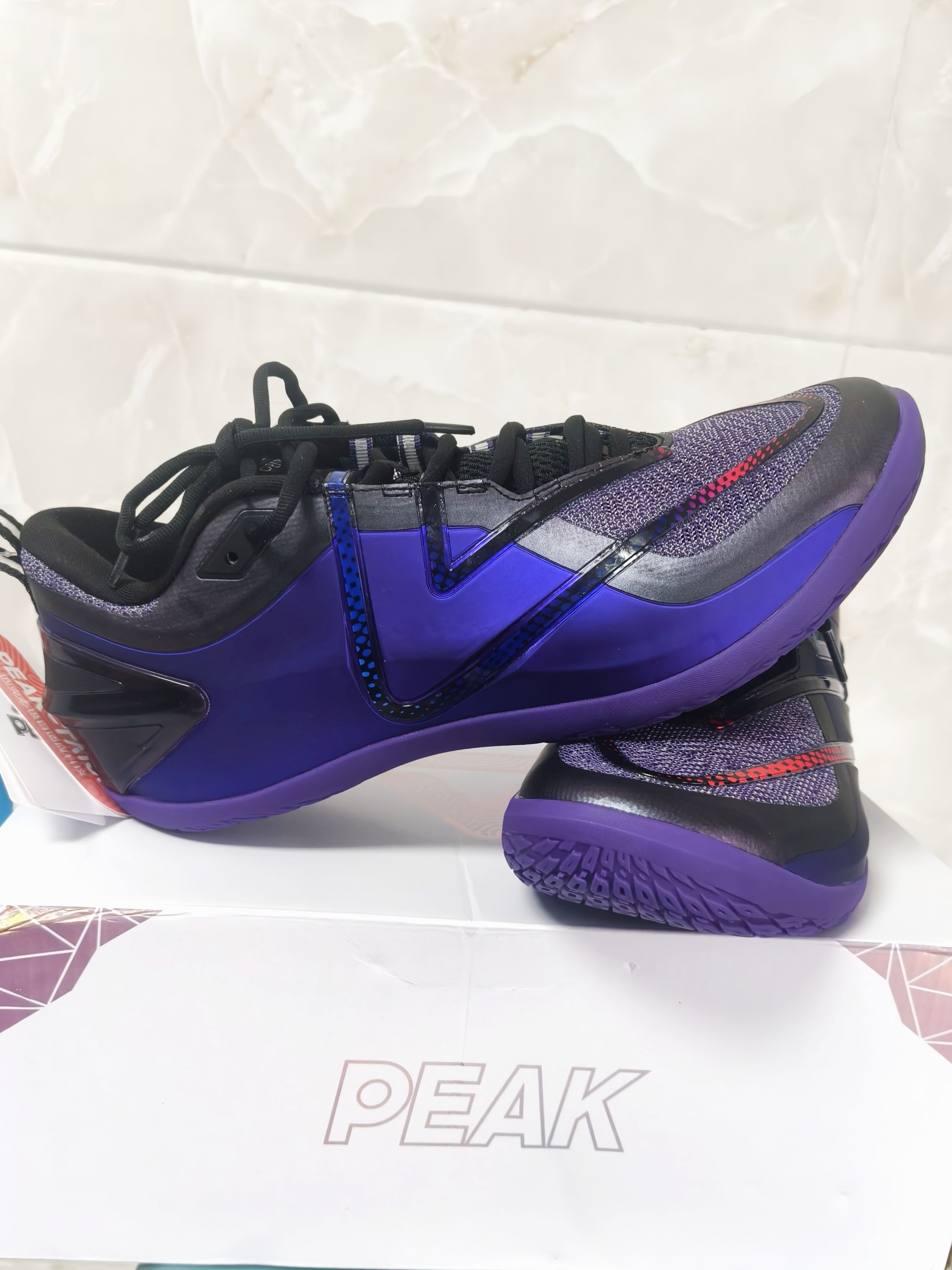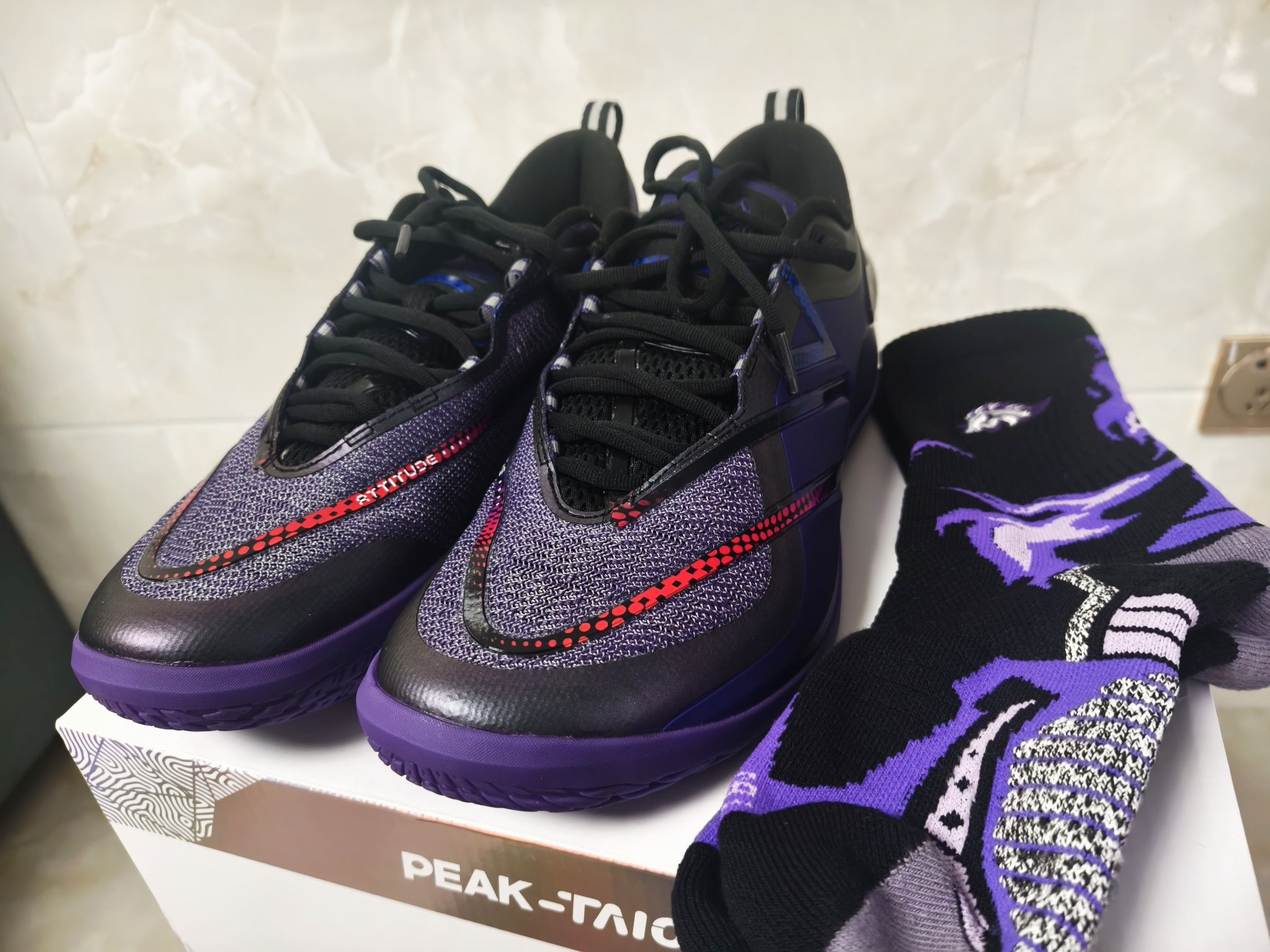 今天到手一双匹克将军紫色国王配色,匹克你真的不是在致敬某位41岁小将嘛? 我搭配了维动马年限定紫色配色我花了18三双,太给力了,维动,上脚也很舒服很帅。 上脚初体验:软弹韧无需踩直接上脚就开,态极脚感可以的,鞋楦稍宽,Nike42.5我穿这个43刚刚合适,包裹很好,单只重量大概400左右 这抹渐变紫真的太绝了,鞋身线条利落又有力量感,上脚直接拉高球场回头率 低帮设计不卡脚踝,搭配球裤、...