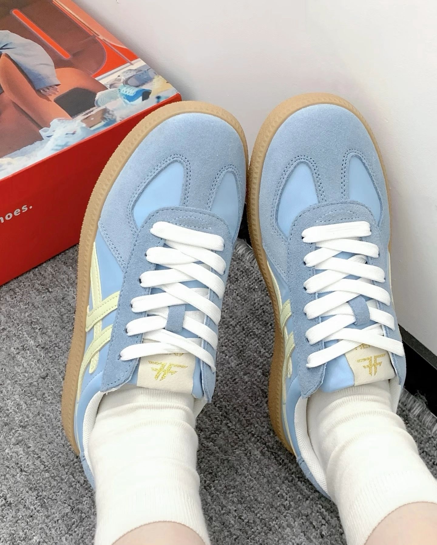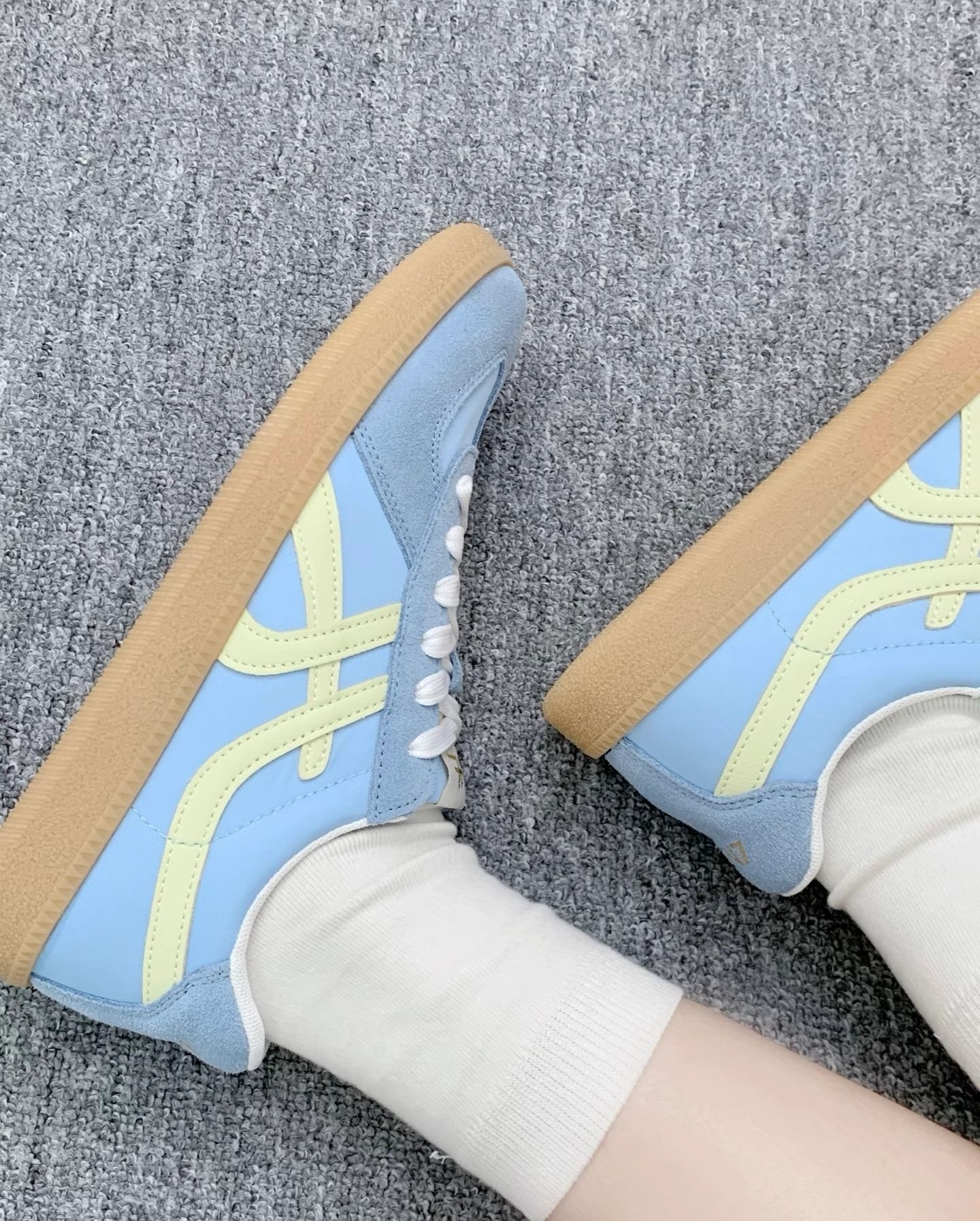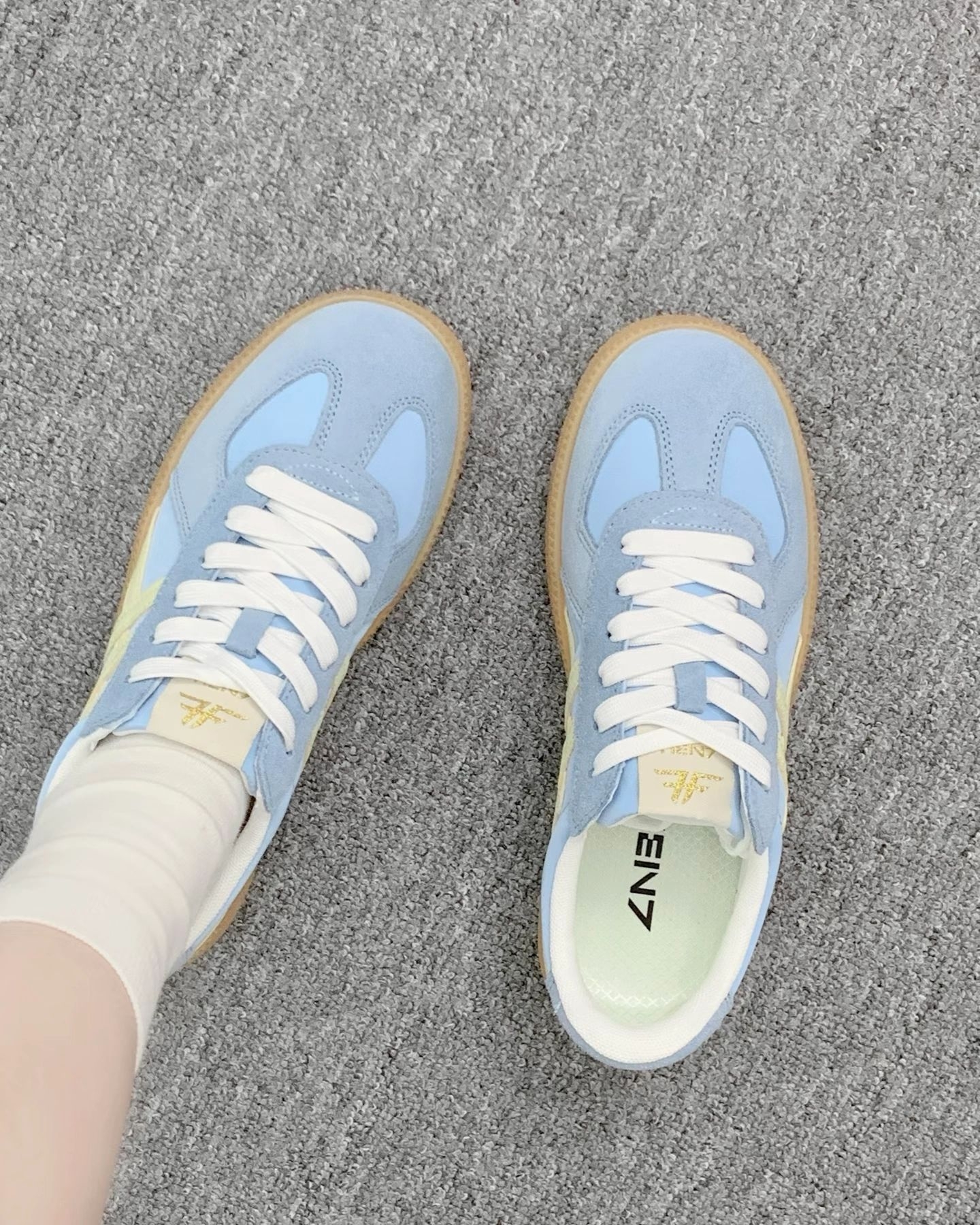 清新的奶蓝色调搭配生胶底,春日氛围感直接拉满,不管是搭牛仔裤、百褶裙还是连衣裙都巨适配!上脚软乎乎的,走路完全不磨脚,早八赶课、周末踏青穿它都超省心。 作为学生党真的要冲!百元价位质感在线,奶蓝配色超显白,黄皮姐妹穿也能瞬间提亮肤色,随便拍都出片,已经被我焊在脚上了,闭眼入不亏!