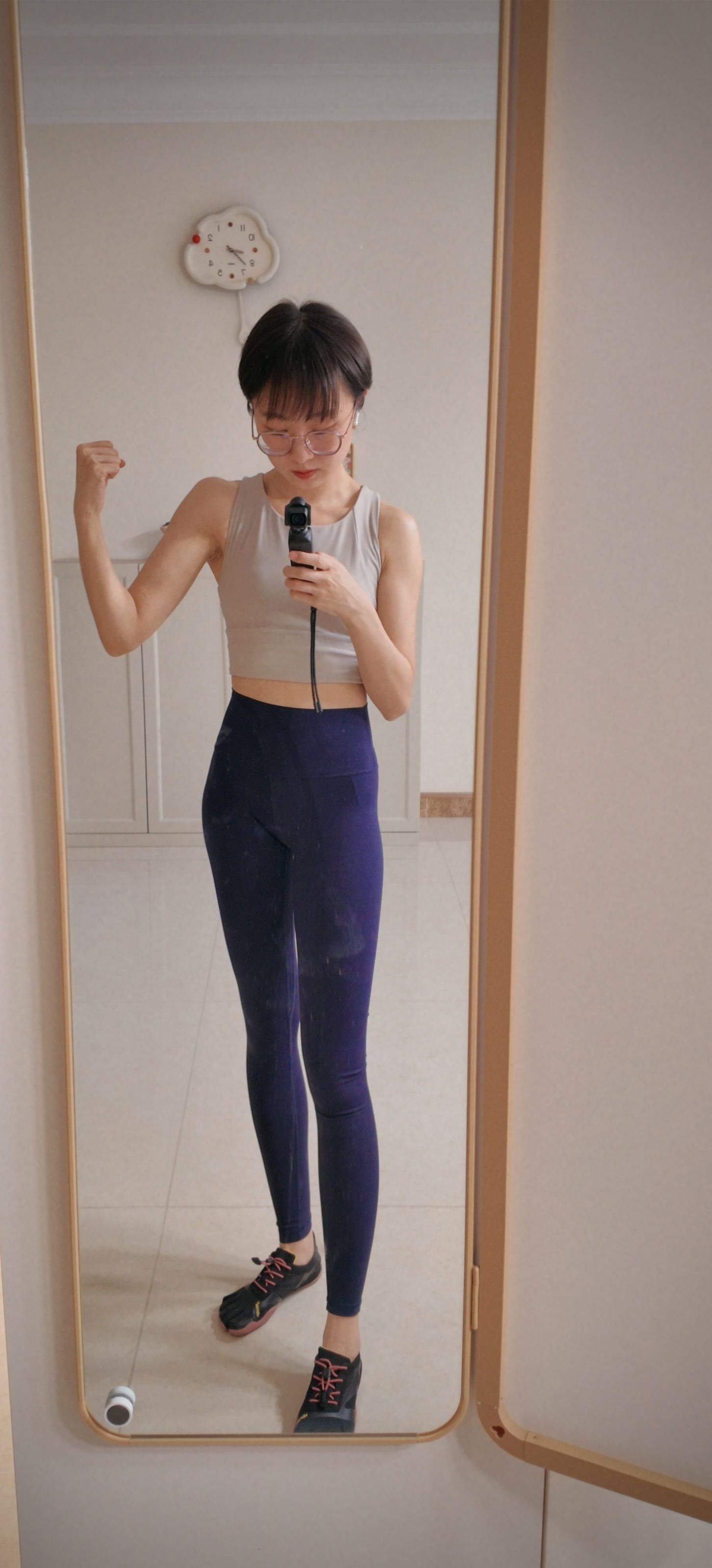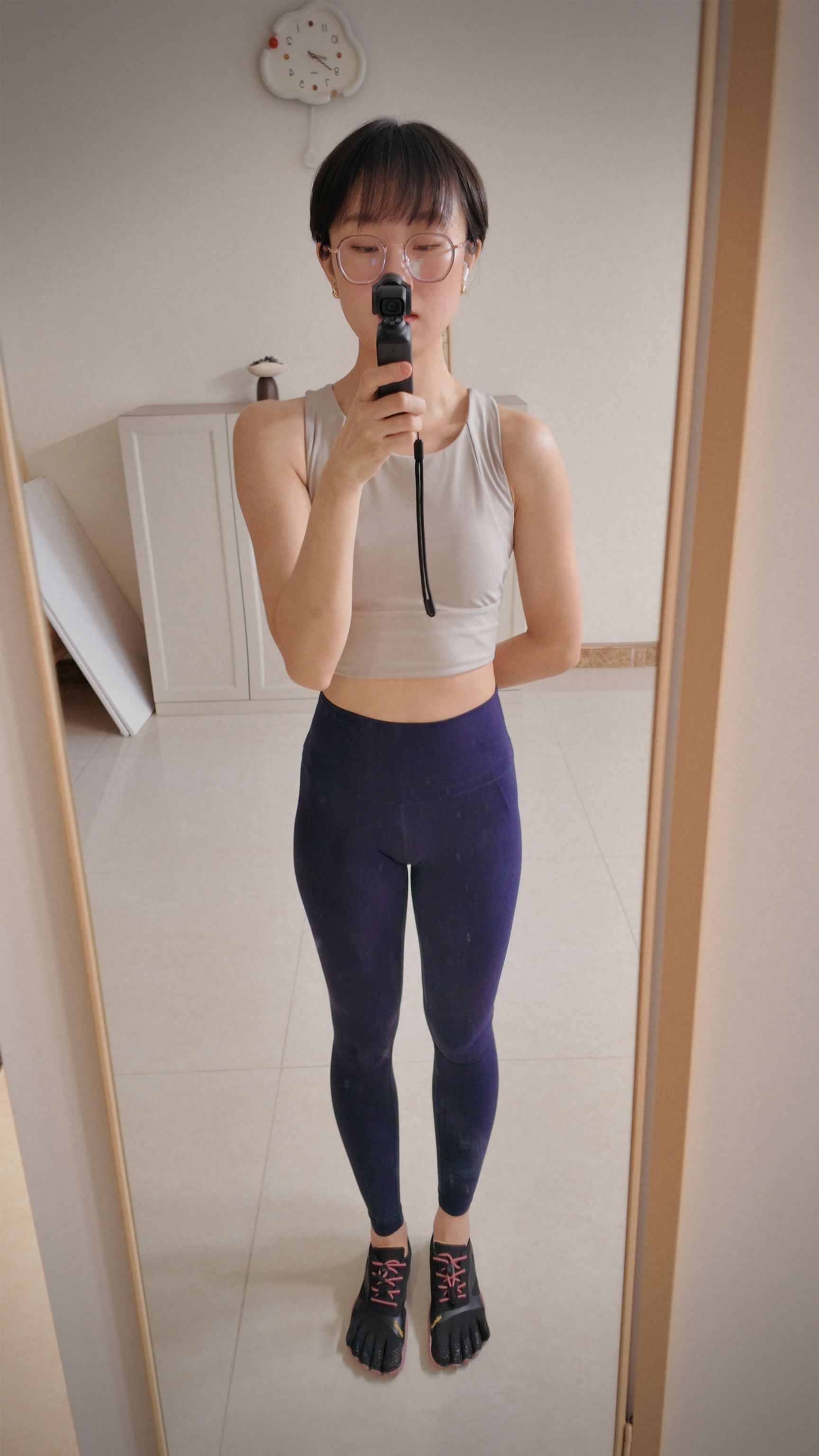分享一套日常轻运动极简穿搭 褪去繁杂配色,用低饱和色系解锁舒适状态 基础无袖运动背心,剪裁利落,透气高弹 日常健身、居家放松都适配,简约耐看不挑人 高弹深蓝瑜伽裤,高腰版型优化身材比例 贴合身形不紧绷,显瘦塑形,活动无束缚感 五指运动跑鞋兼顾抓地力与舒适度 轻便自在,适配多种运动场景 小个子上身整体线条干净利落 黄白皮驾驭冷调色系,低调又显气质 简单利落的运动搭配,治愈日常所有疲惫