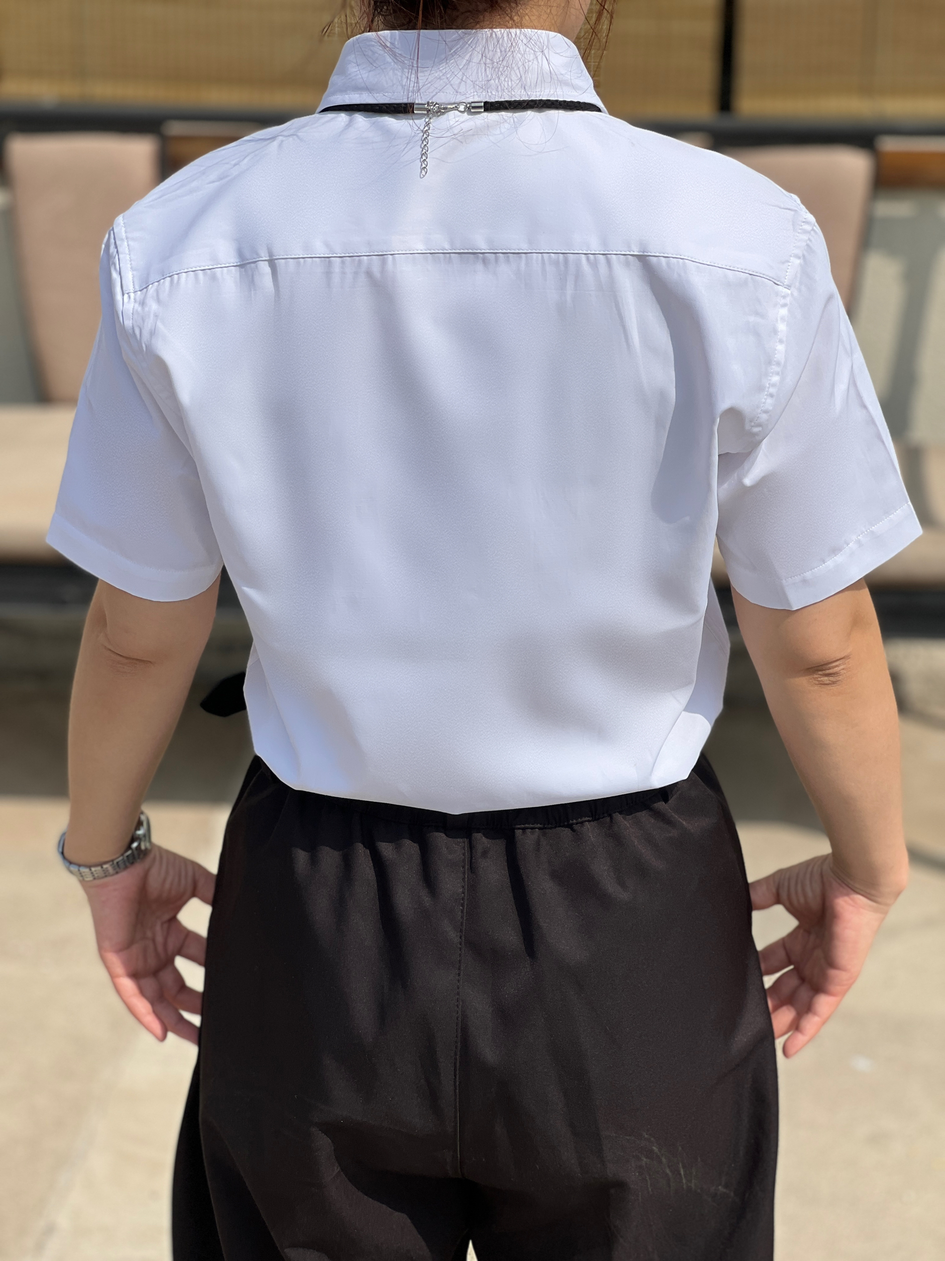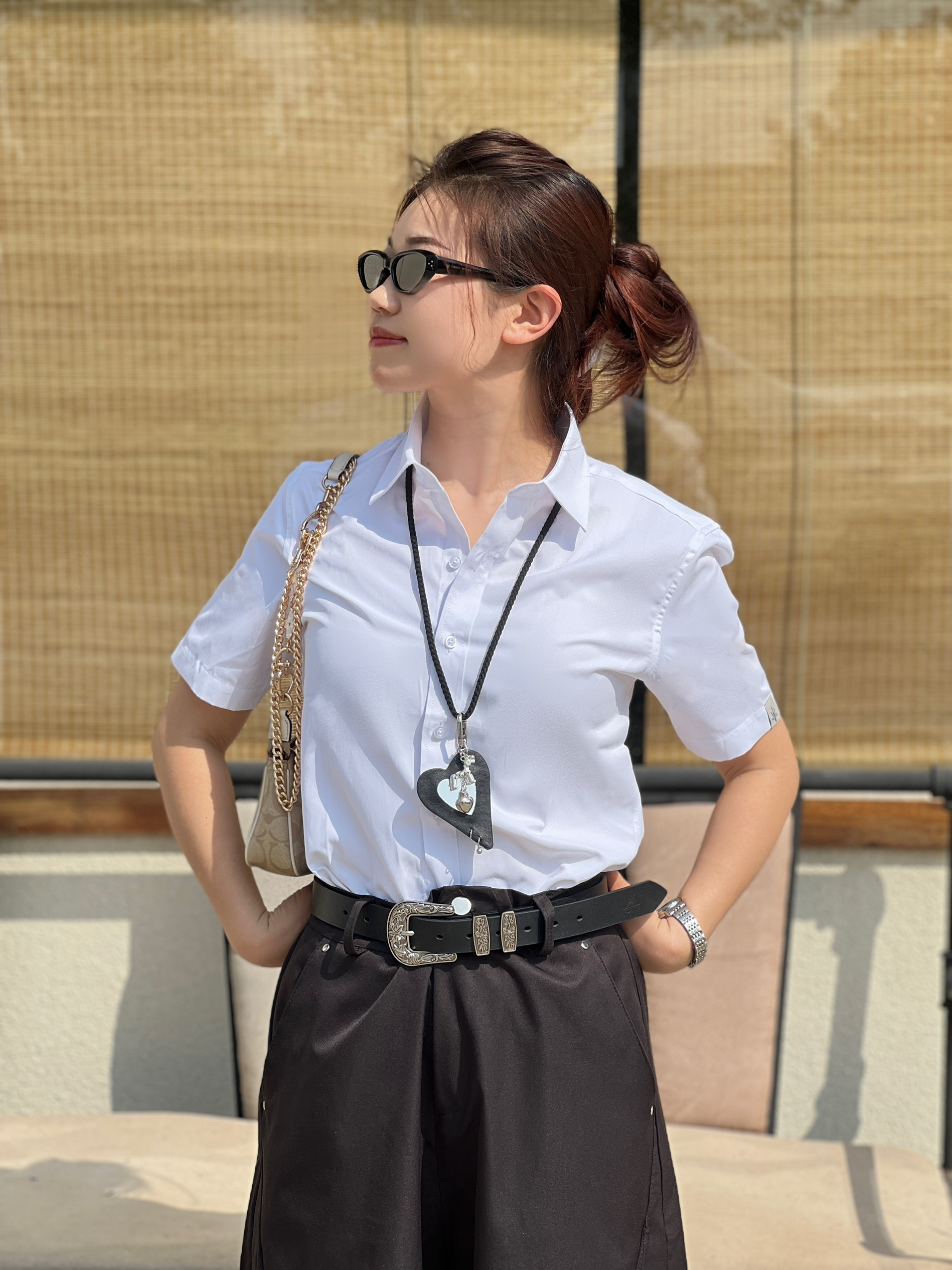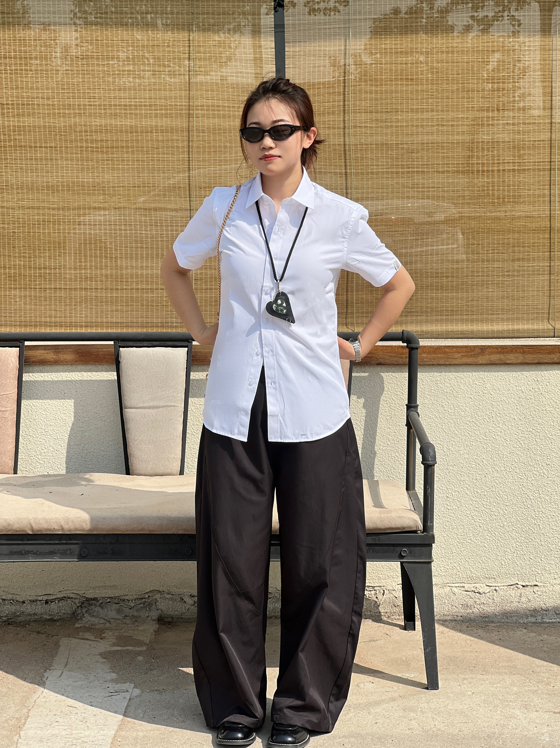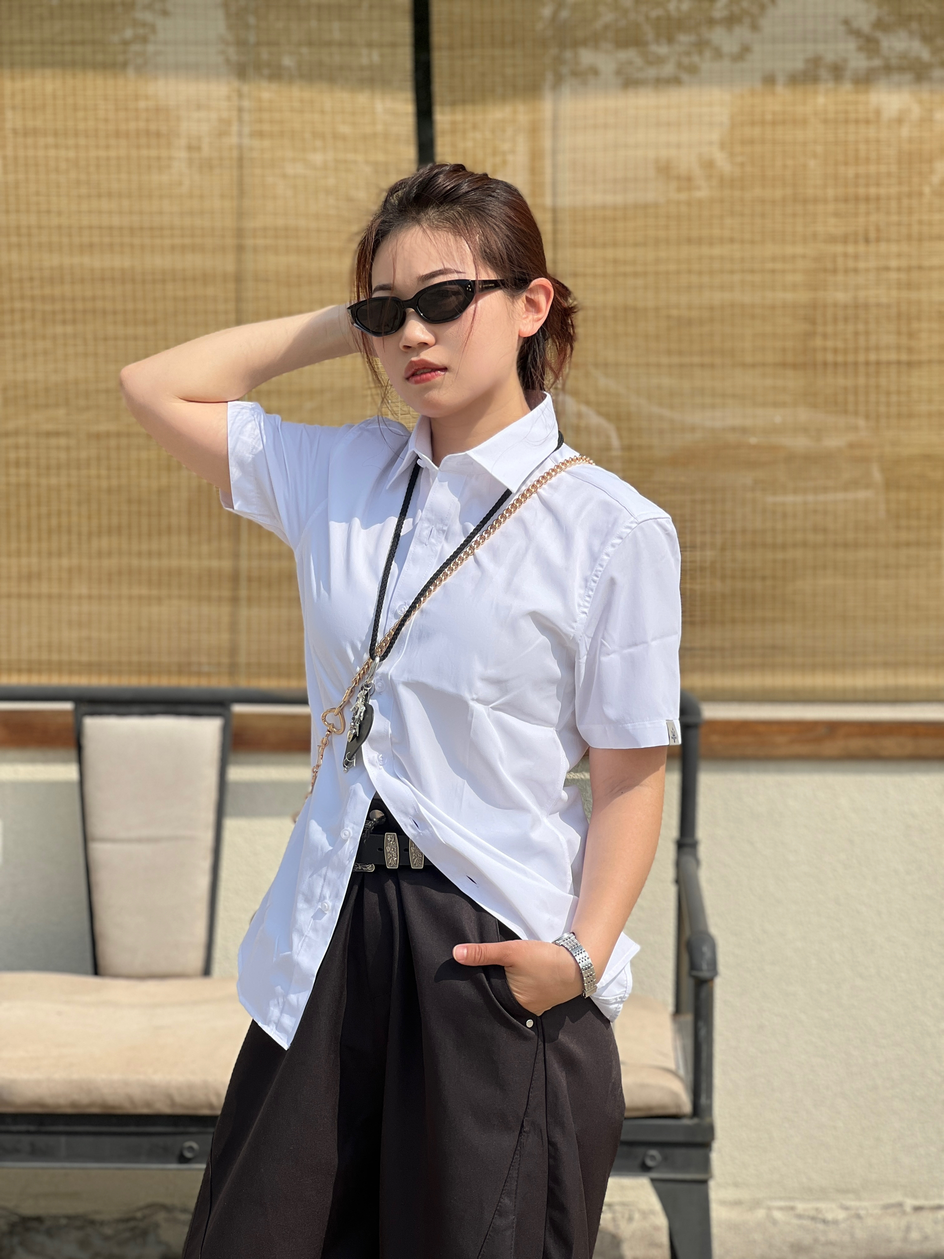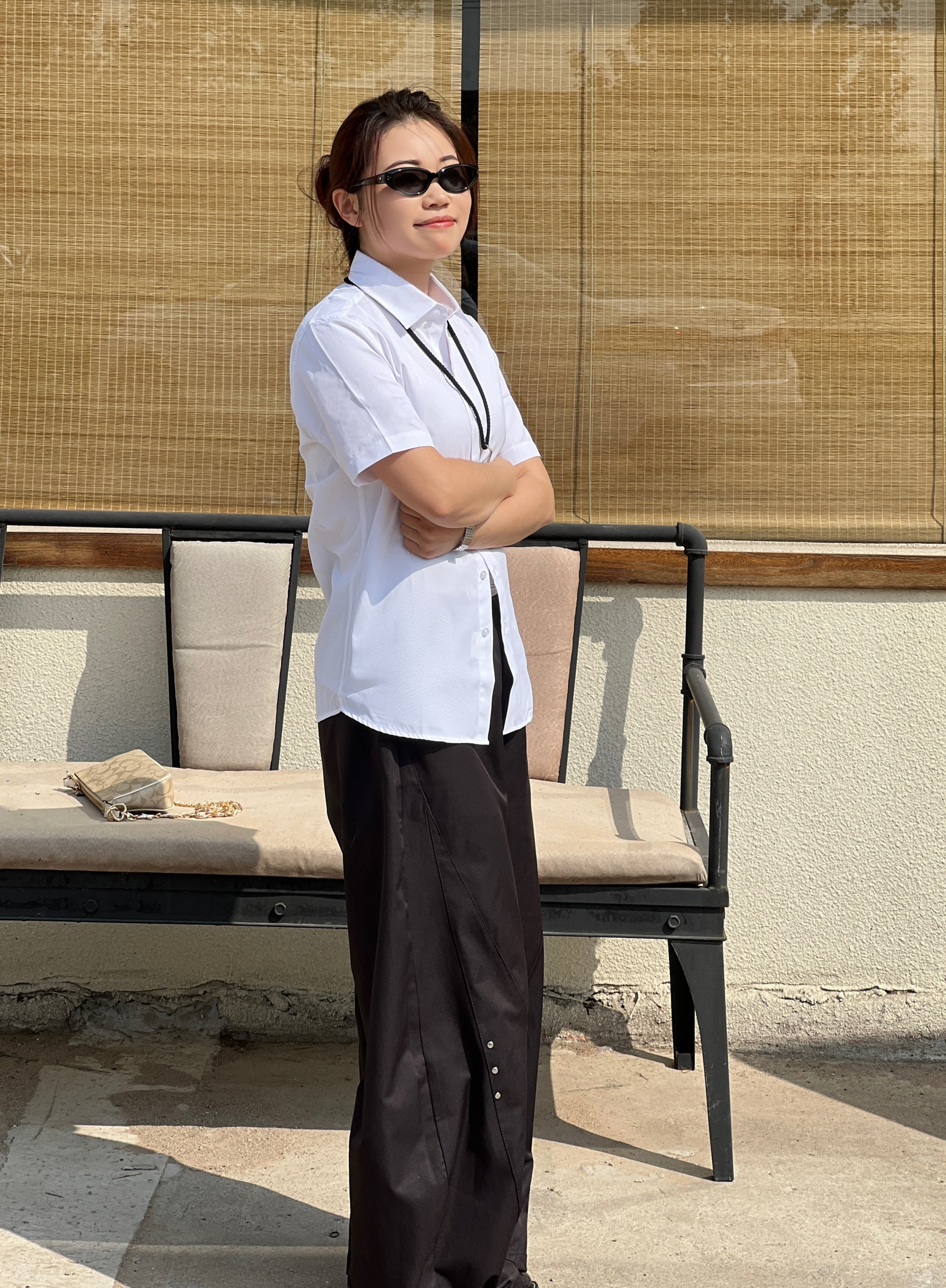 真的拒绝不了这件两位数的短袖白衬衫👔 版型利落又干练 我感觉不软塌也不臃肿 我觉得上身显瘦又有精神 简约纯色设计,百搭不挑人 我身高158cm,体重52kg 穿得M码,修身显瘦效果简直满分💯 基础款白衬衫➕垂感阔腿裤 ⚫️⚪️经典黑白配永不出错 我觉得极简又松弛~