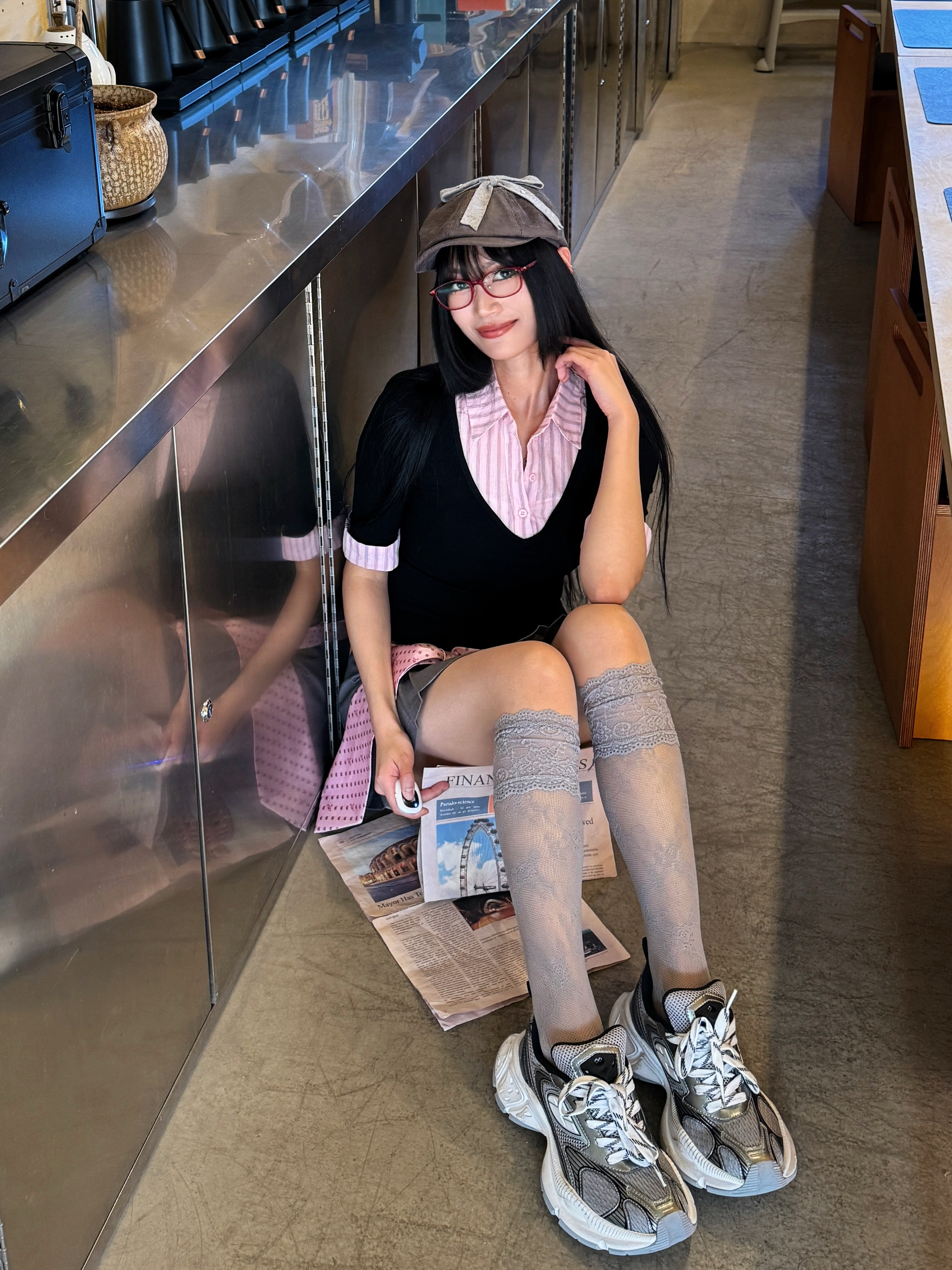 这件三叶草☘️苏翊鸣联名黑T恤 侧边白杠刚好呼应内搭的白色翻领, 胸口和背后的小logo设计很精致, 宽松版型+藏蓝长裤+黑帽黑鞋, 全身只有黑白藏蓝三色,耐看又干净👌 👦🏻:188 | 85 👕:XL 👖:XL