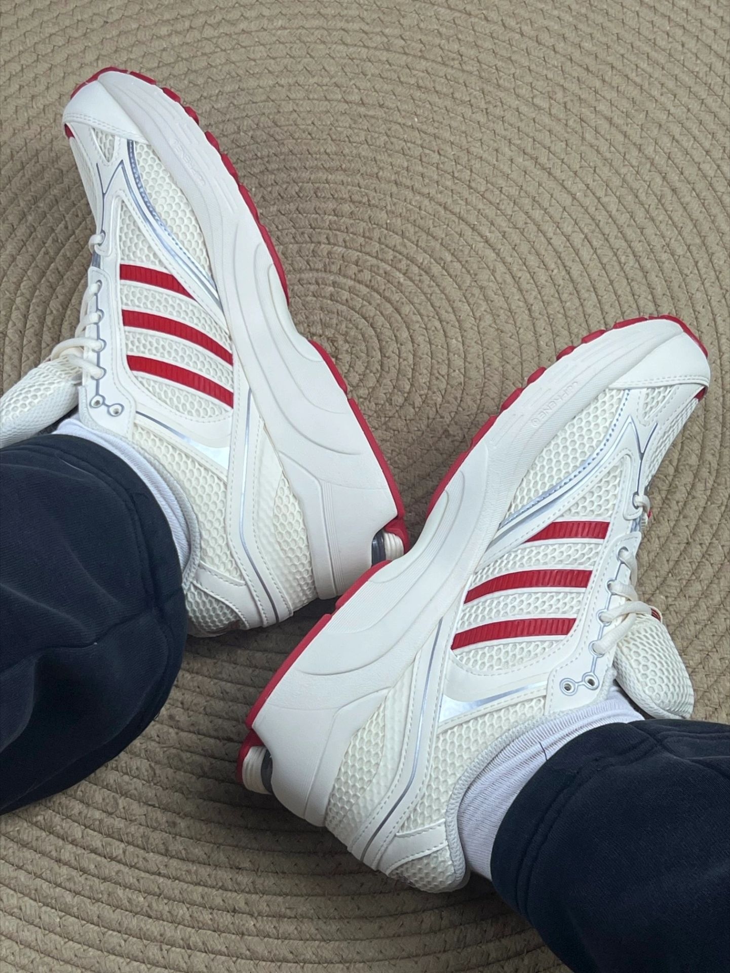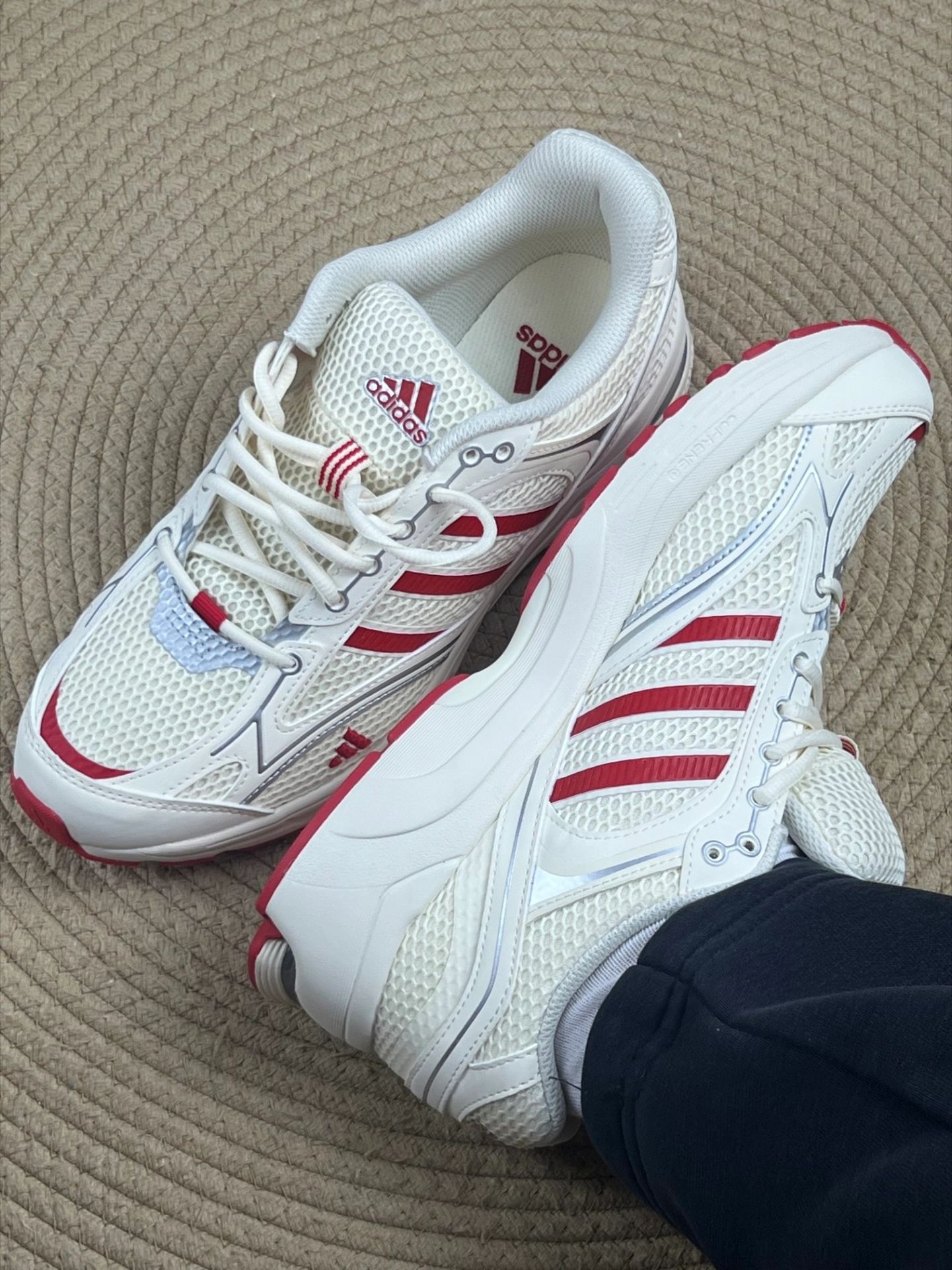 开春必入复古鞋!adidas Spiritain 2000 开箱实测+穿搭技巧#上脚才敢说真话 谁懂啊!这双adidas Spiritain 2000真的把Y2K复古感焊死了!开箱第一眼就被米白+正红的配色戳中,网眼鞋面+三条杠设计,完全是千禧年跑鞋的味道,春季穿清爽又吸睛。 上脚第一感受:轻!网眼材质透气性拉满,开春穿完全不闷脚,鞋型偏修长,对宽脚朋友不算太友好,建议大半码。中底缓震...