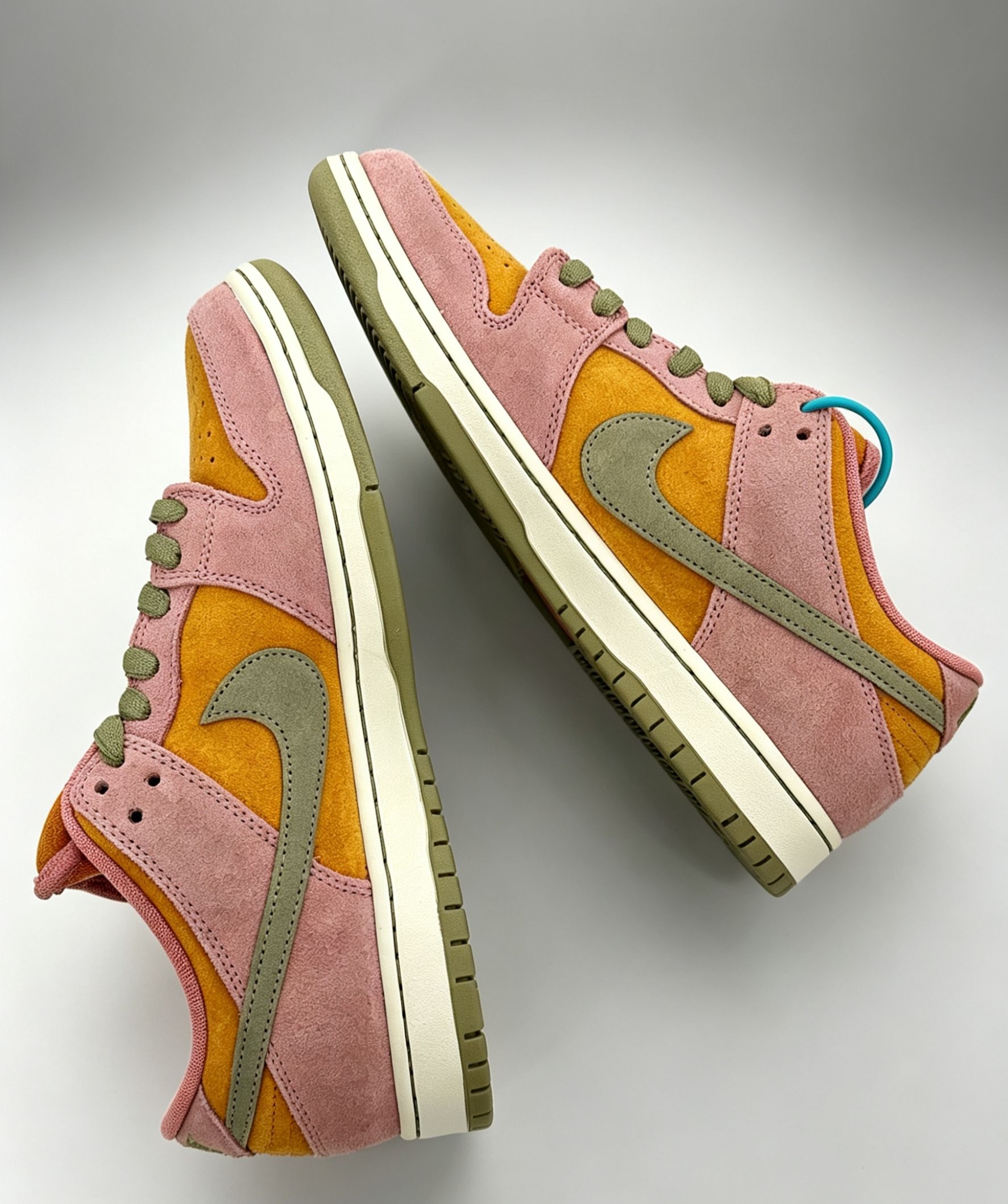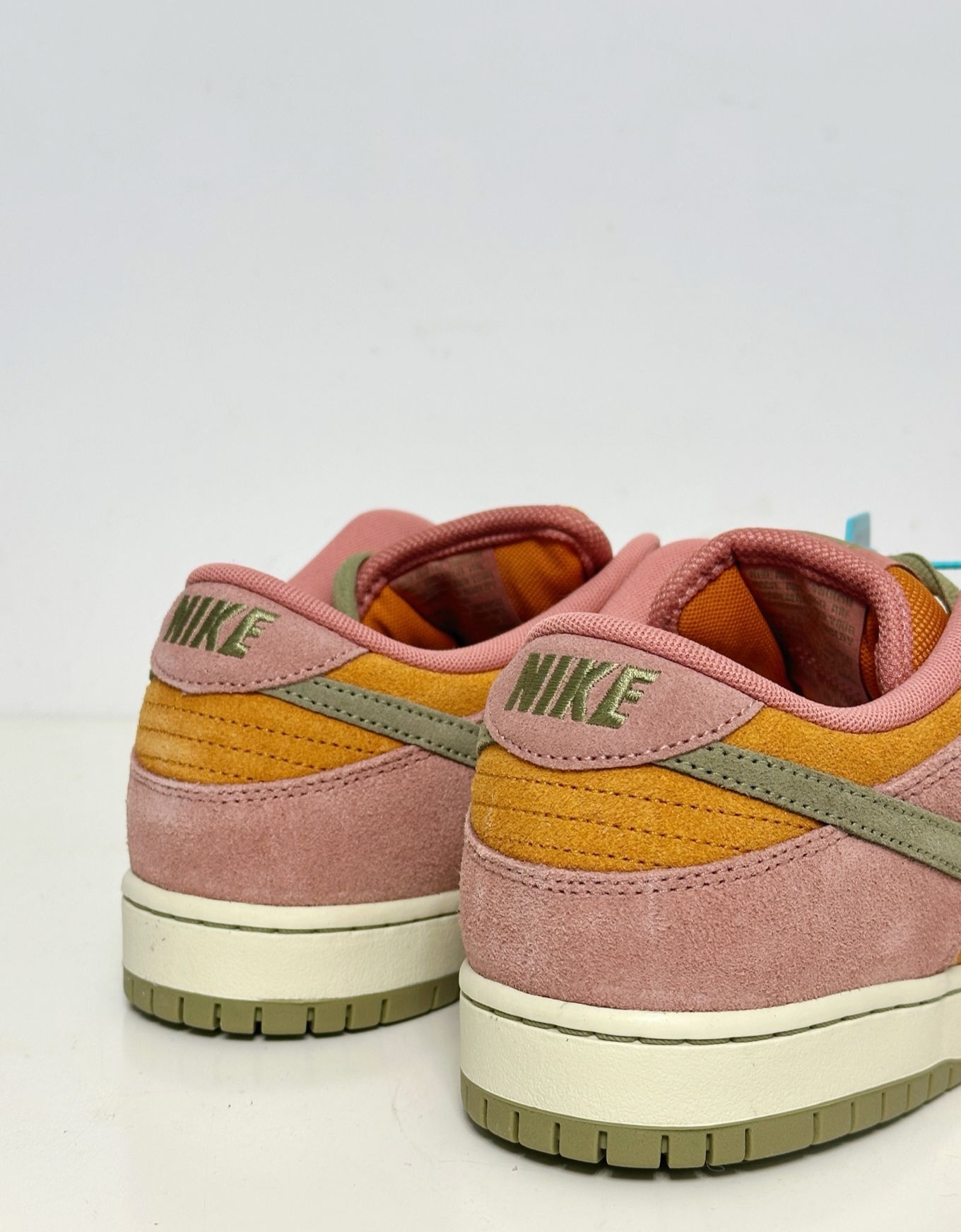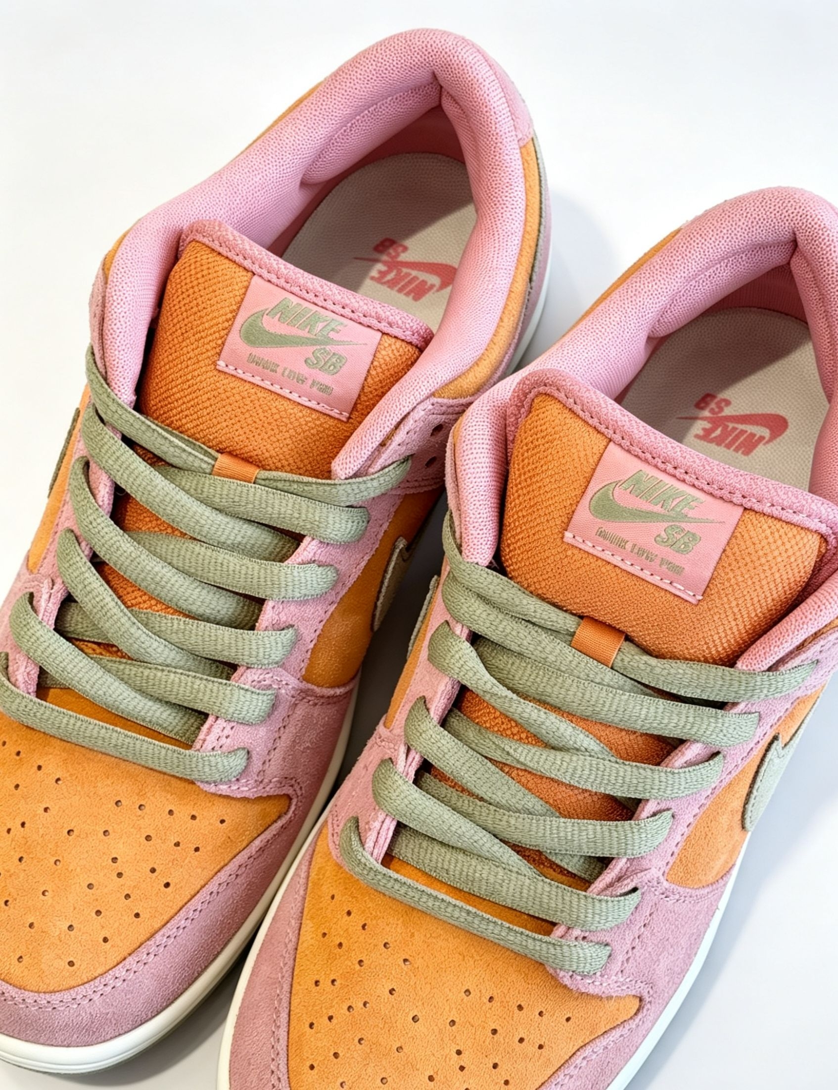 - 颜值:粉绿撞色超清新🍃,春日感拉满,小众不撞款✨ - 材质:麂皮质感好👍,但怕水易脏,打理要细心🧼 - 脚感:SB缓震在线,日常暴走不累脚😌,鞋型偏瘦,宽脚选大半码 - 穿搭:搭牛仔裤/运动裤清爽,配裙子超甜👗,百搭不出错 - 总评:颜值高、性价比可,春夏必入👟,打理麻烦但值得!