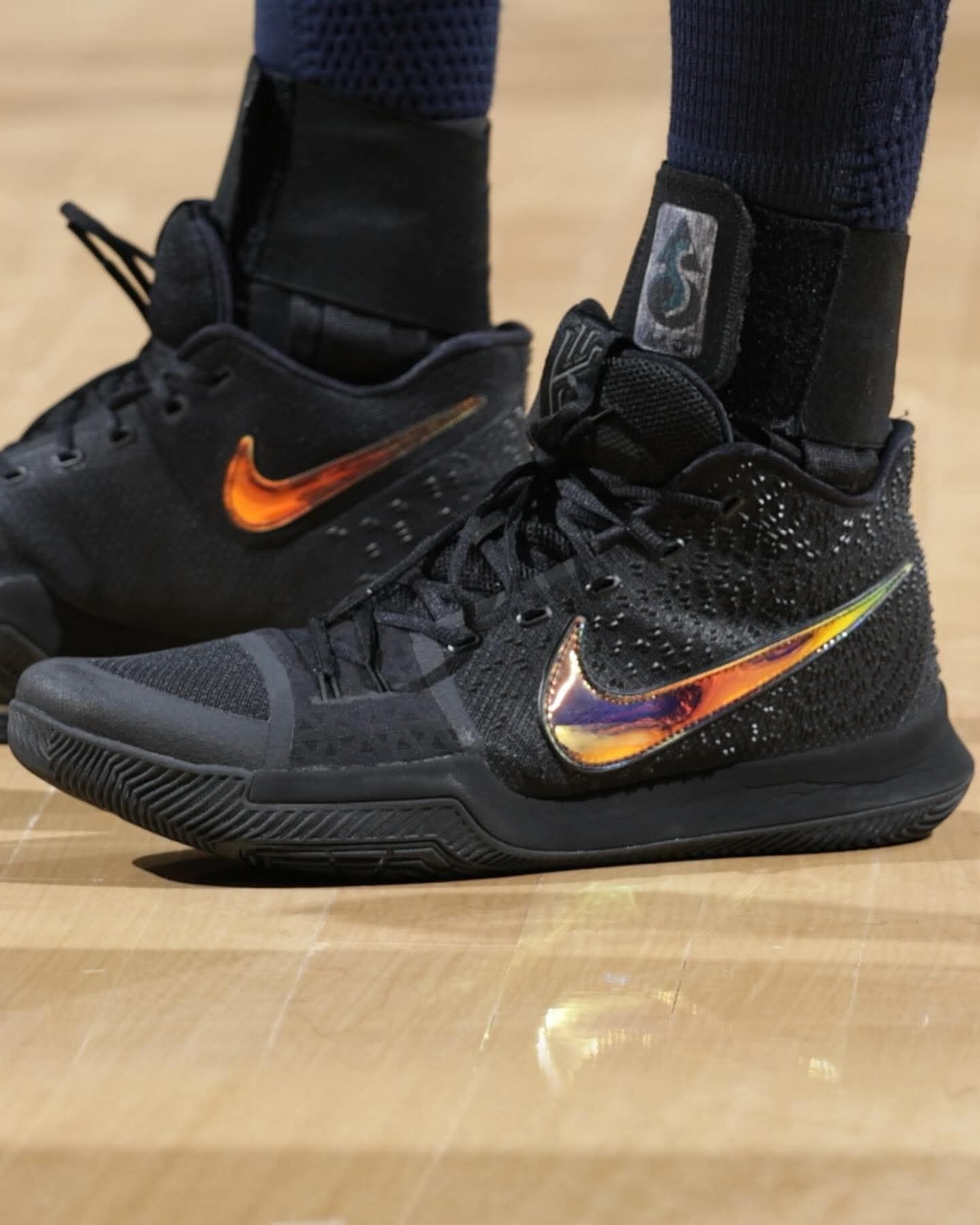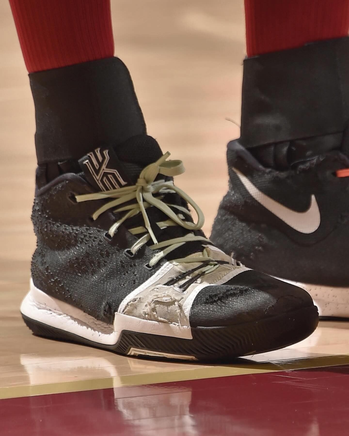 谁懂啊!贾莱特·阿伦对Kyrie 3的执念真的刻进DNA里了😭 从布鲁克林时期就死忠这双,前后穿了7双黑魂配色,一双能打一整个赛季,把全网库存都快穿空了,如今依旧是他的赛场首选! 2016年的欧文3代,前掌Zoom+曲面抓地模块,贴地感和包裹性放到现在依旧能打,难怪能成为阿伦九年不变的信仰战靴。 从青涩新秀到骑士内线铁闸,脚下这双Kyrie 3,陪他扛过了无数次卡位、起跳和关键回合,是真正的“赛场...