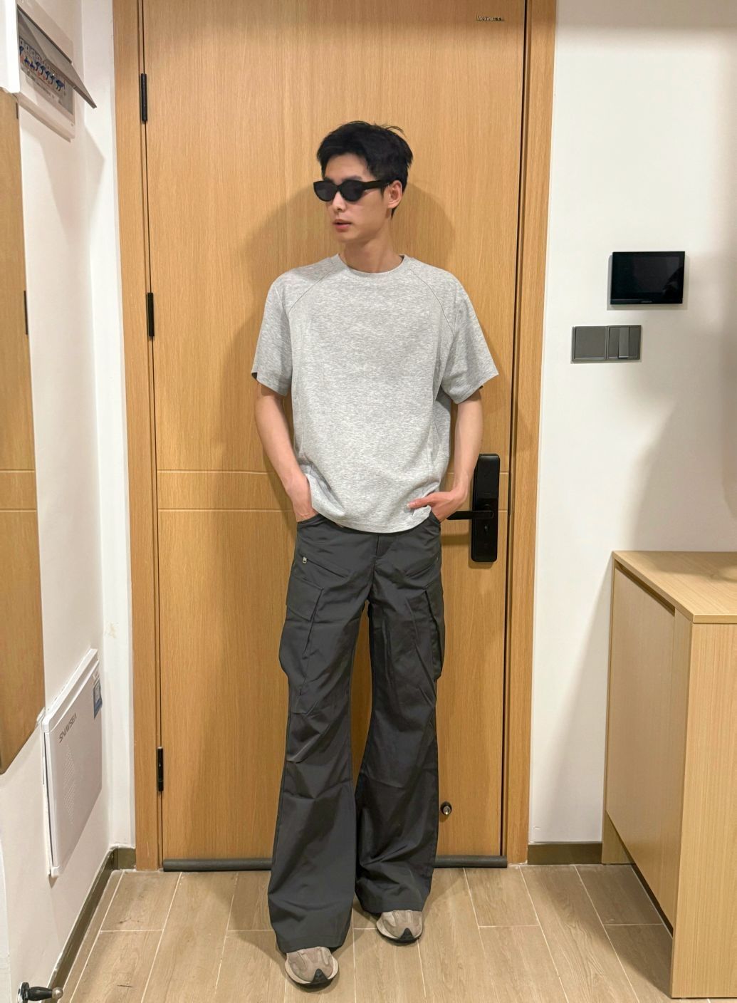 终于整理好出门的穿搭啦✨ 浅灰T恤+深灰工装裤的组合,每一处都透着随性不费力的清爽感📸 特意选了舒服又显比例的搭配,不管是和朋友见面还是短途出行,都能自在又好看~ 宽松的浅灰T恤上身干净利落,不挑身材还自带慵懒少年感 搭配深灰阔腿工装裤,视觉上直接拉长身形,利落的版型又很显精神 墨镜一戴氛围感直接拉满🕶️ 脚踩复古运动鞋,走路自在又轻松,出门逛一天也完全不费劲 简单的搭配,却自带清爽帅气的气质,整...