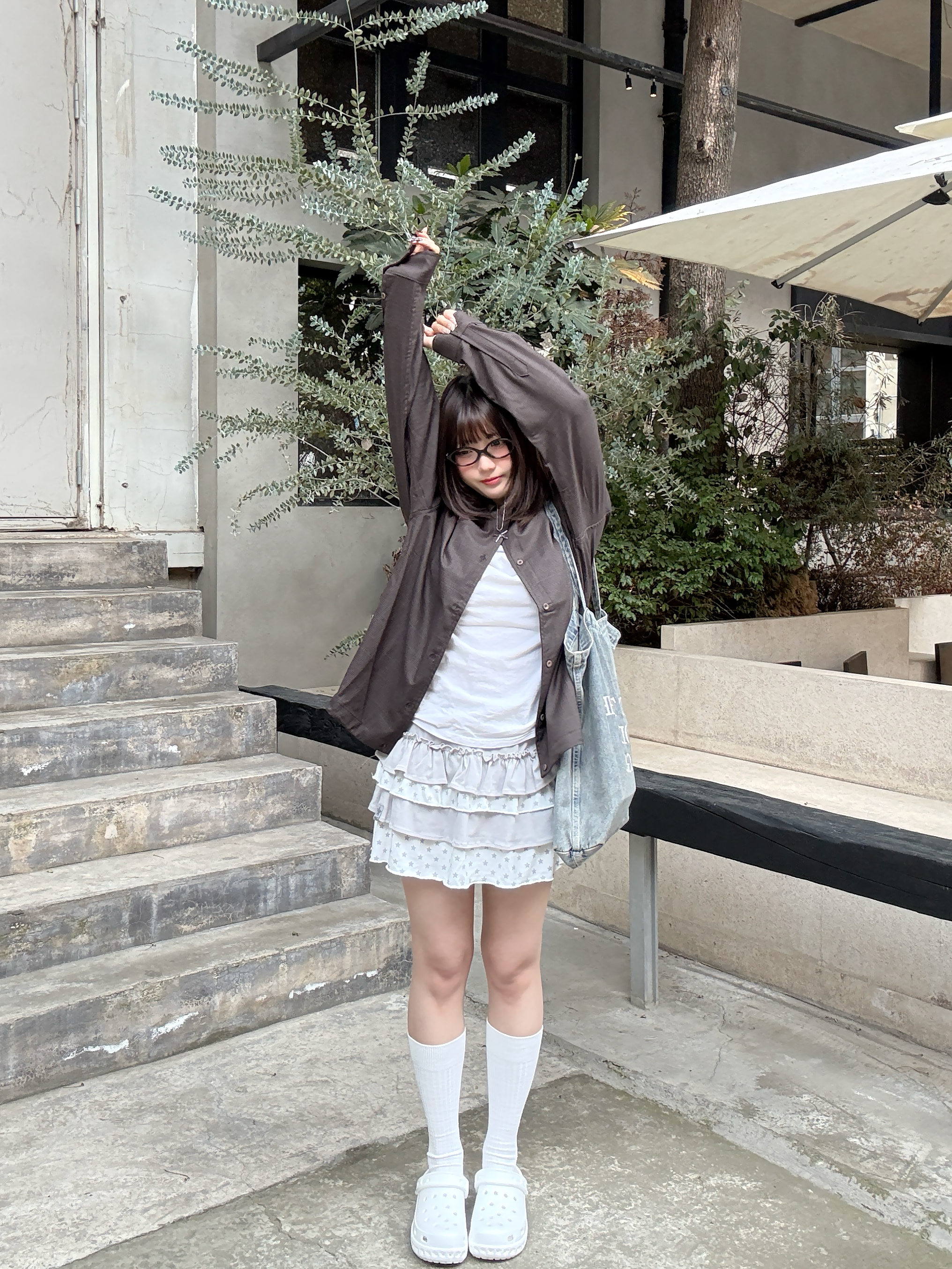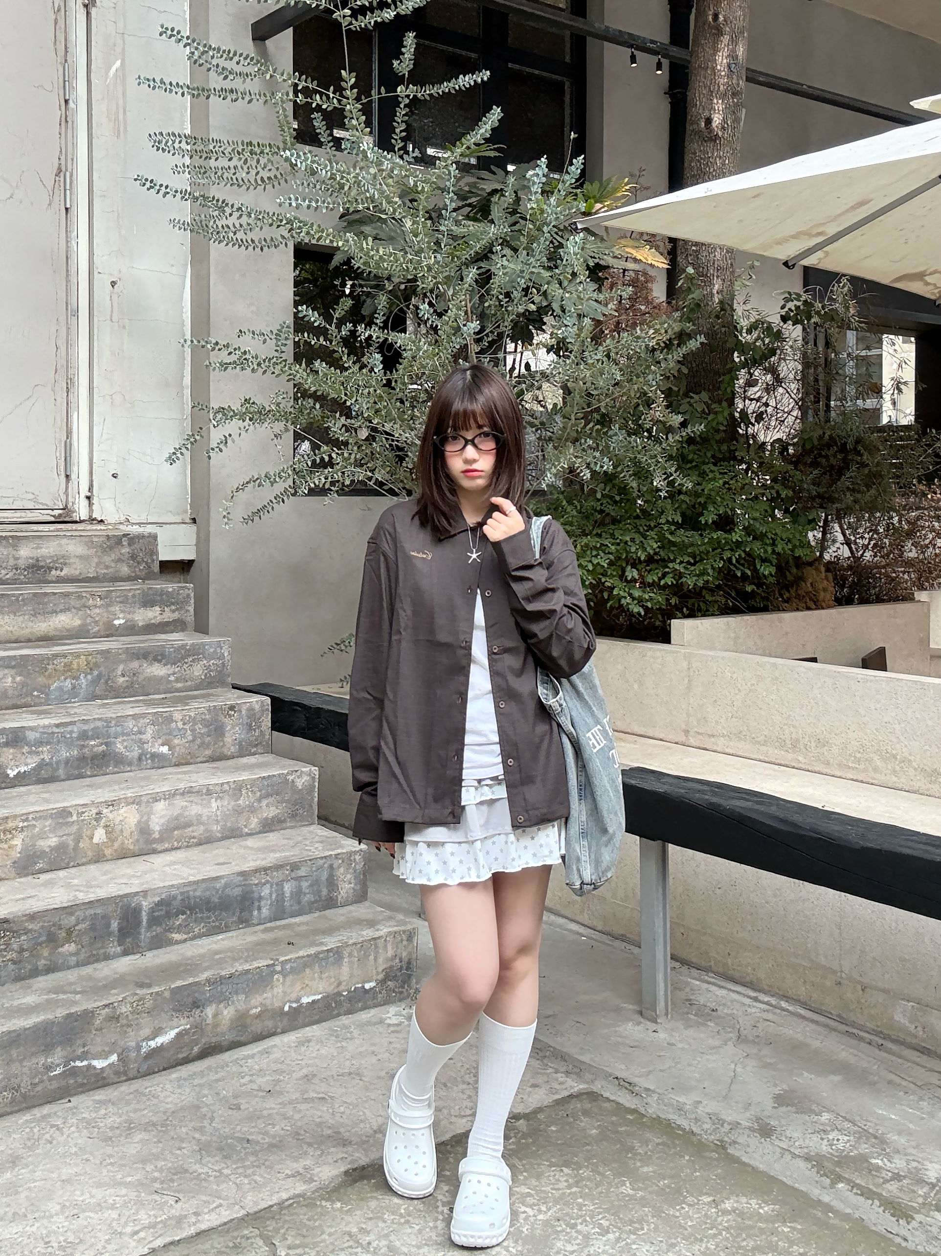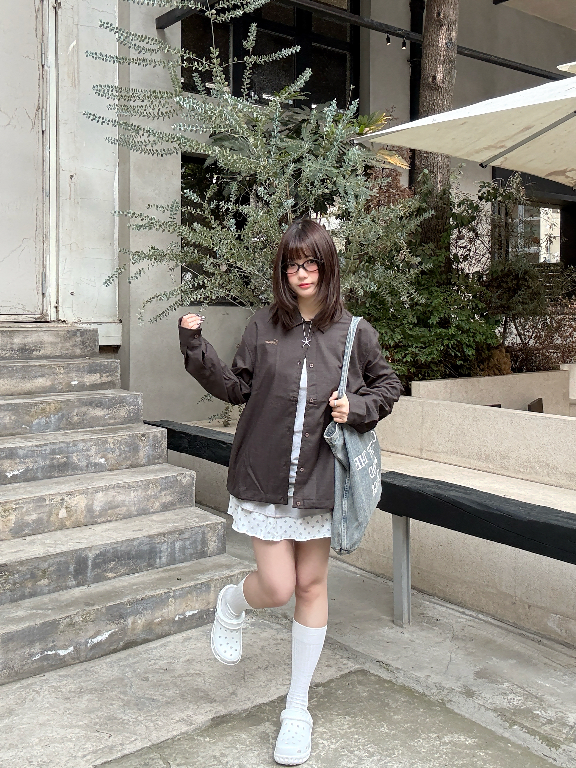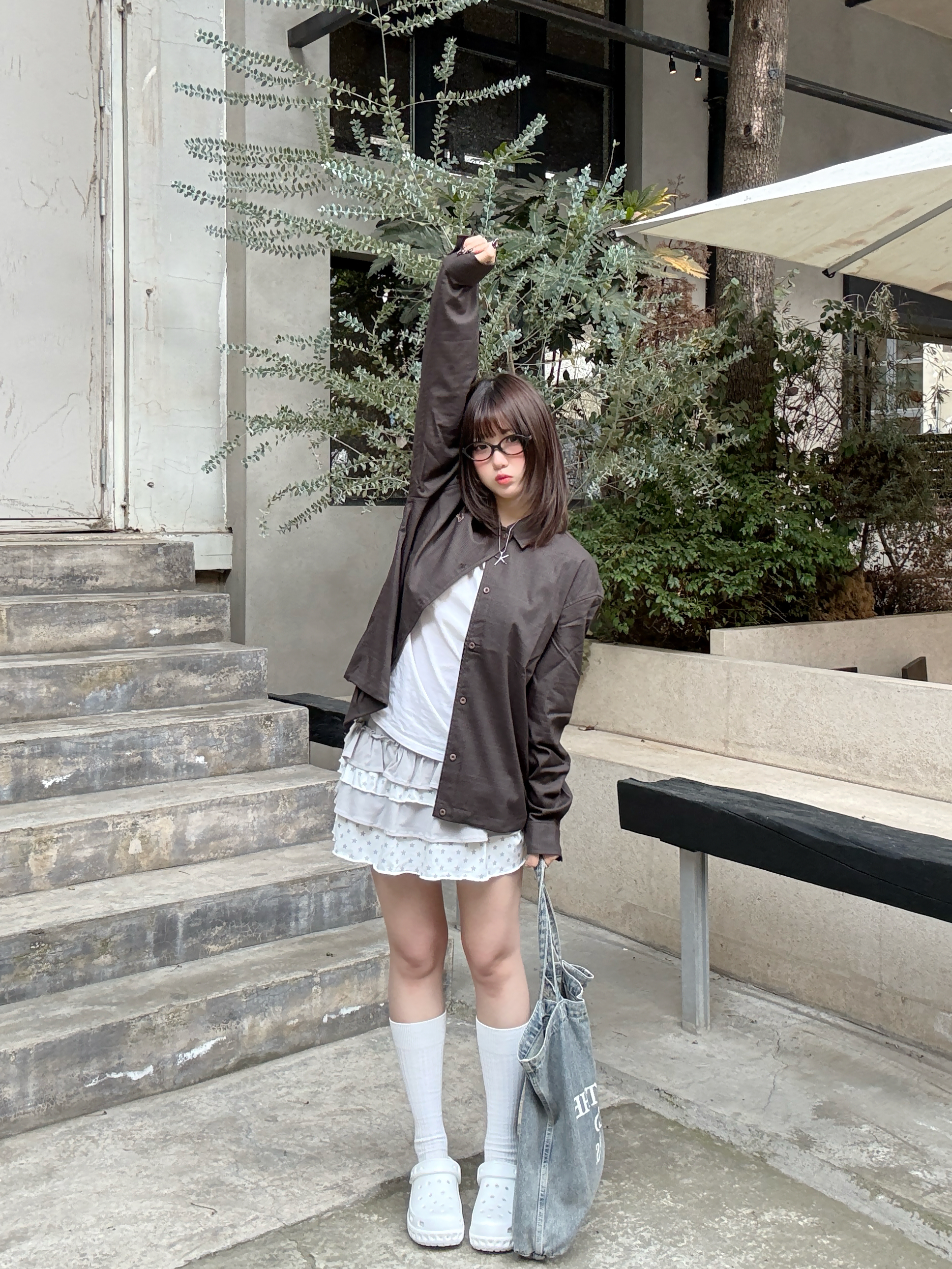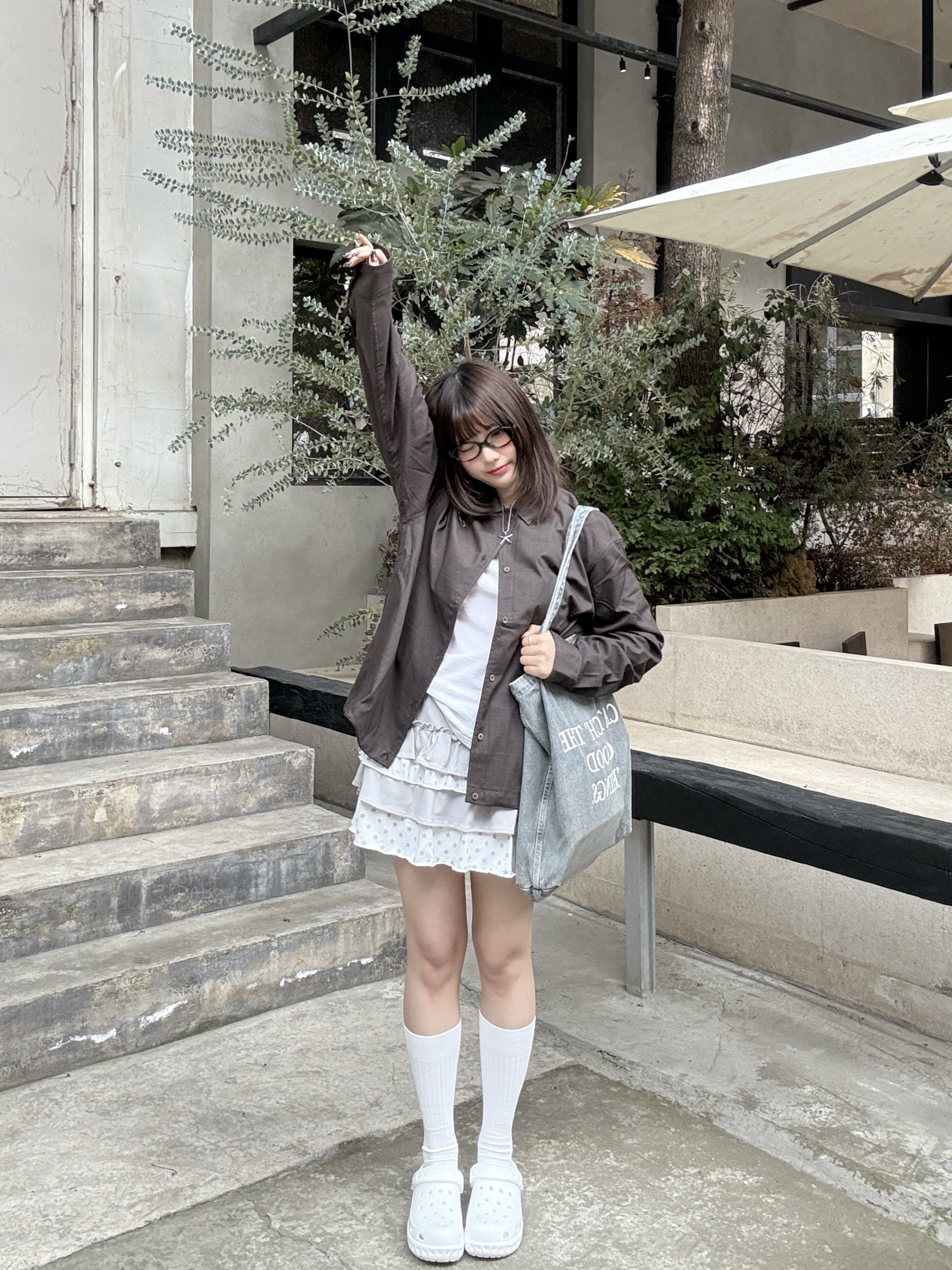 offduty风的精髓,就是毫不费力的舒服感。 深棕衬衫搭叠穿蛋糕裙,软乎乎的白袜+洞洞鞋,把慵懒随性焊在身上。不用刻意凹造型,下班出门随便一套,就是松弛又耐看的日常感~