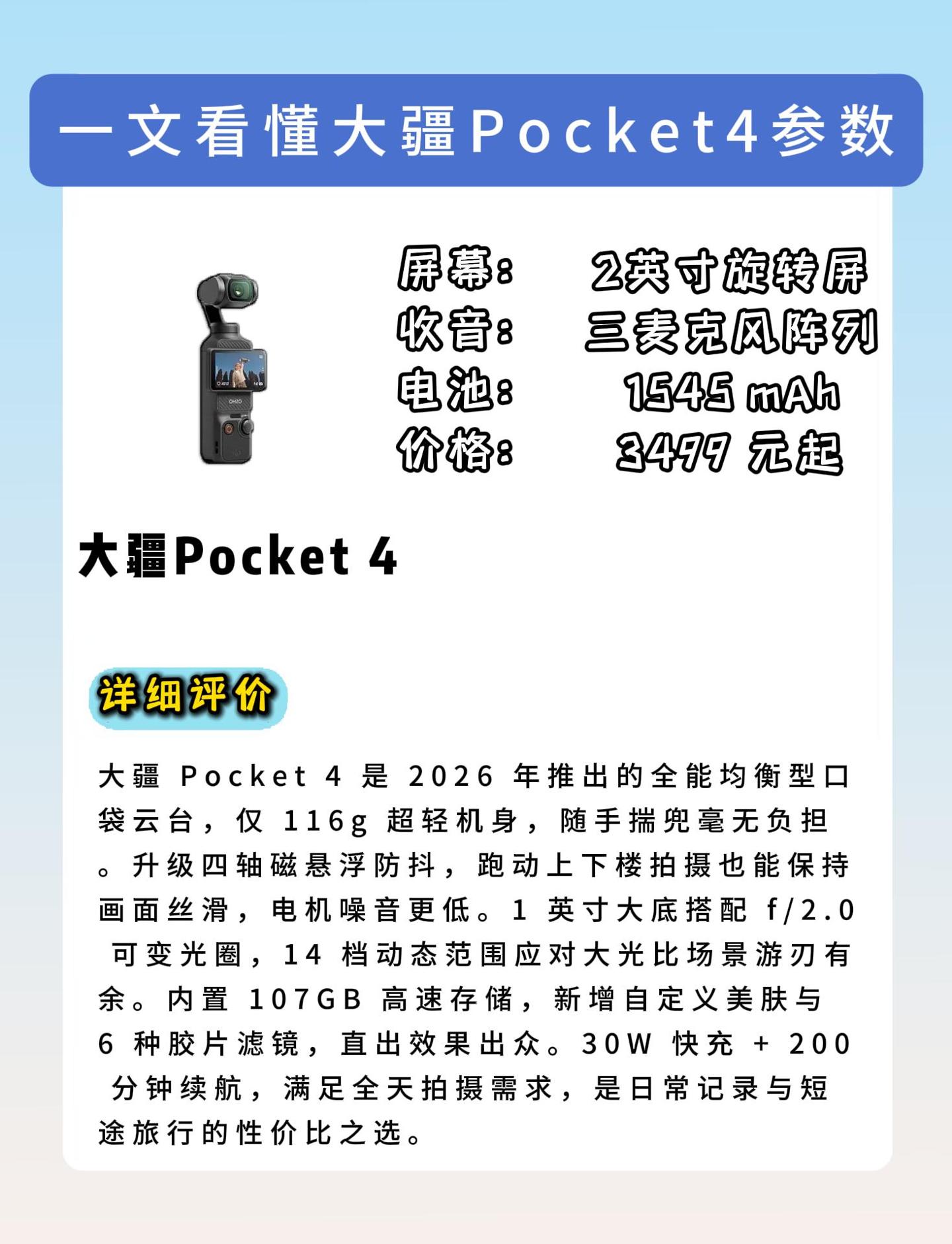 本篇笔记关联了DJI/大疆 OSMO Pocket 3 手持云台相机 便携 美颜 摄像 横竖拍 旋转屏 vlog 全能套装、DJI/大疆 OSMO Pocket4 口袋云台运动相机 Activetrack 7.0智能跟随 14档动态范围 内置107GB高速存储 标准套装、DJI/大疆 OSMO Pocket 3 手持云台相机 便携 美颜 摄像 横竖拍 旋转屏 vlog 标准套装等商品,为用户提供真实的使用体验和购买参考。