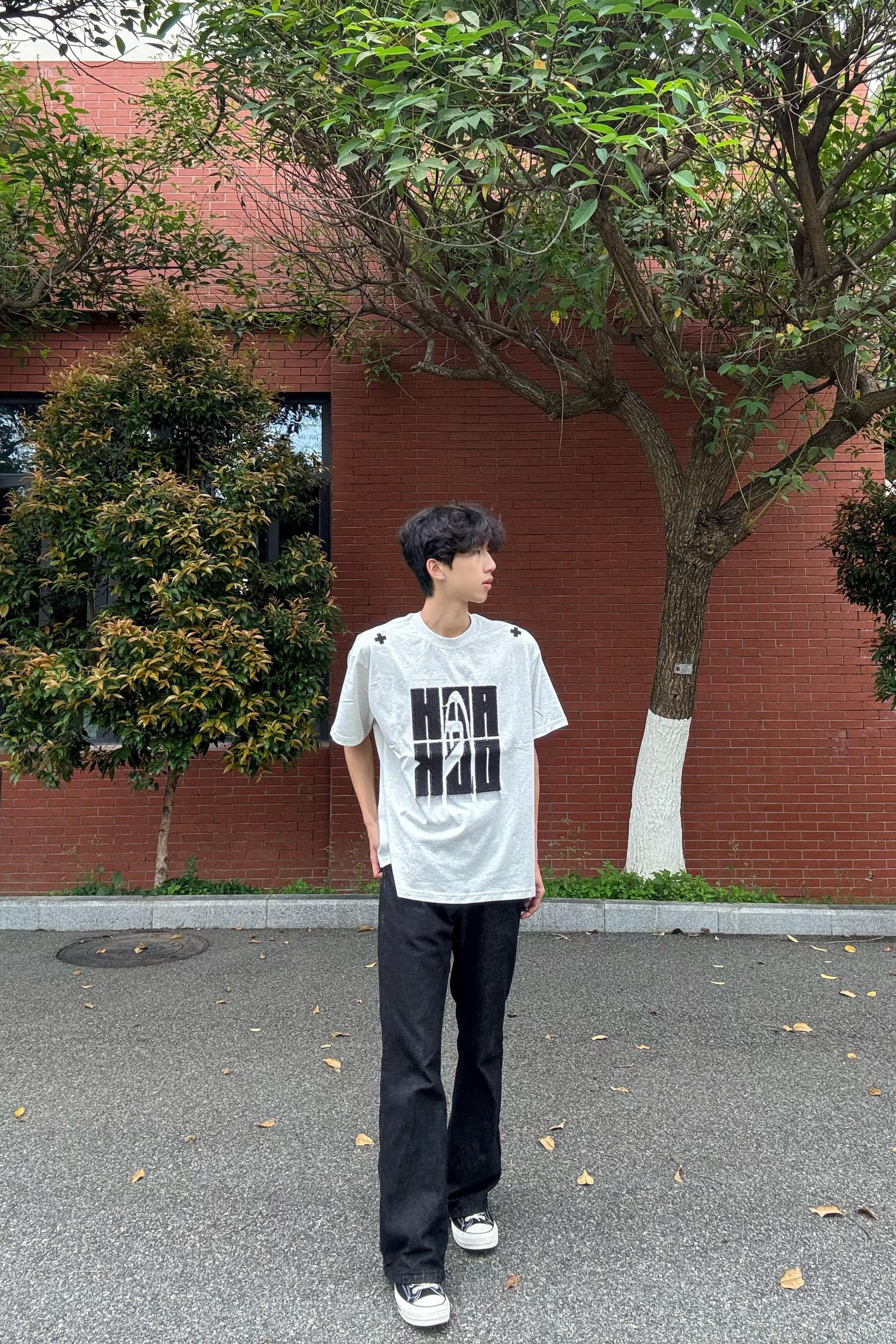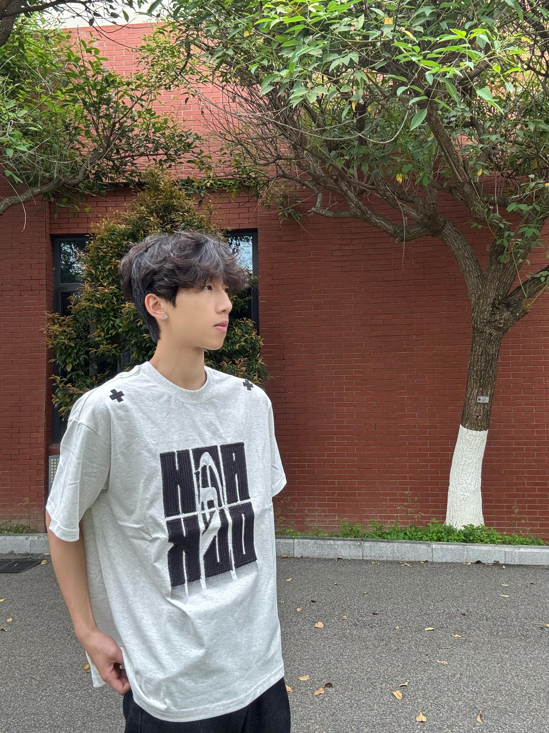 谁懂啊!这件浅灰色T恤真的把美式街头风焊在身上了! 胸前的重工刺绣字母质感超绝,不是廉价印花,摸上去立体又有分量,穿久了也不怕开裂。 肩膀的十字小刺绣是点睛之笔,低调又有设计感,告别路人感。 面料是230g重磅纯棉,厚度刚好不透肉,夏天穿透气不闷汗,洗了几次也没怎么变形,细节控狂喜! 浅灰色真的巨百搭,搭黑裤子就是少年感天花板,随便一套出门都不用费心搭配,学生党闭眼冲!