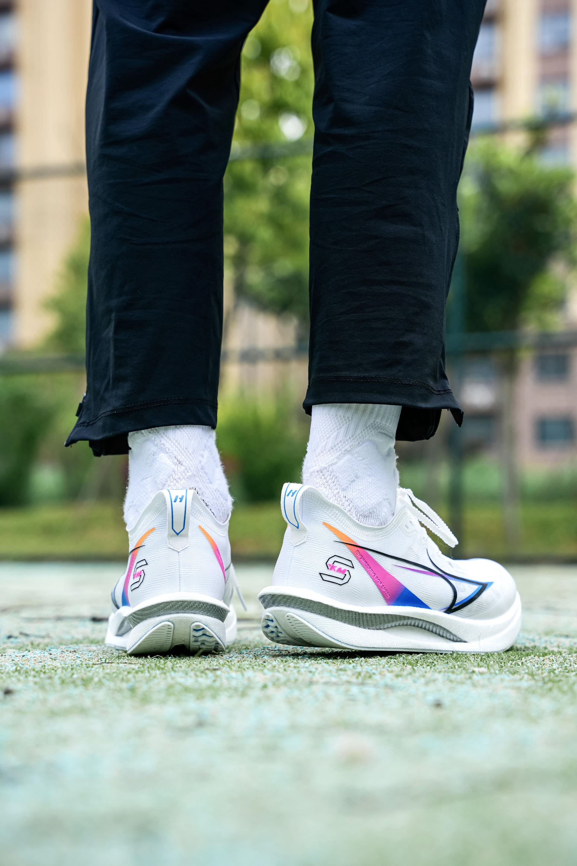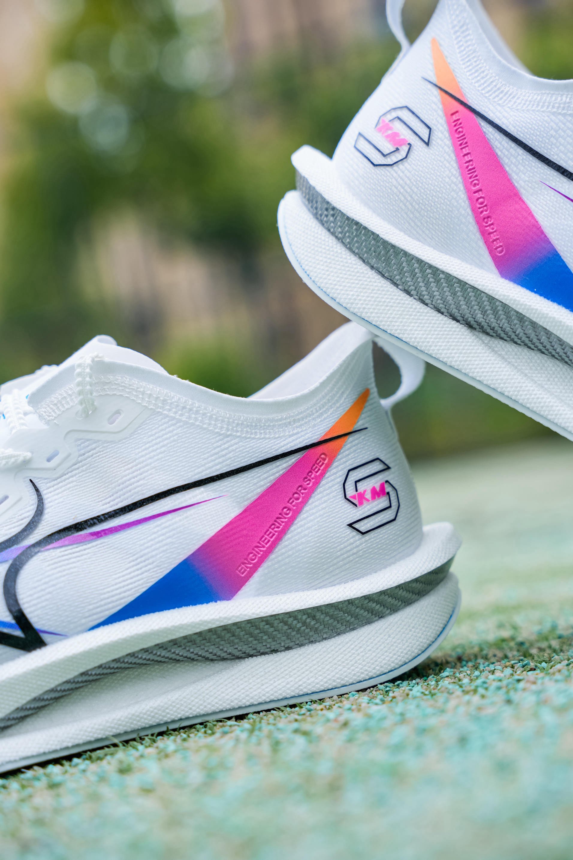 海尔斯KM5拿到手了,上脚体验了几天感受如何一起来看: 首先配色白为主 加入了蓝紫彩色点缀,我个人是蛮喜欢这个设计的,上脚也很好看! 中底有一块全掌碳板 后跟足弓处有做上翻,这块碳板刚性还是挺强的!前掌反向拱形设计 ,我在跑步时能明显给到发力,中底材质是超临界一体 但给我120斤体重的脚感并不明显,我认为是需要一定的驾驭门槛! 长距离跑步时足弓的支撑依旧稳定够用,尺码我建议大一码选择,体考、竞...