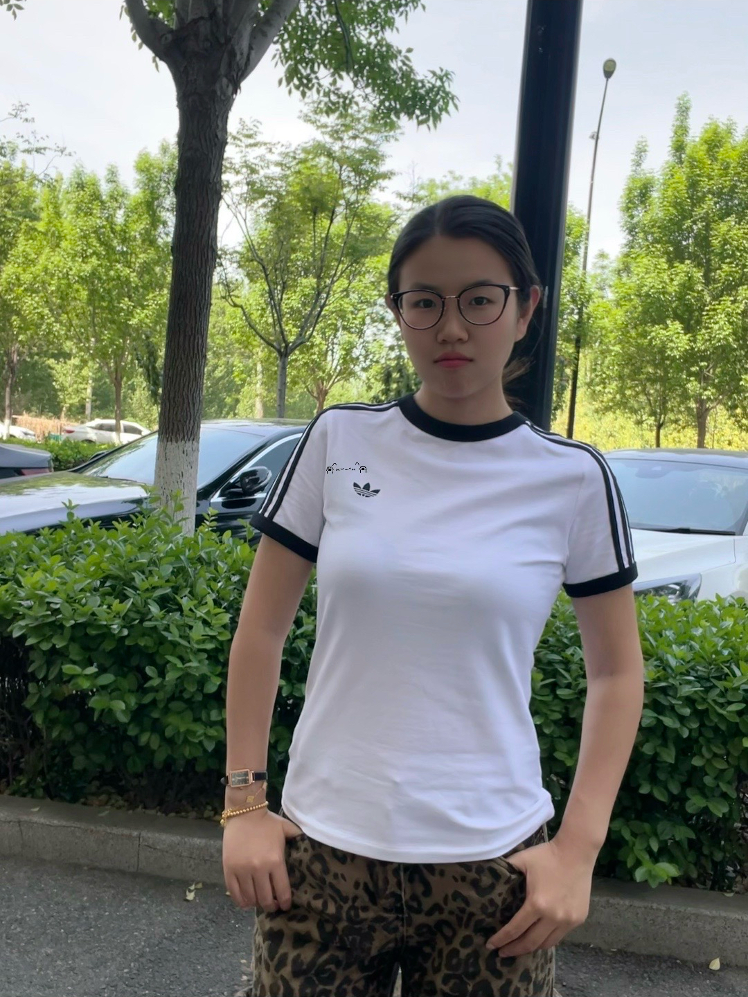 163/110,我选的M码,上身效果刚刚好!不松垮也不勒肉,微宽松的版型把腰腹的小肉肉都藏住了,正肩设计还能把肩线拉得很利落,完全不显壮。 经典的黑白撞边+三条纹设计,美式复古感直接拉满,胸前的小logo低调又有辨识度,不会像大logo款那么浮夸。面料是软软的纯棉,夏天穿透气不闷汗,洗了两次也没变形掉色,做工很扎实。 搭高腰牛仔裤、运动短裤、百褶裙都超合适,随便一套就很有韩系休闲那味儿,懒人出门全...