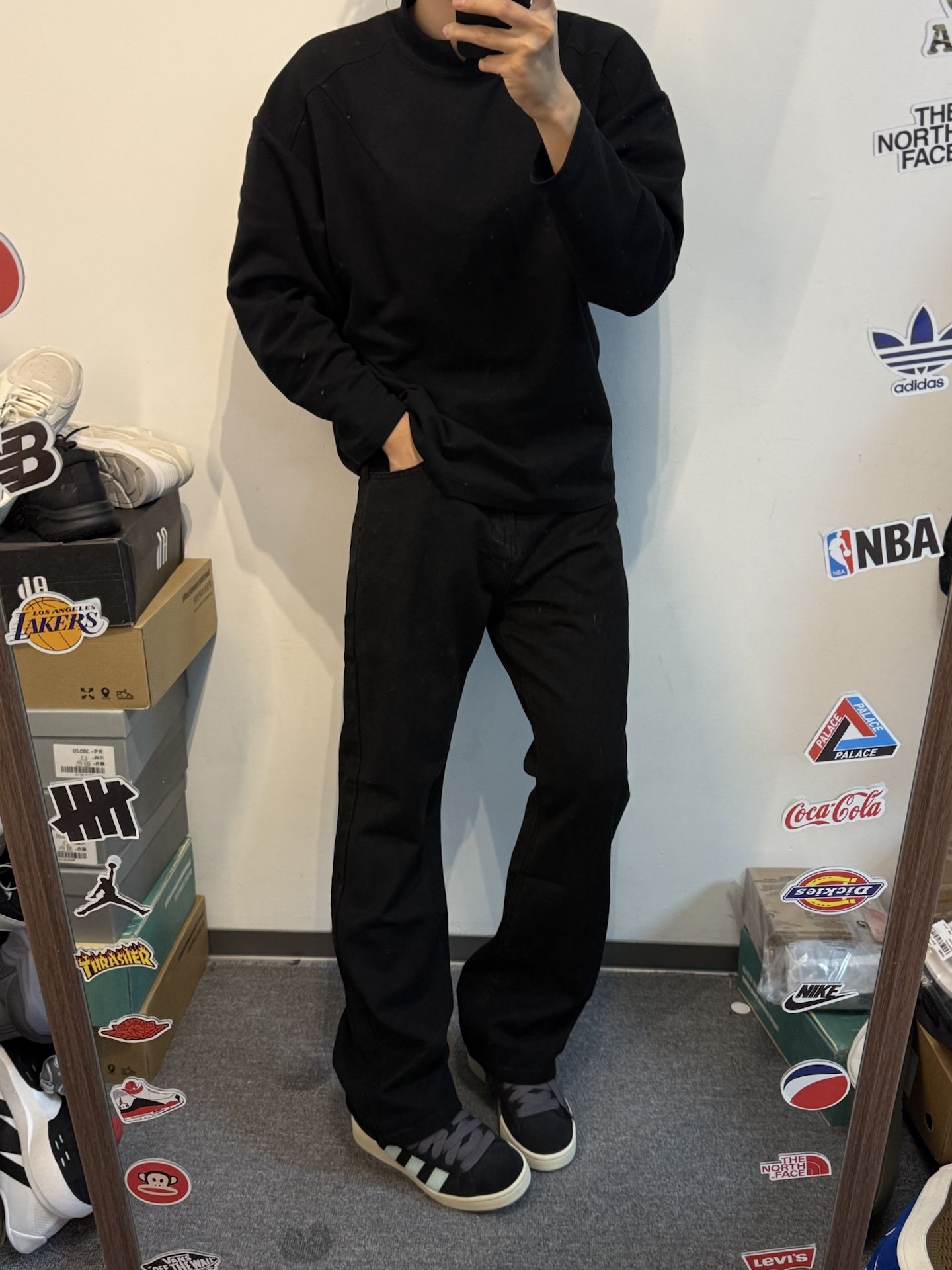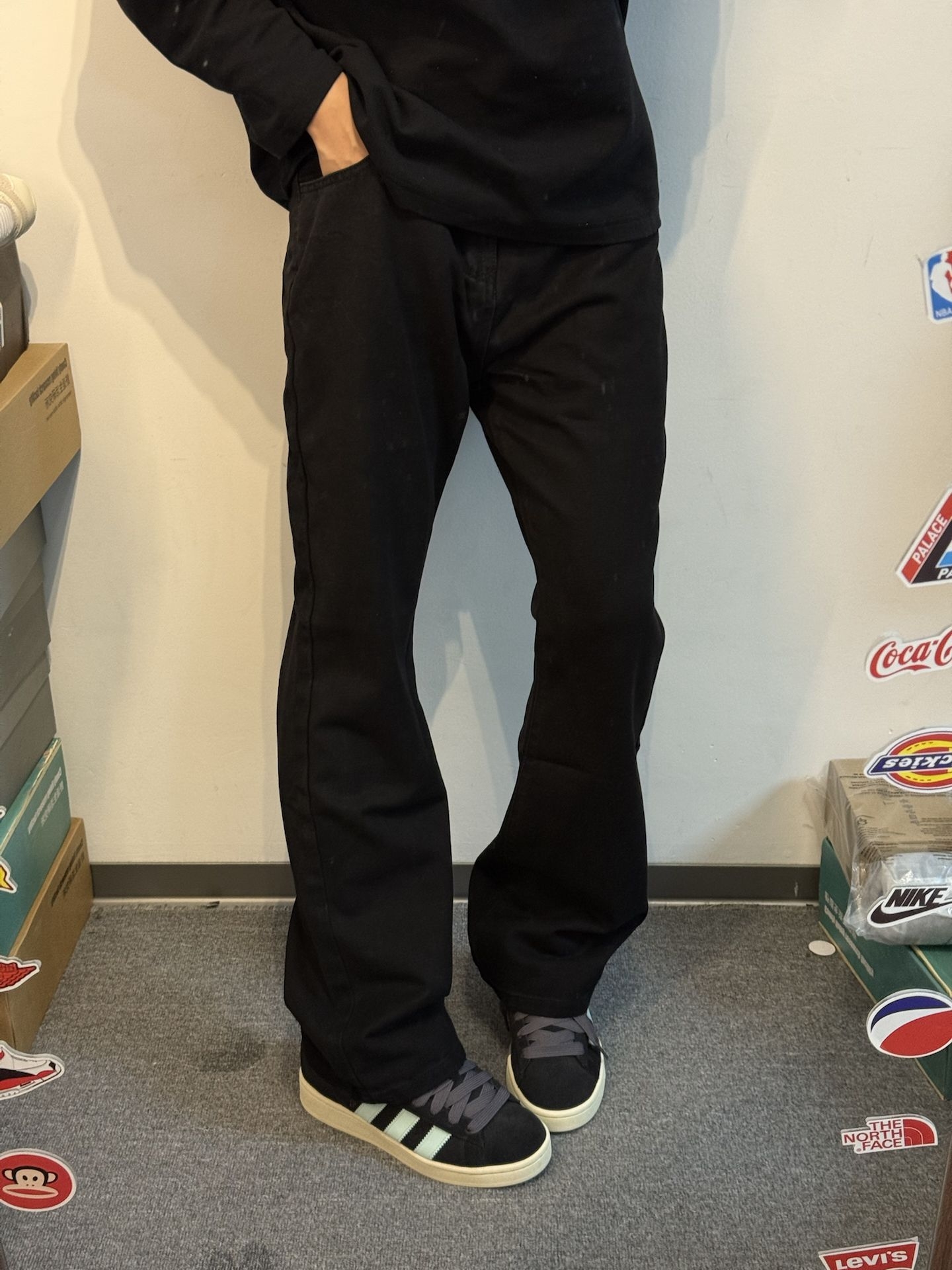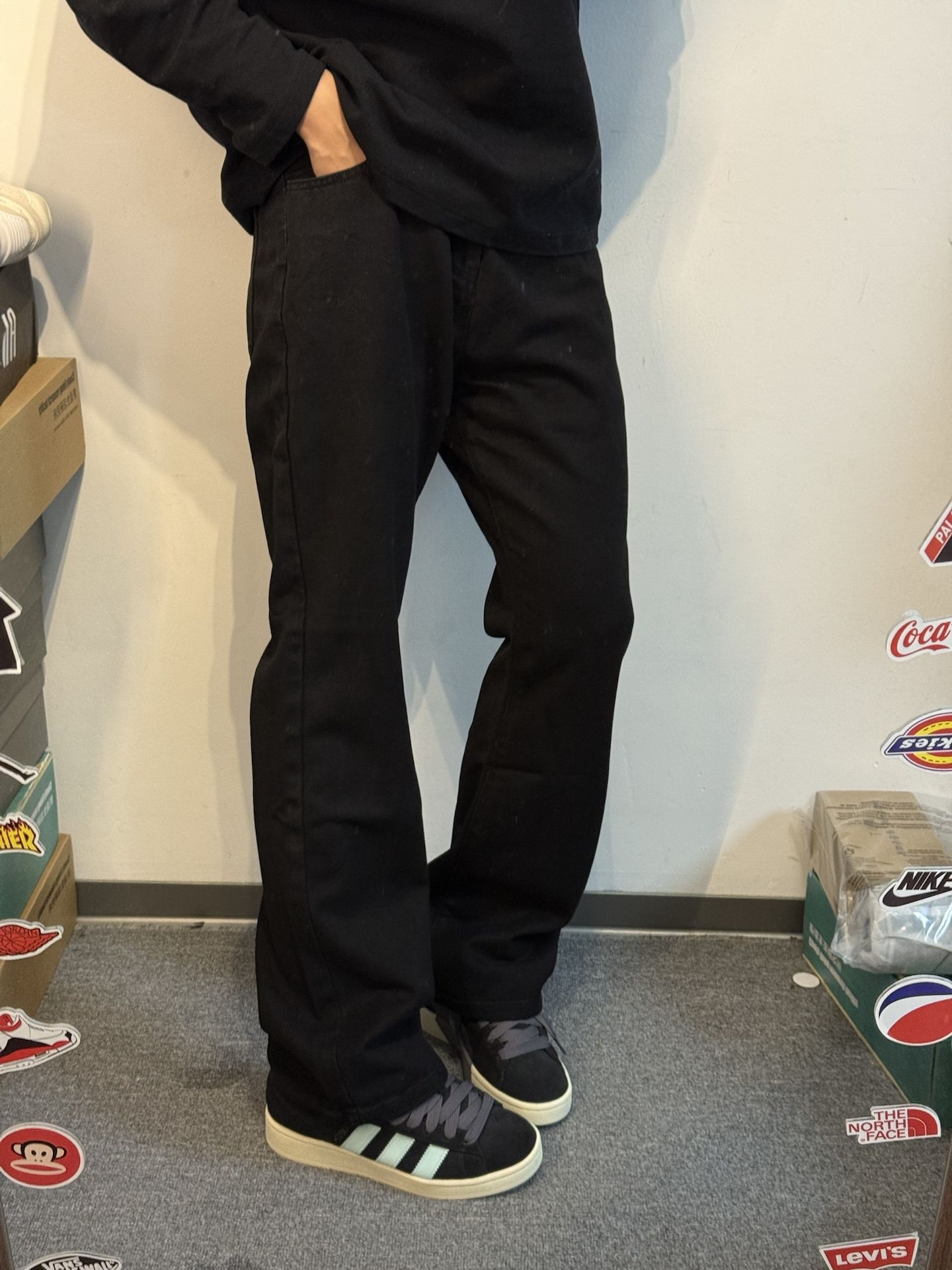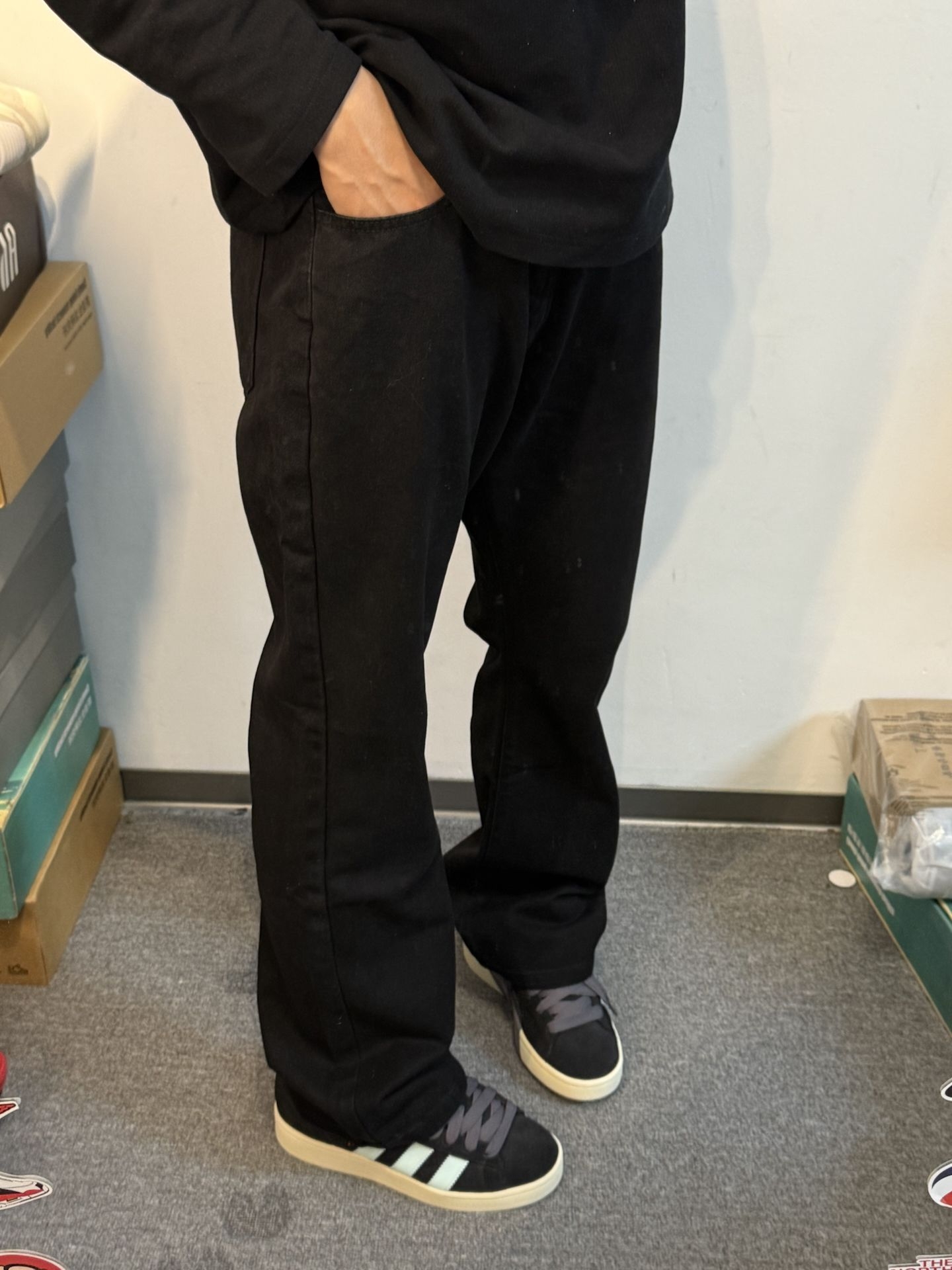 黑色的美式直筒牛仔裤这么帅气🔥|||男孩子的氛围感穿搭搭配 上身黑色长袖搭配 裤子是黑色美式牛仔裤 面料非常柔软舒适 版型很有个性气质感 上身很显高显瘦的感觉 #这条裤子我必买 #今日份穿百搭牛仔裤 #美式高街复古直筒牛仔裤 #美式高街氛围感裤子分享 #今日份穿搭