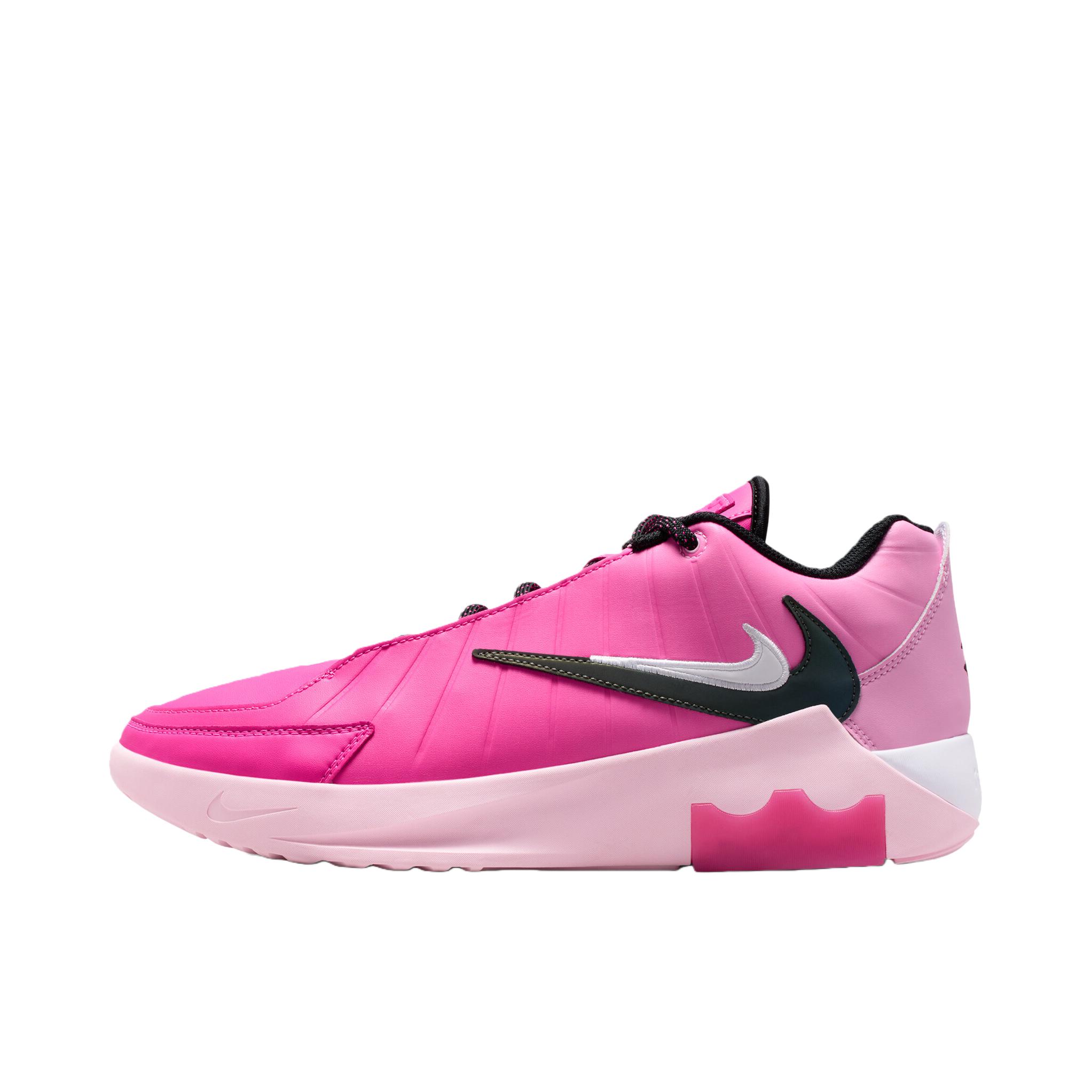 布朗尼专属PE,收藏拉满 鞋面支撑略弱,高强度急停前掌轻微晃,粉白撞色+双Swoosh,颜值炸裂,穿搭无压力 透气一般,极致高强度出汗略闷热 ,全掌ReactX缓震软弹,落地反馈清晰,启动快 无独立抗扭片,极致突破抗扭上限有限 ,对宽脚友好,内外场抓地耐磨,性价比高 支线定位,质感略逊詹姆斯正代 。优先推荐:布朗尼粉丝/詹姆斯家族收藏党、宽脚型实战玩家、外场为主的学生党、追求“颜值+专属+性价比”的球友。以专属设计+均衡实战为核心,适配优秀,缓震、抓地达标,粉白配色兼顾实战与穿搭,是400元价位段“实战+收藏”双优的稀缺佳作。